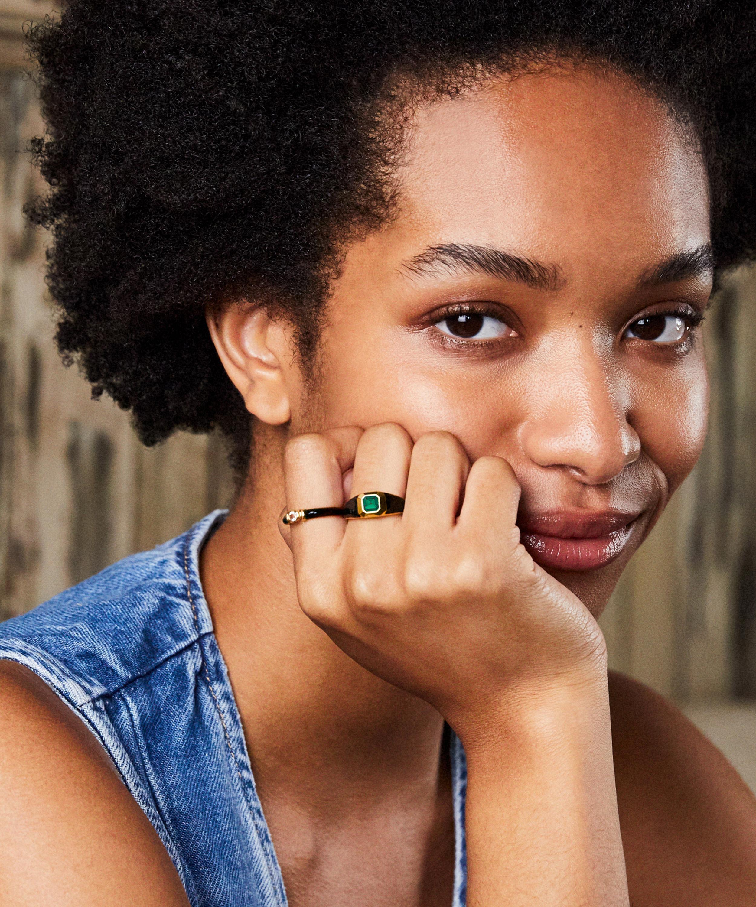 18ct Gold-Plated Vermeil Silver Sophie Black Enamel and Emerald Signet Ring