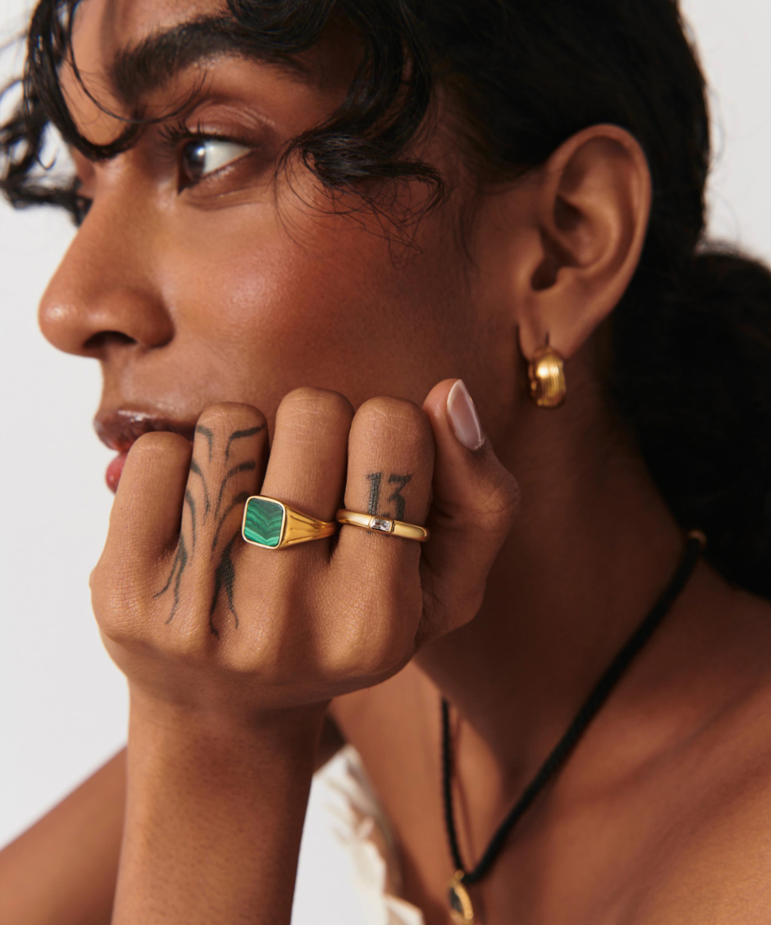 Make a statement with the Stone stacking band ring from Missoma’s Glamour collection – a compilation of ornate designs and tactile textures inspired by the spirit of the old world with a new energy.