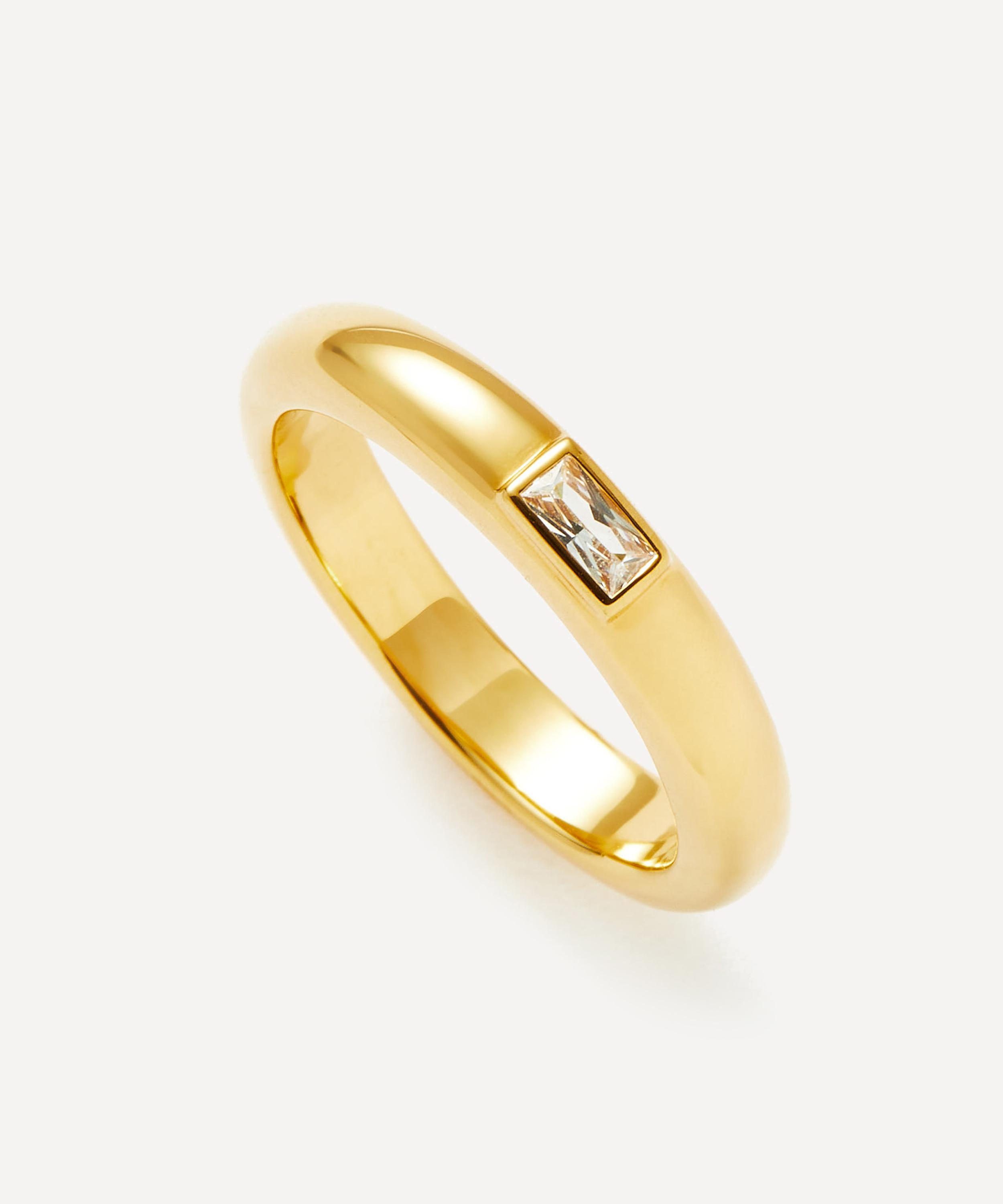 Crafted from sterling silver plated in 18ct gold vermeil, this everyday ring is characterised by a baguette-shaped cubic zirconia centre stone with an open-back setting and polished finish. The best of the past, reimagined for today - wear it solo, or team with the matching Enamel & Stone Stacking Ring.