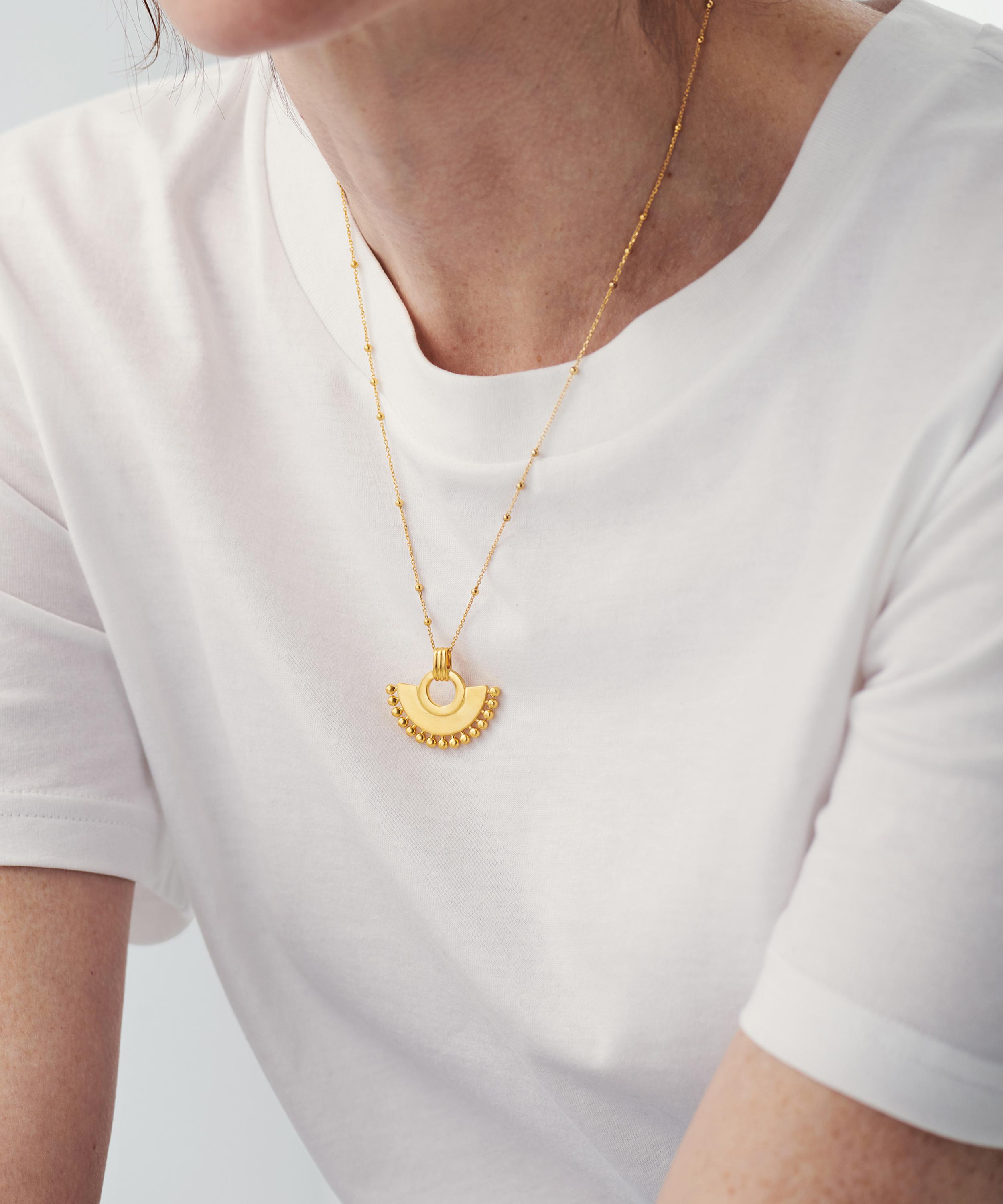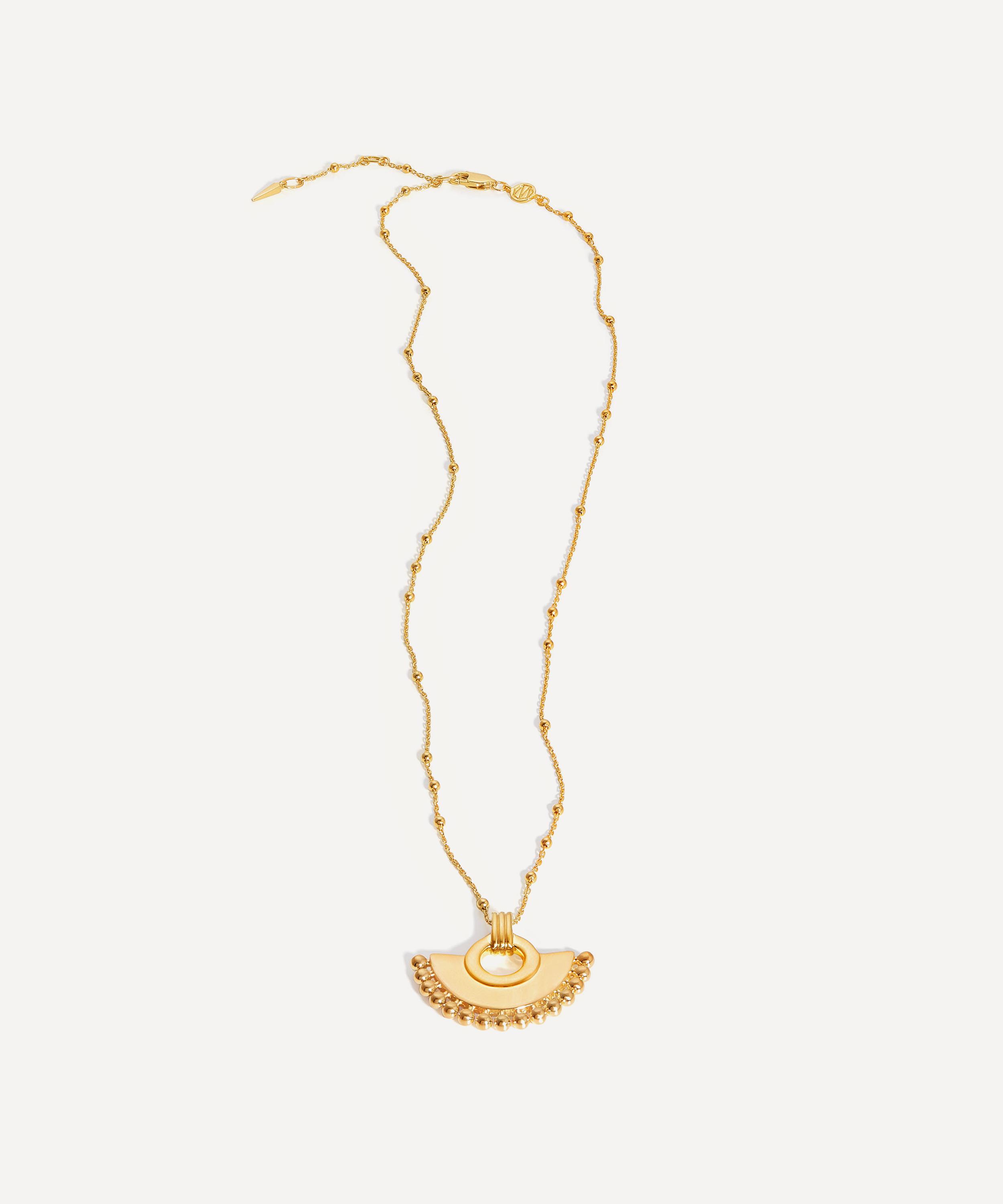 Boasting a unique everyday staple, this pendant necklace from Missoma draws inspiration from Colombia. Crafted in recycled silver plated in 18ct gold vermeil, this necklace features a long orb chain adorned with a bobble-trimmed, fan-shaped pendant in 18ct gold-plated brass. Perfect for layering, team it with other styles from the brand, or wear it solo for effortless day-to-night styling.