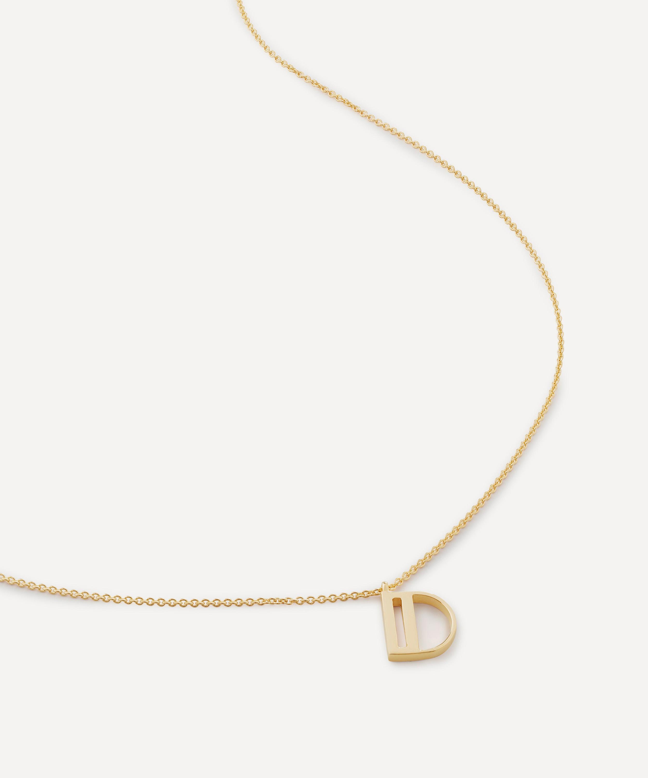 Handcrafted from a radiant 18ct gold-plated vermeil sterling silver, this necklace boasts an art-deco inspired letter charm with a modern finish, complete with a delicate fine chain – style it alone for a minimal, bespoke look, or wear with other chains and pendants for an on-trend curation.