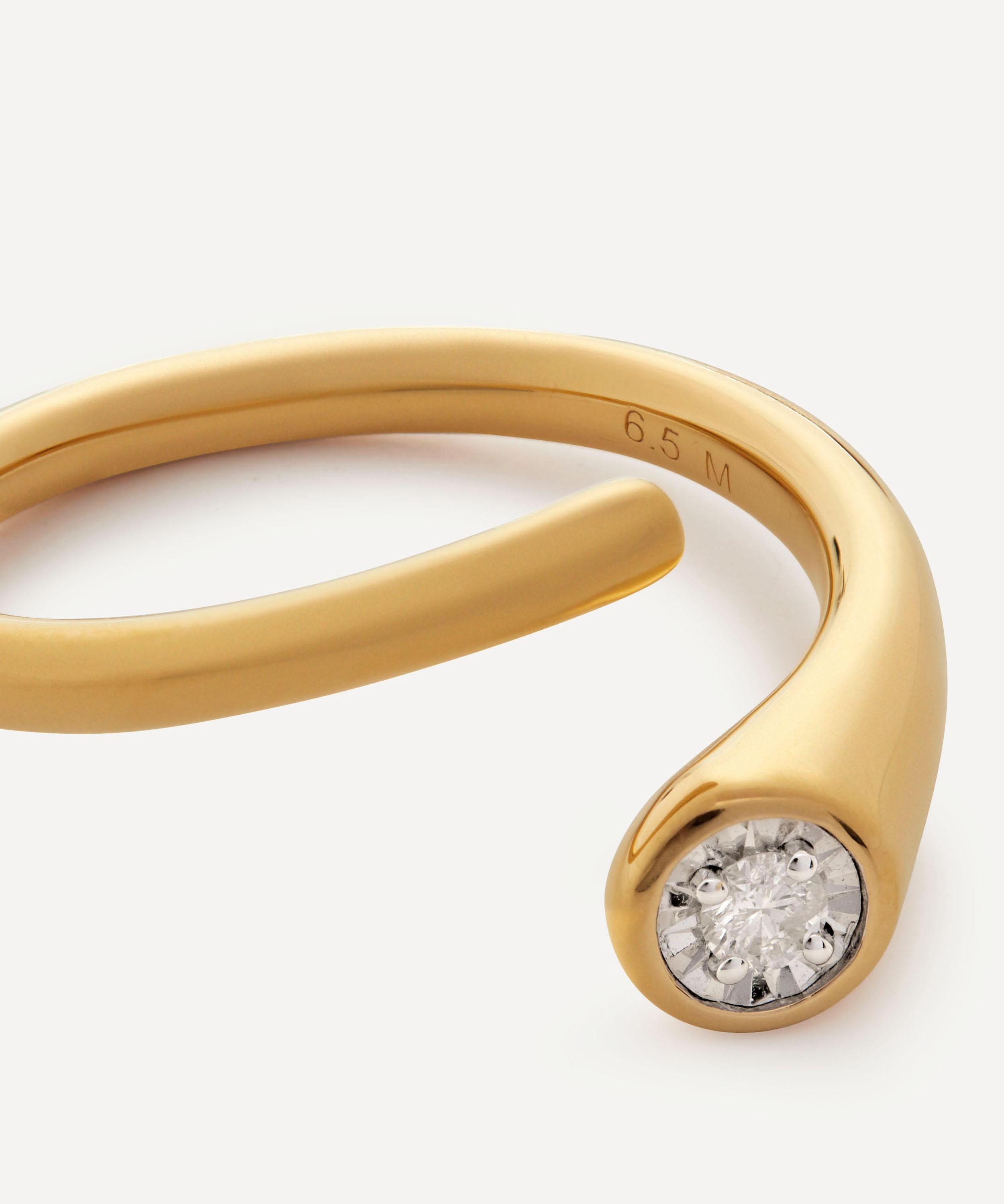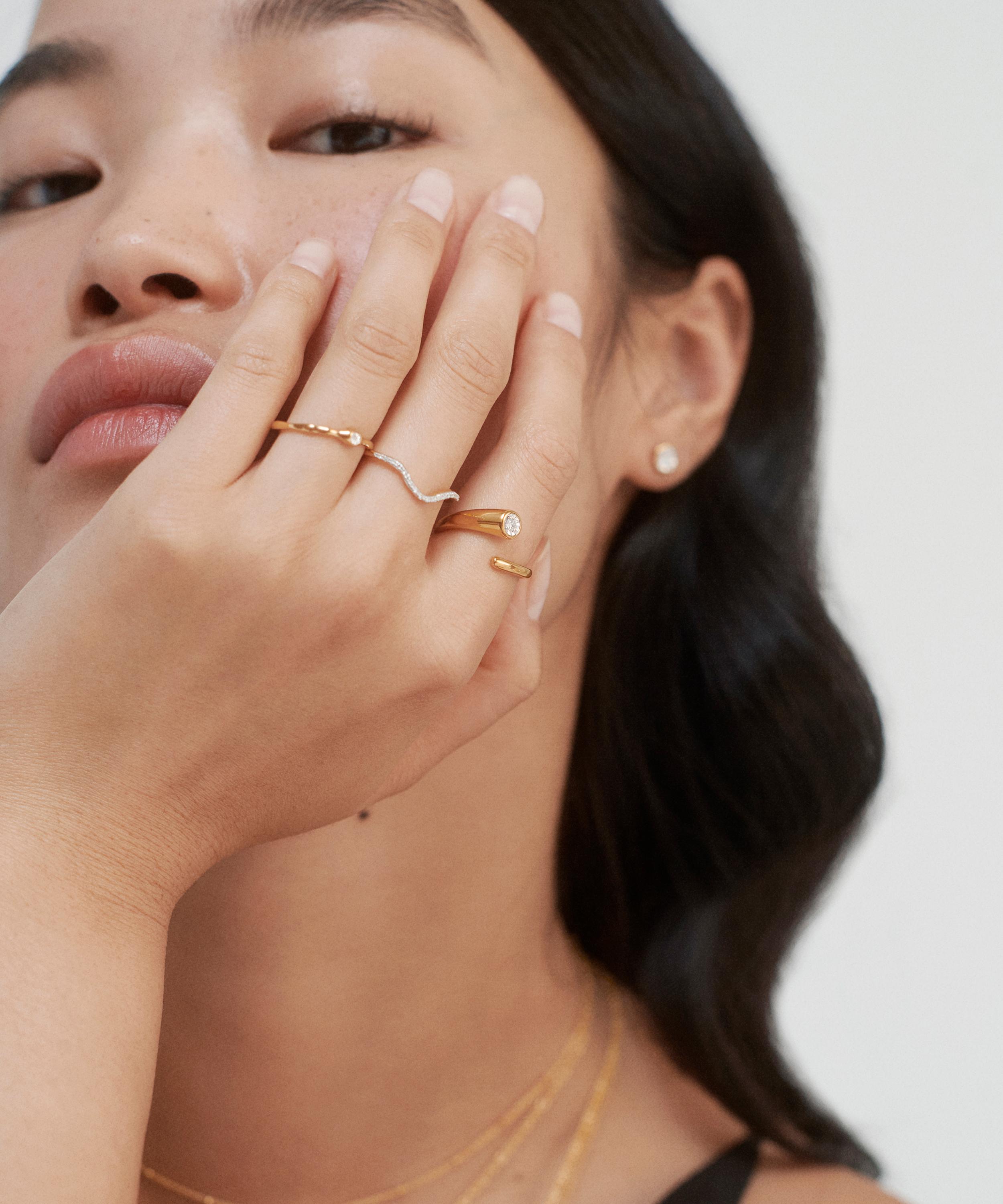Handcrafted from sterling silver plated in a radiant 18ct gold vermeil, this statement wrap ring features a single diamond solitaire, designed to catch the light with your every move – style alone for a minimal approach or wear as part of your finger stack for an on-trend curation.