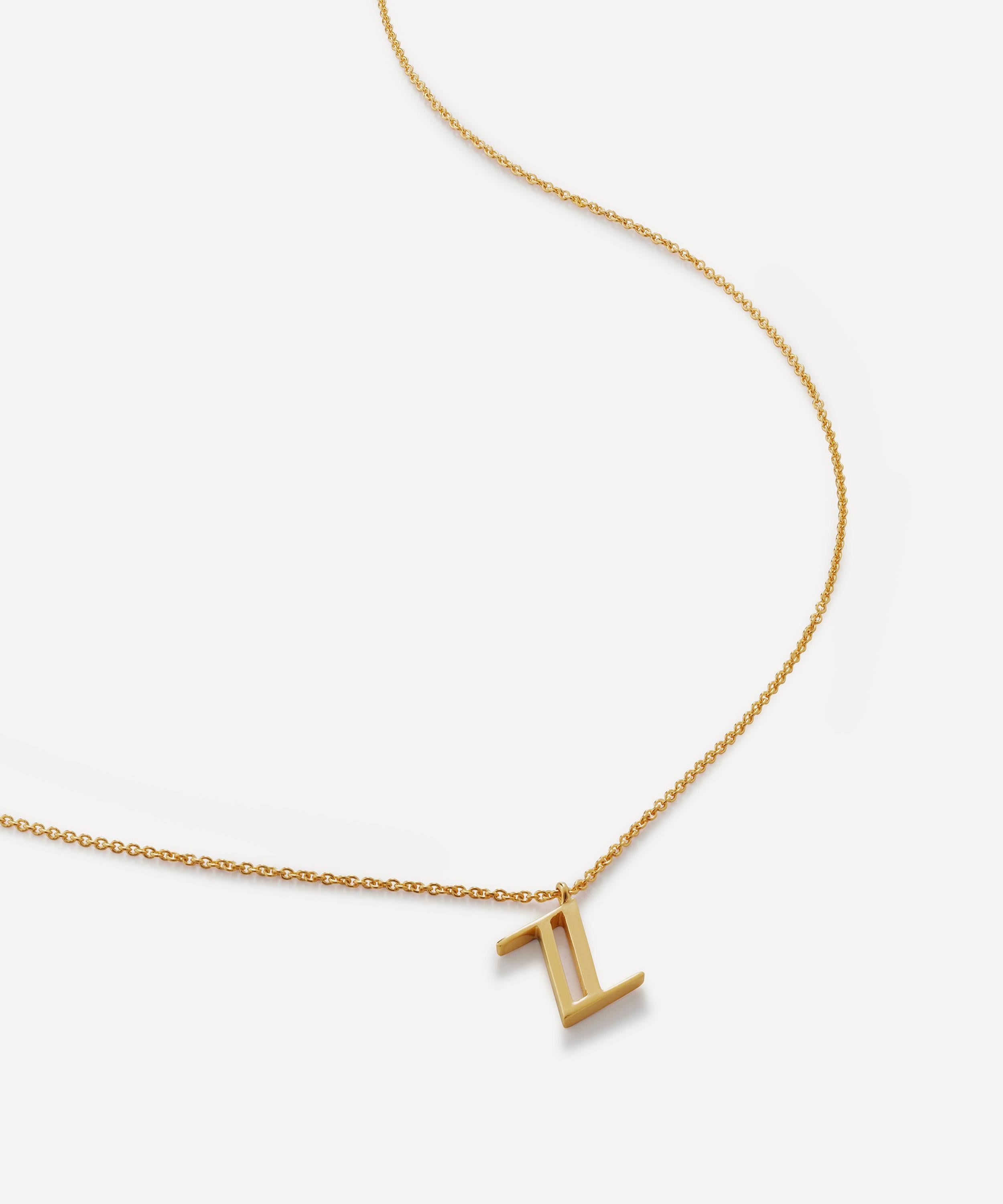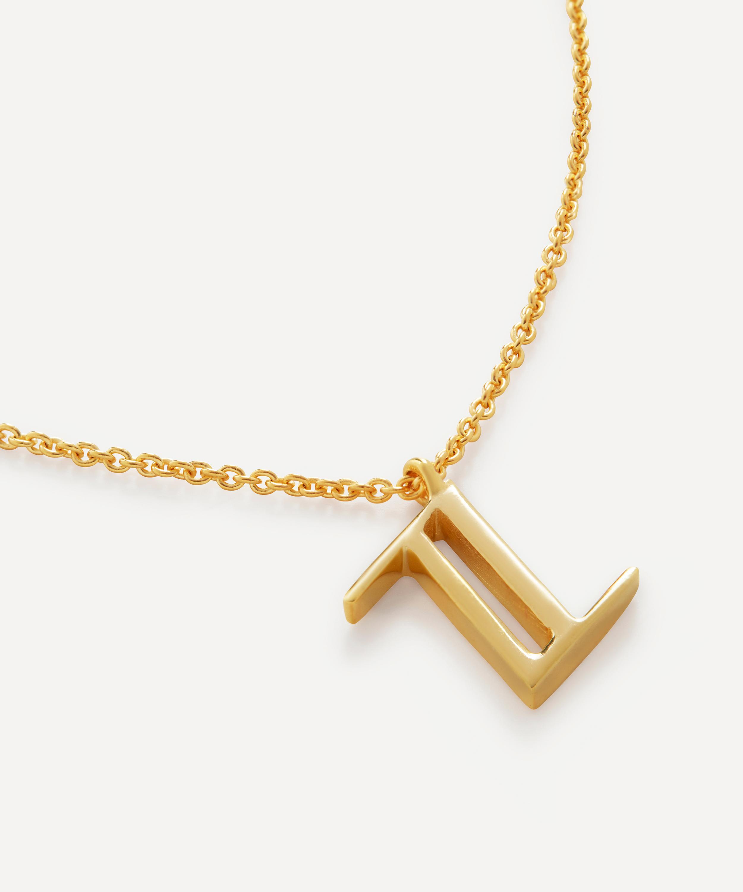 Handcrafted from a radiant 18ct gold-plated vermeil sterling silver, this necklace boasts an art-deco inspired letter charm with a modern finish, complete with a delicate fine chain – style it alone for a minimal, bespoke look, or wear with other chains and pendants for an on-trend curation.