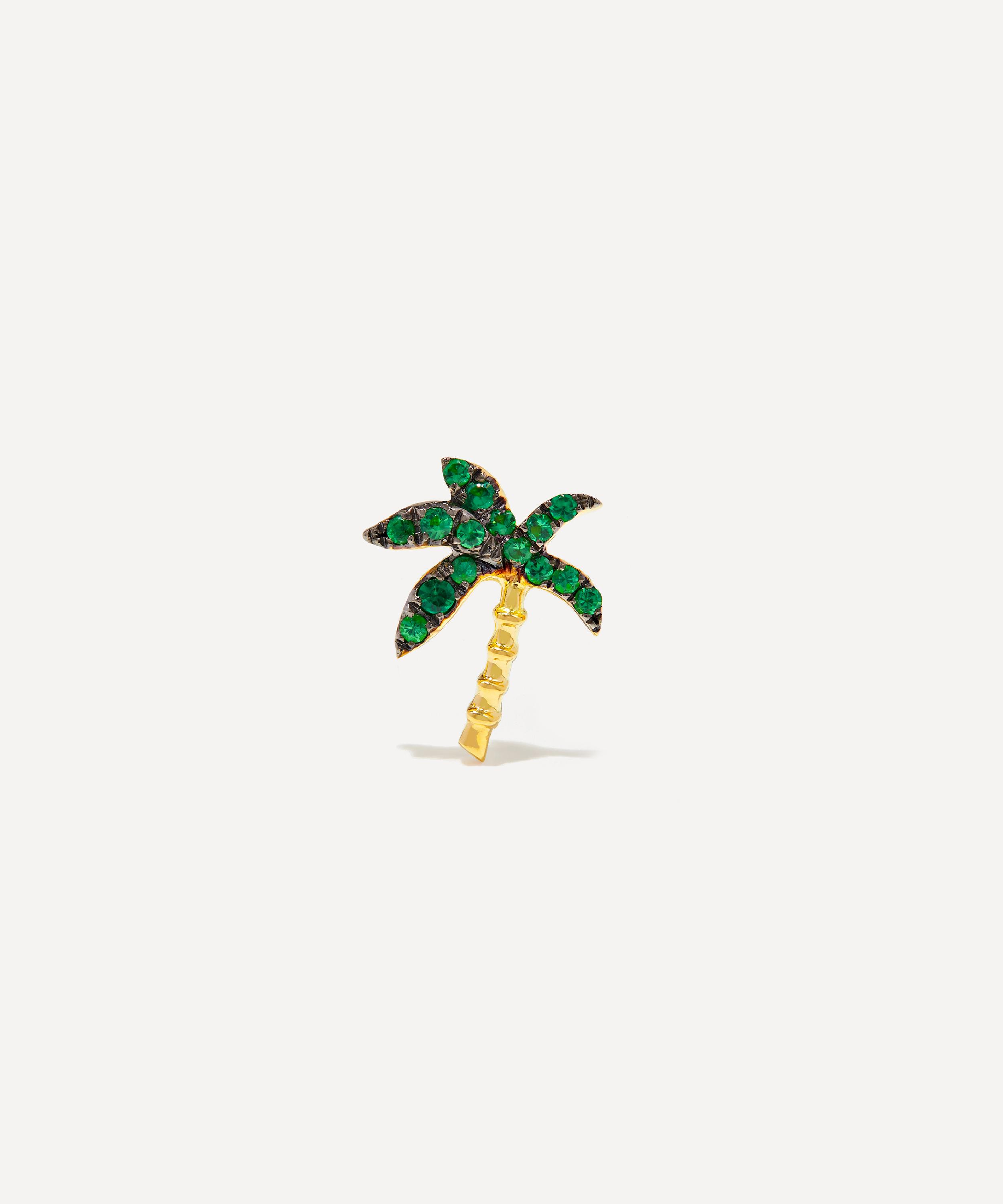 Emanating summer by the sea, the Puce Palmier Tsavorite stud earring boasts the ultimate vacation edit – part of Yvonne Léon's Plage collection. Crafted from 18ct gold, it features a palm-shaped design, accented by green tsavorite palm leaves and a textured trunk. Style it with other piercings, hoops and drops for a trend-led finish.
