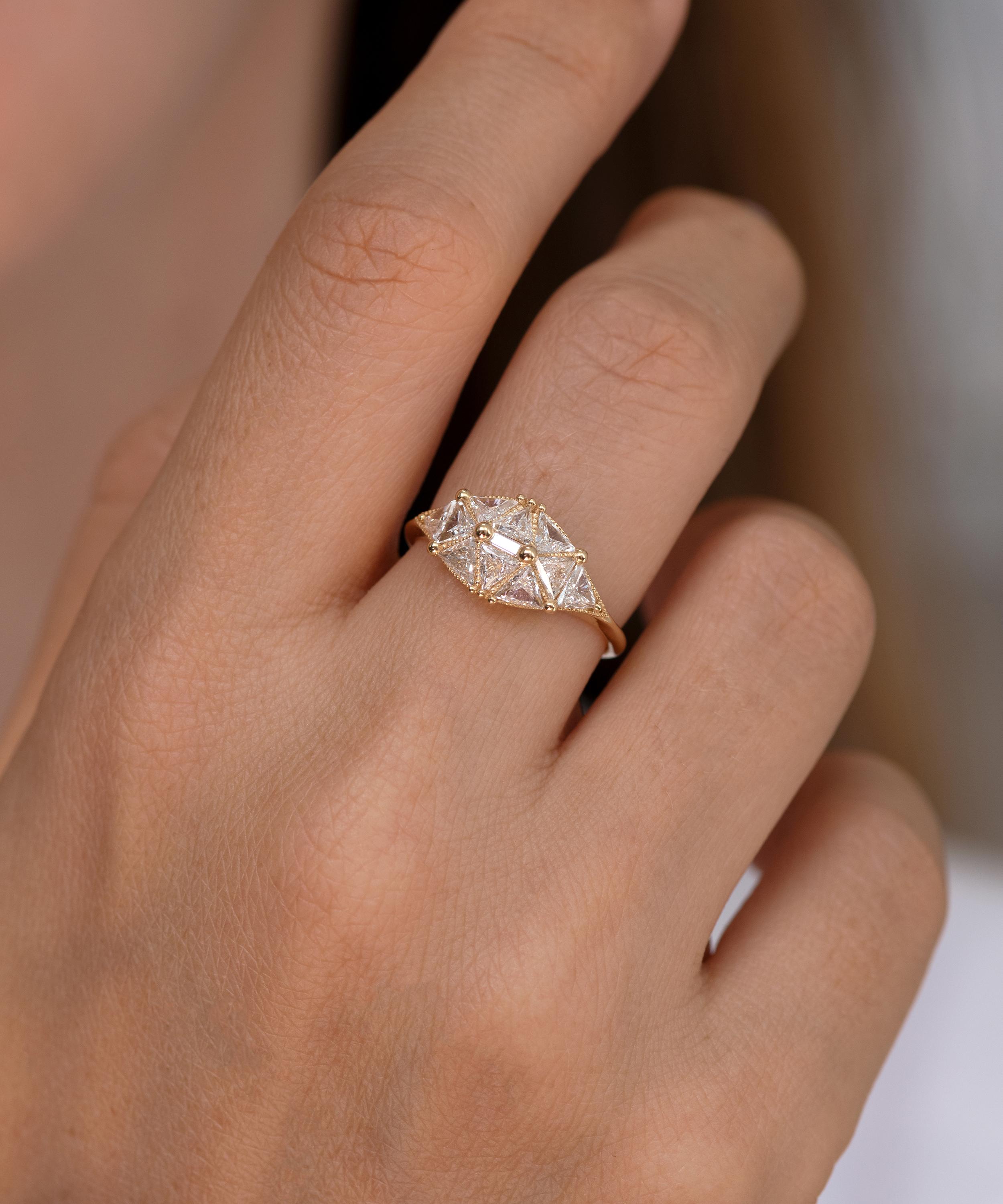 18ct Gold Reflective Dome Triangle Diamond Engagement Ring