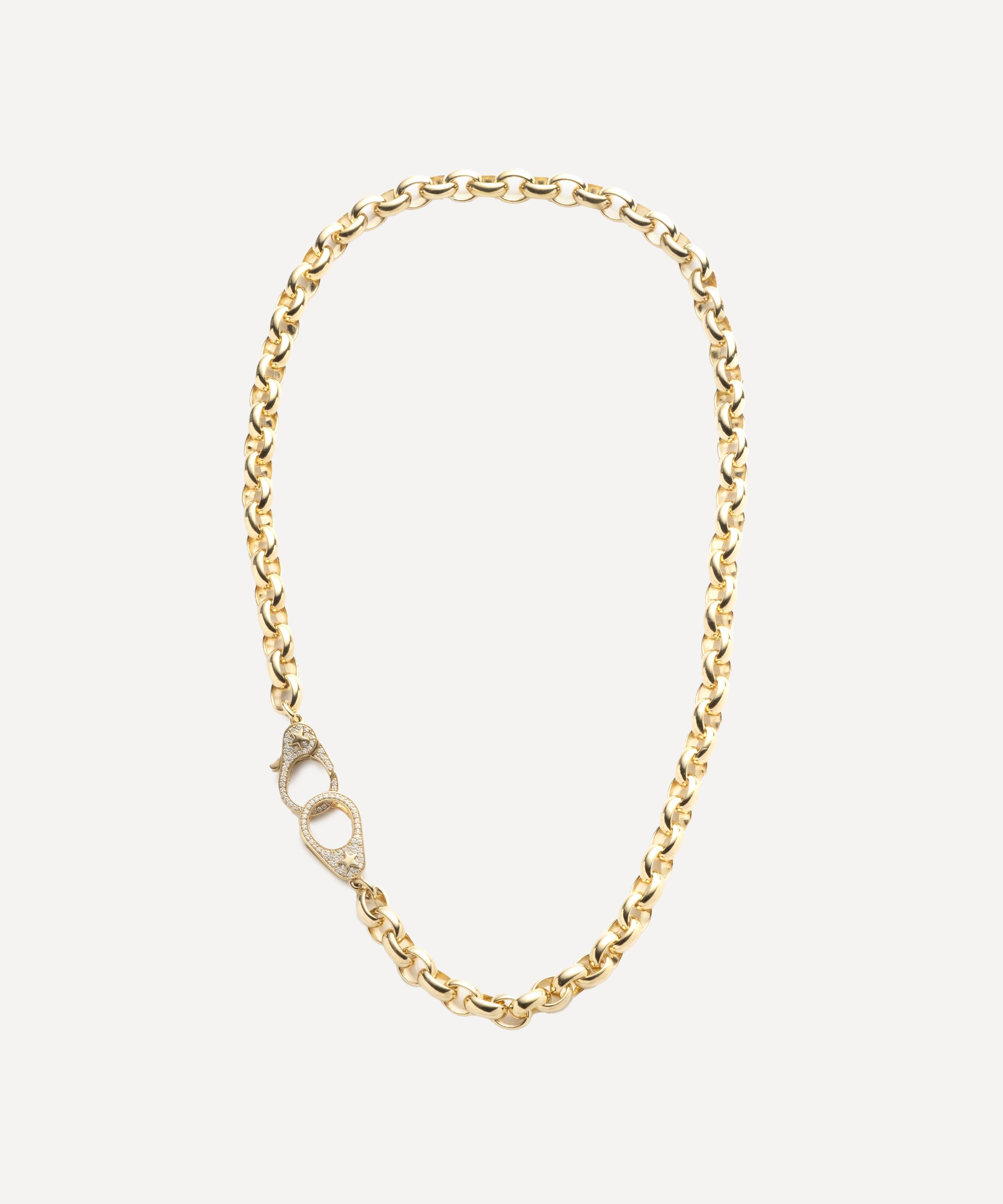 Handcrafted from 18ct gold, it’s fashioned into a heavy belcher chain anchored by a pair of perfectly intertwined ‘sister hooks’ embellished with pave diamonds – ideal for both elevated everyday looks and formal occasions. Designed to inspire a journey of self-discovery and expression, this modern heirloom can be worn alone or adorned with one of the brand’s pendants.