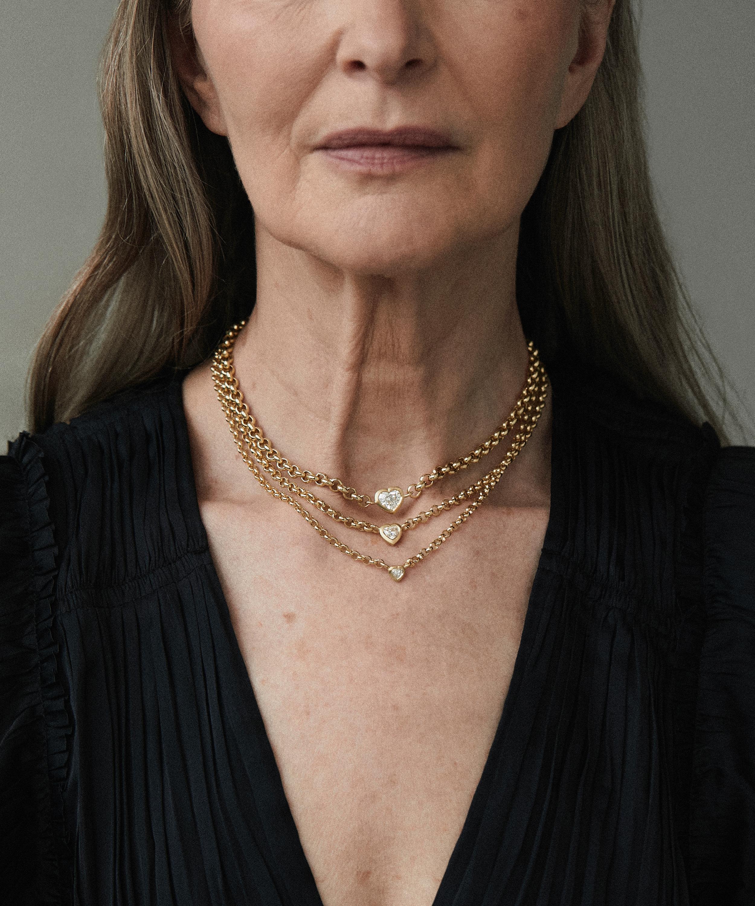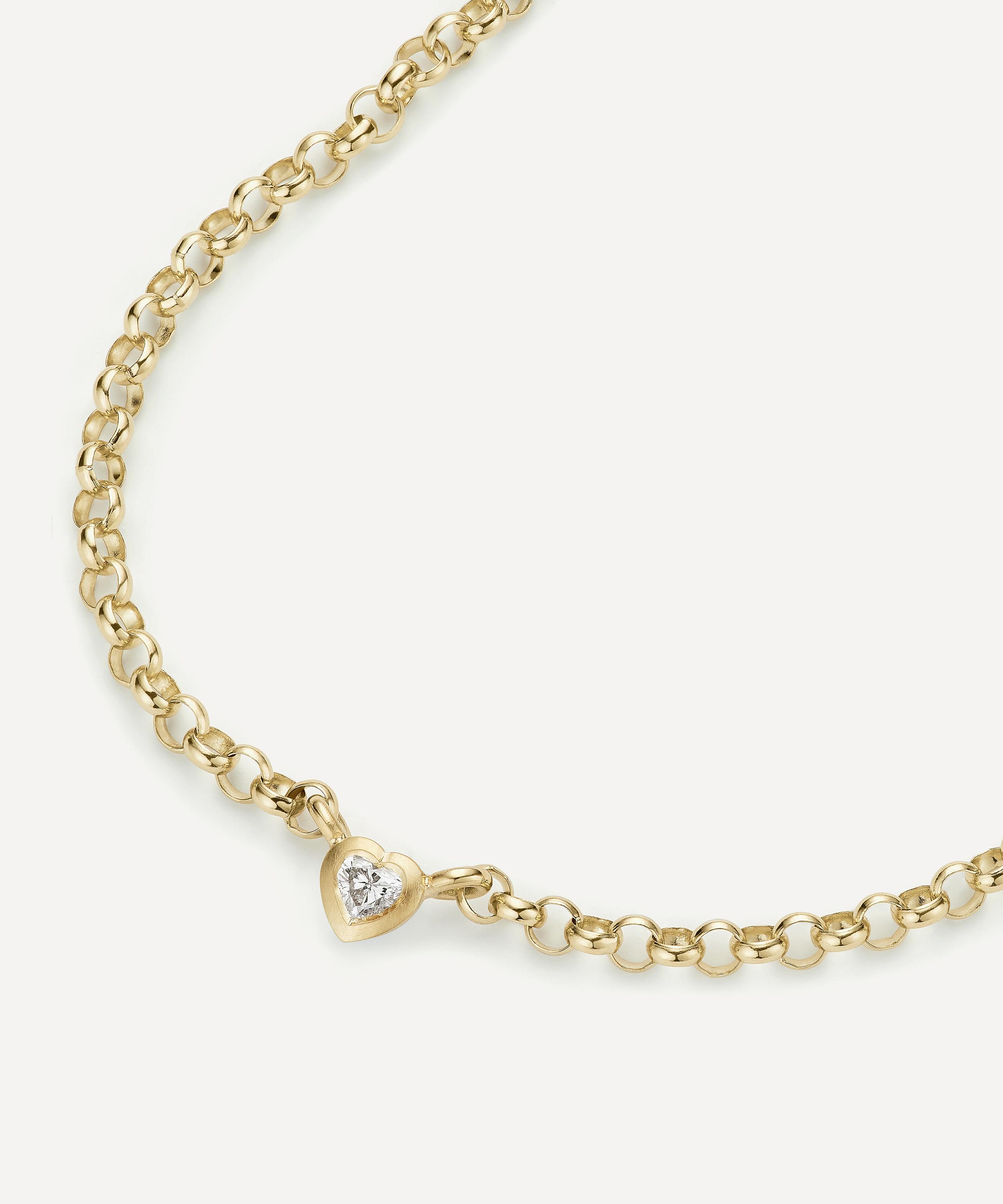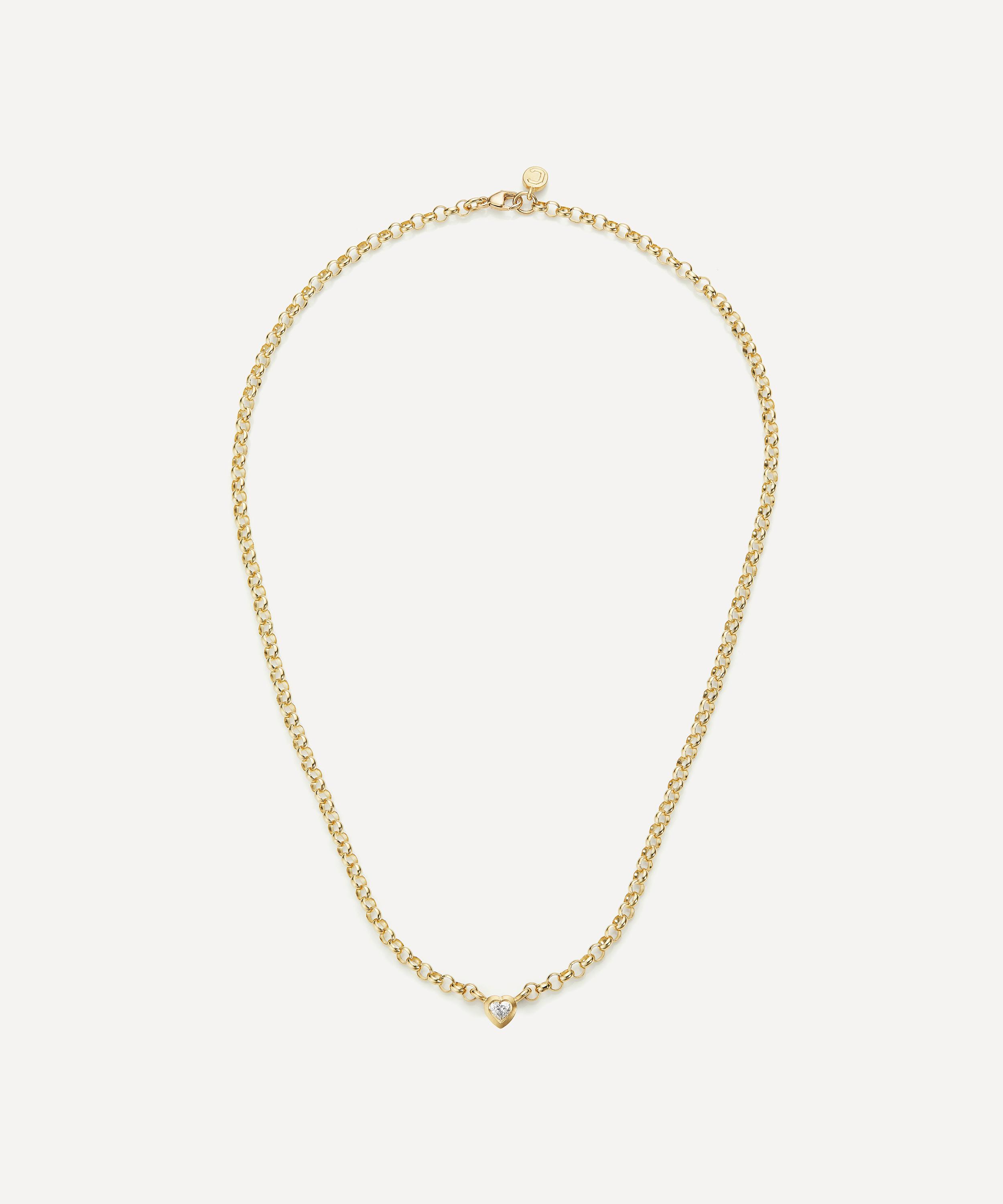 Handcrafted from frosted 18 carat gold, this elegant piece boasts a heavy round belcher chain design, complete with a heart-shaped brilliant cut diamond set flush for a breath of modern air. Style it with your favourite jewellery box piece or try pairing it with the Sweetheart Bracelet for a matching look.