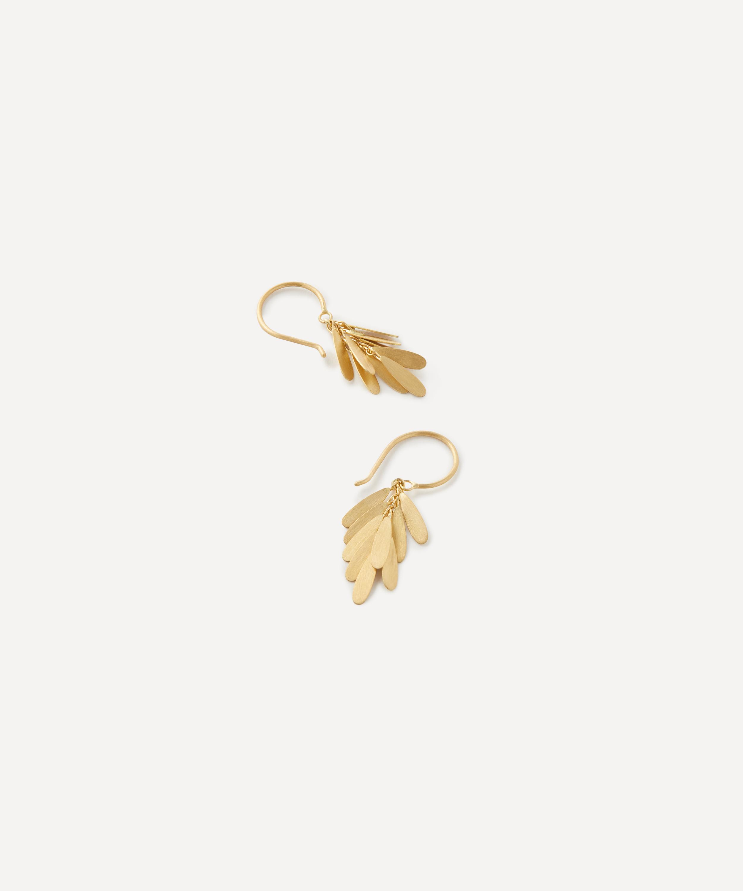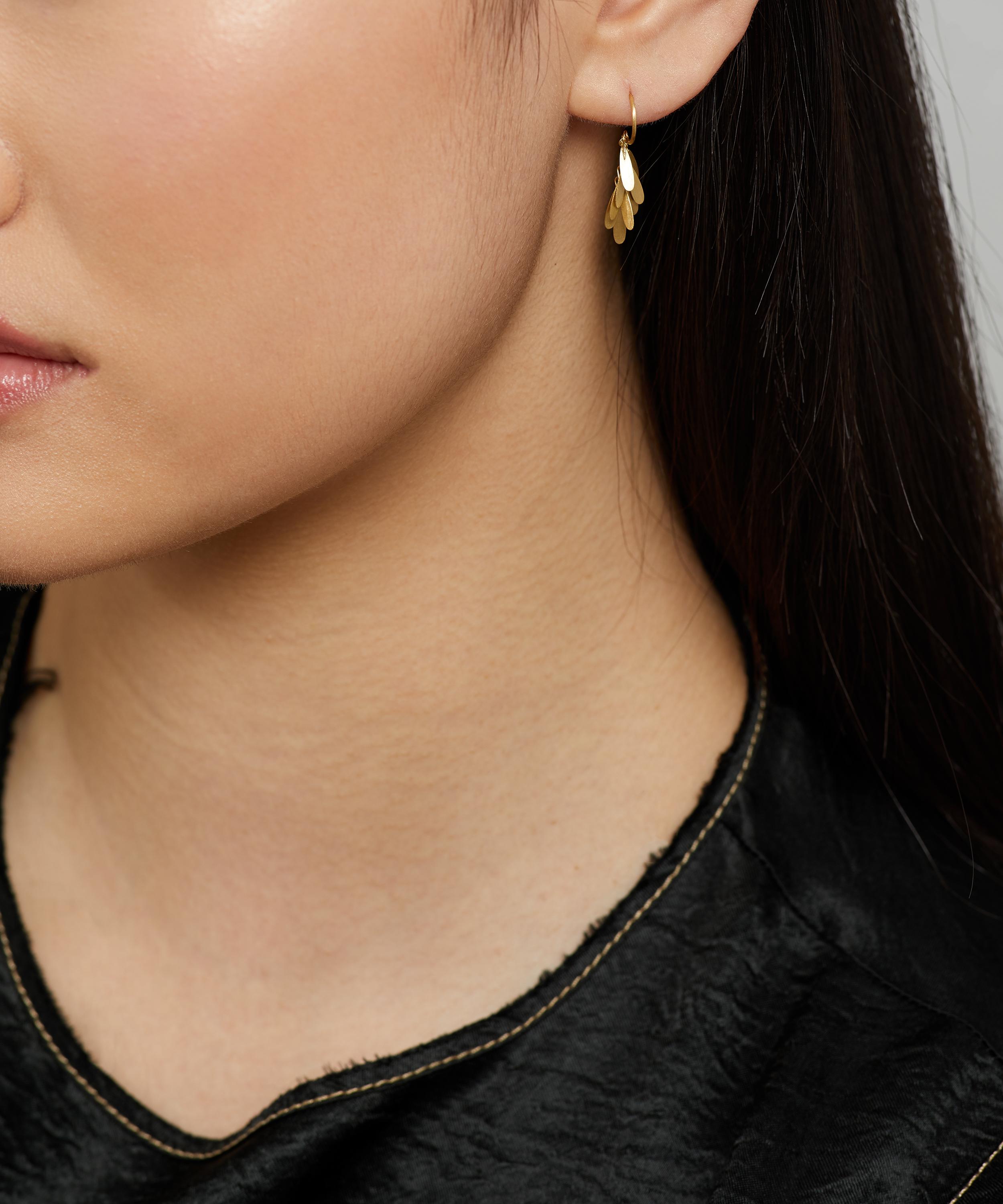 Showcasing the designer's skill for fine detail, the Tiny Daisy drop earrings by Sia Taylor feature her signature minimal aesthetic. Crafted from 18ct gold, each earring is characterised by a cluster of overlapping, golden petals suspended from an articulated chain – offering an elegant dangle when worn.