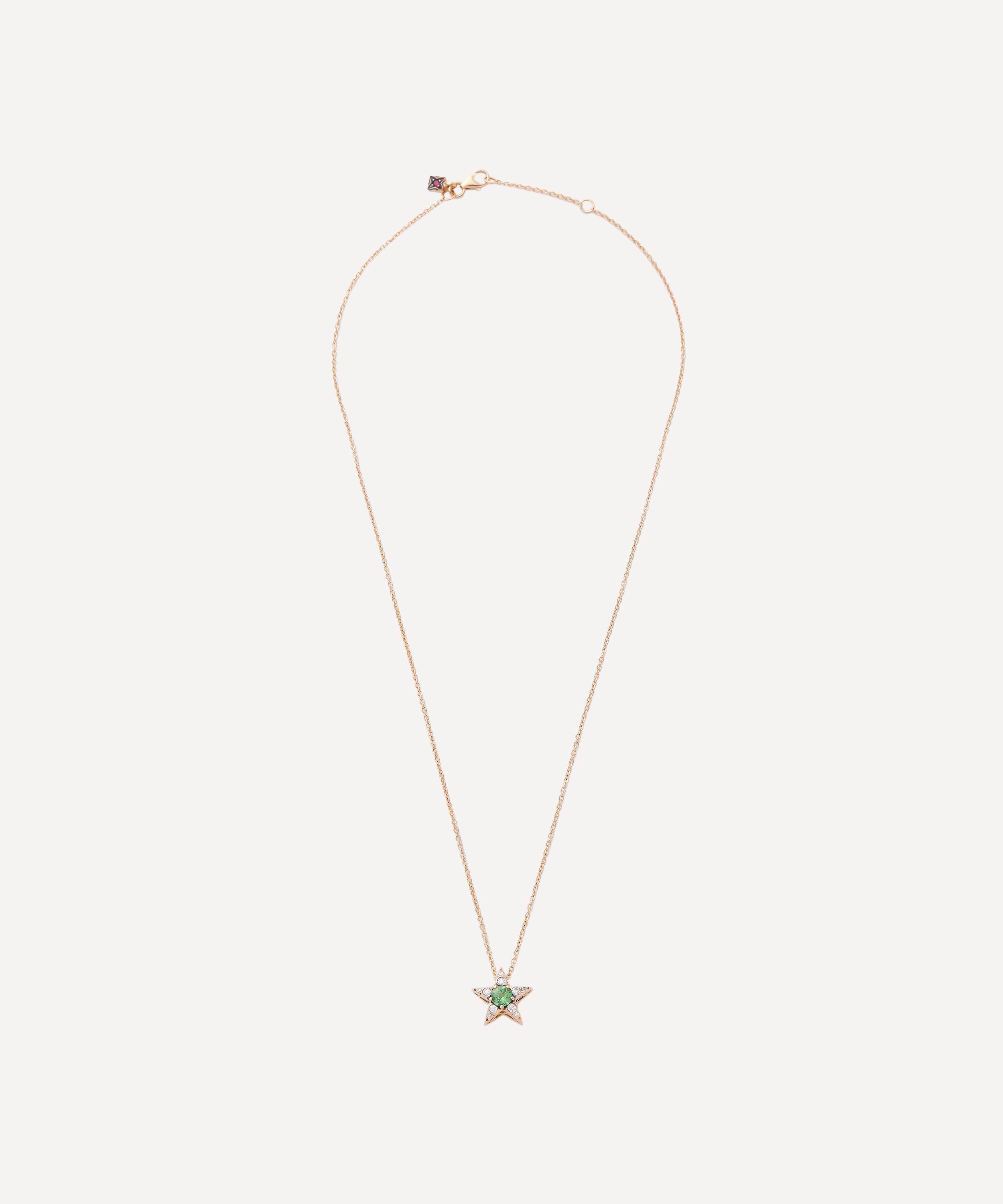 18ct Rose Gold Istanbul Tsavorite and Diamond Star Pendant Necklace