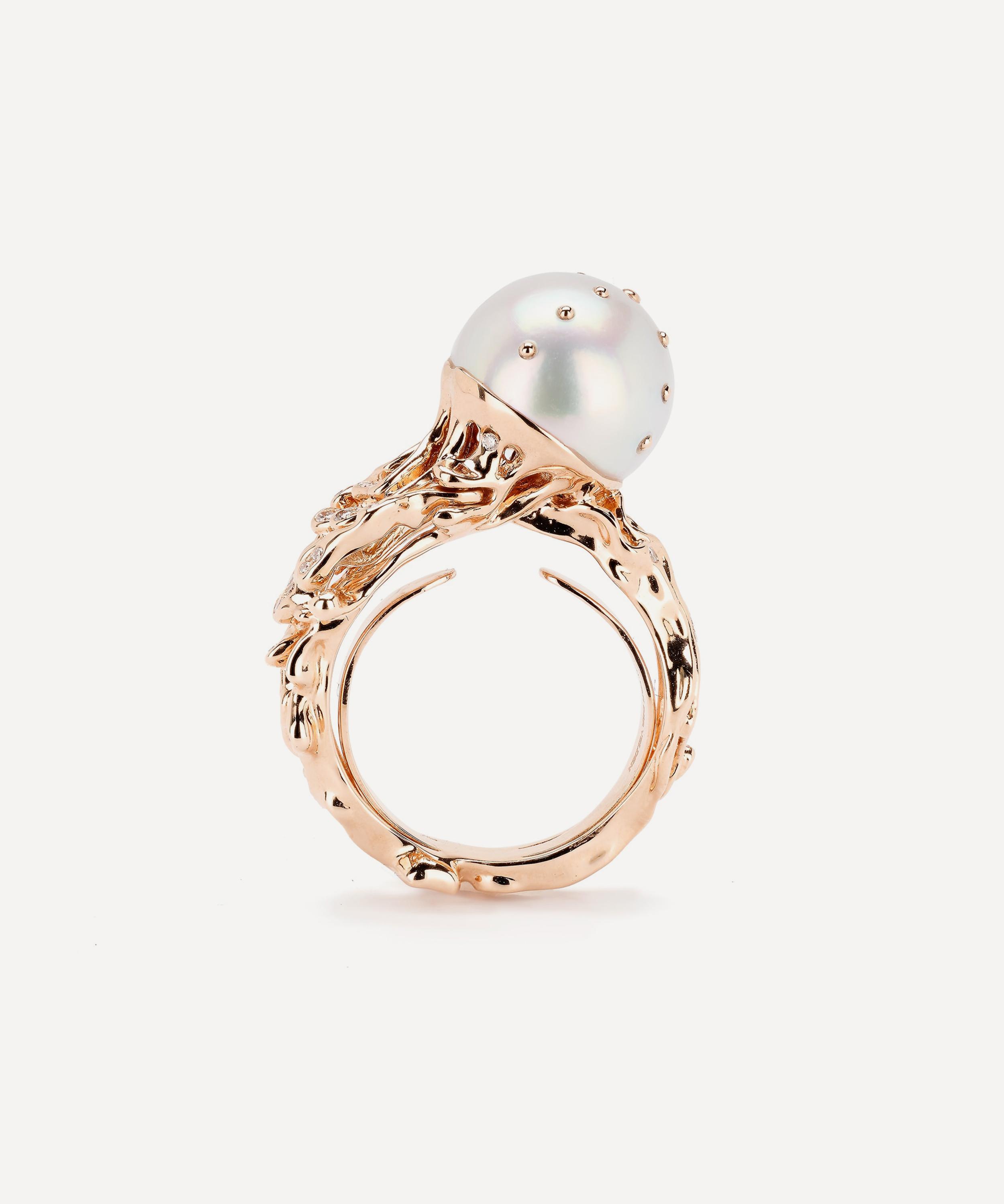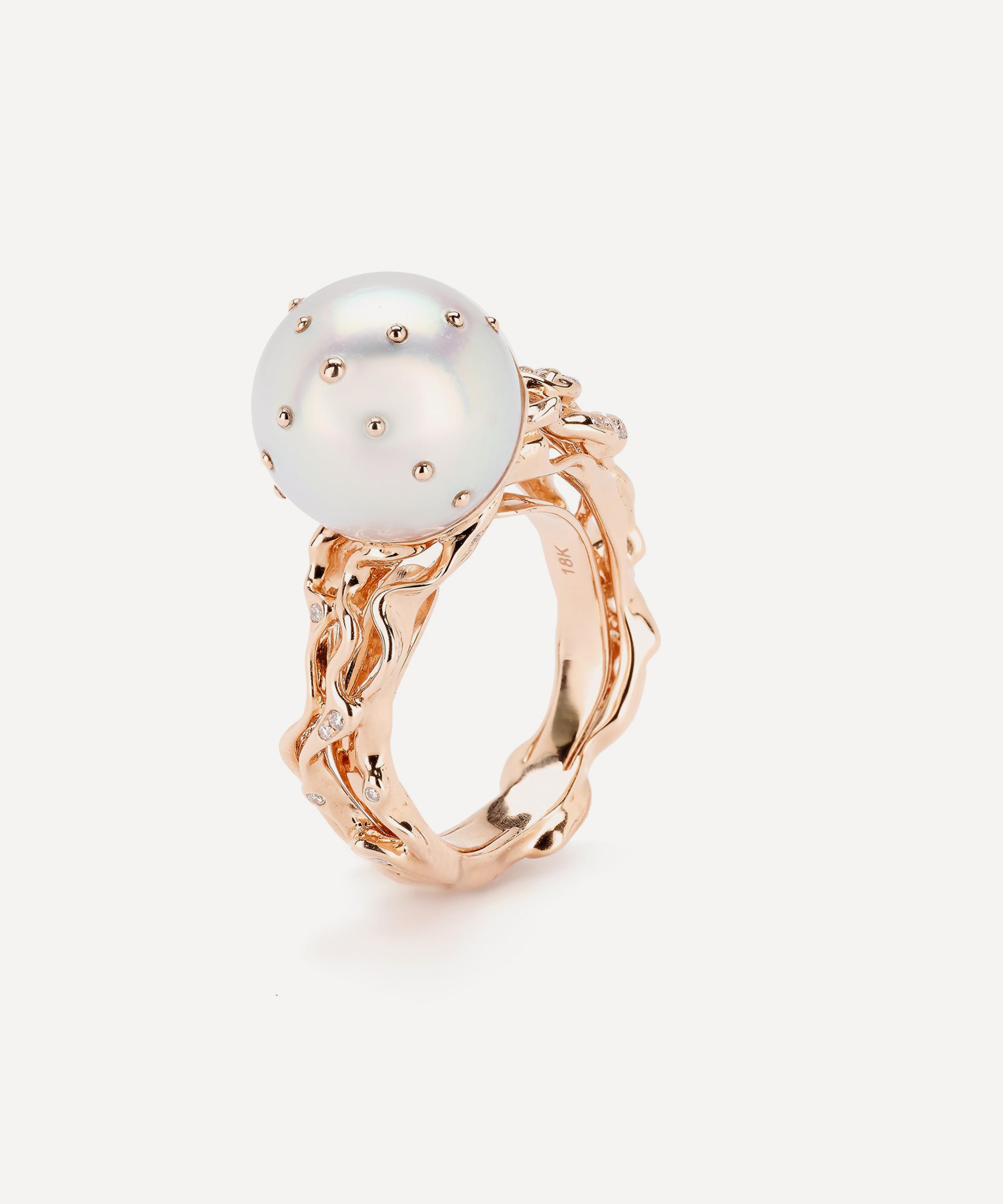 18ct Rose Gold Jellyfish White Pearl and Diamond Ring