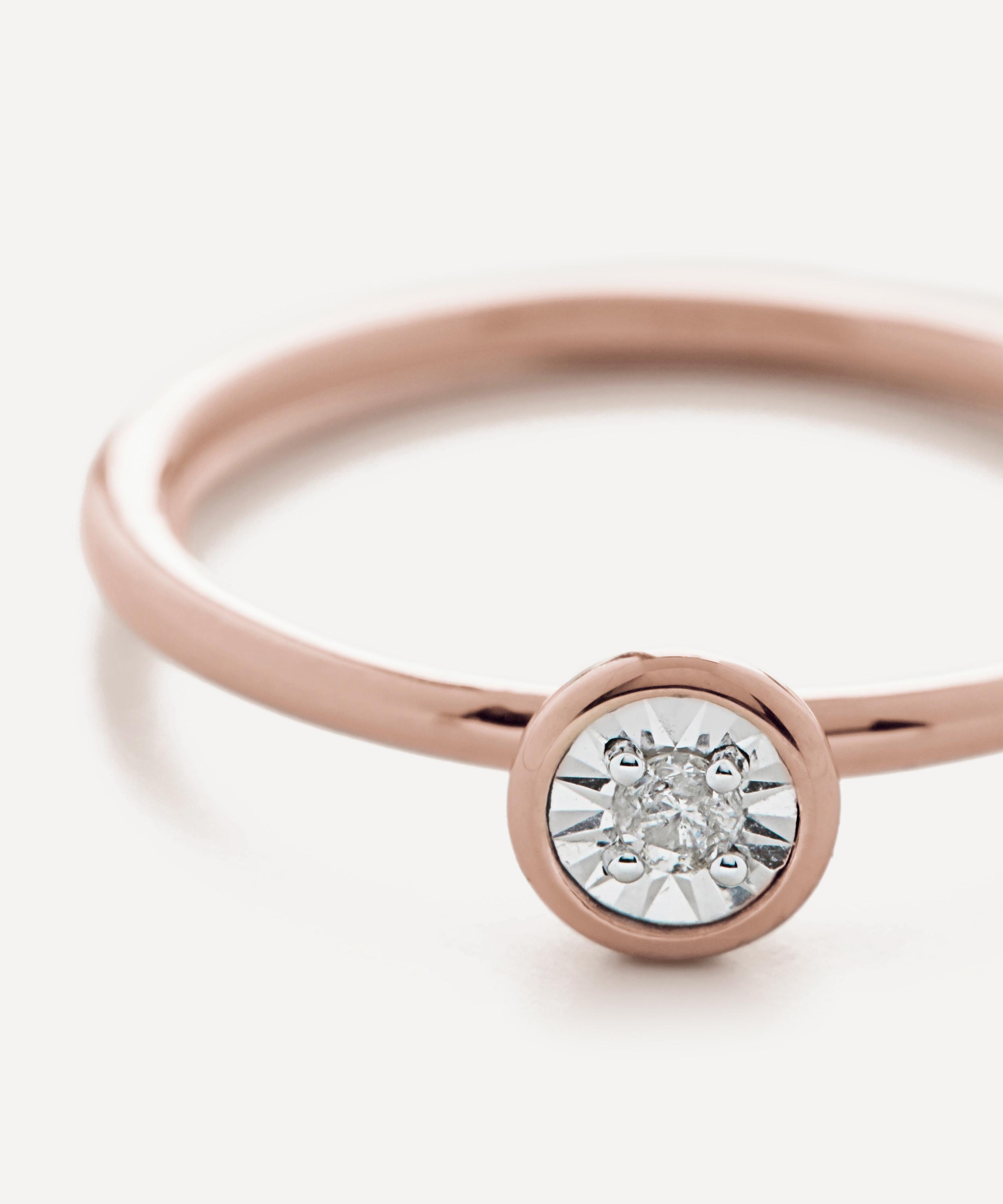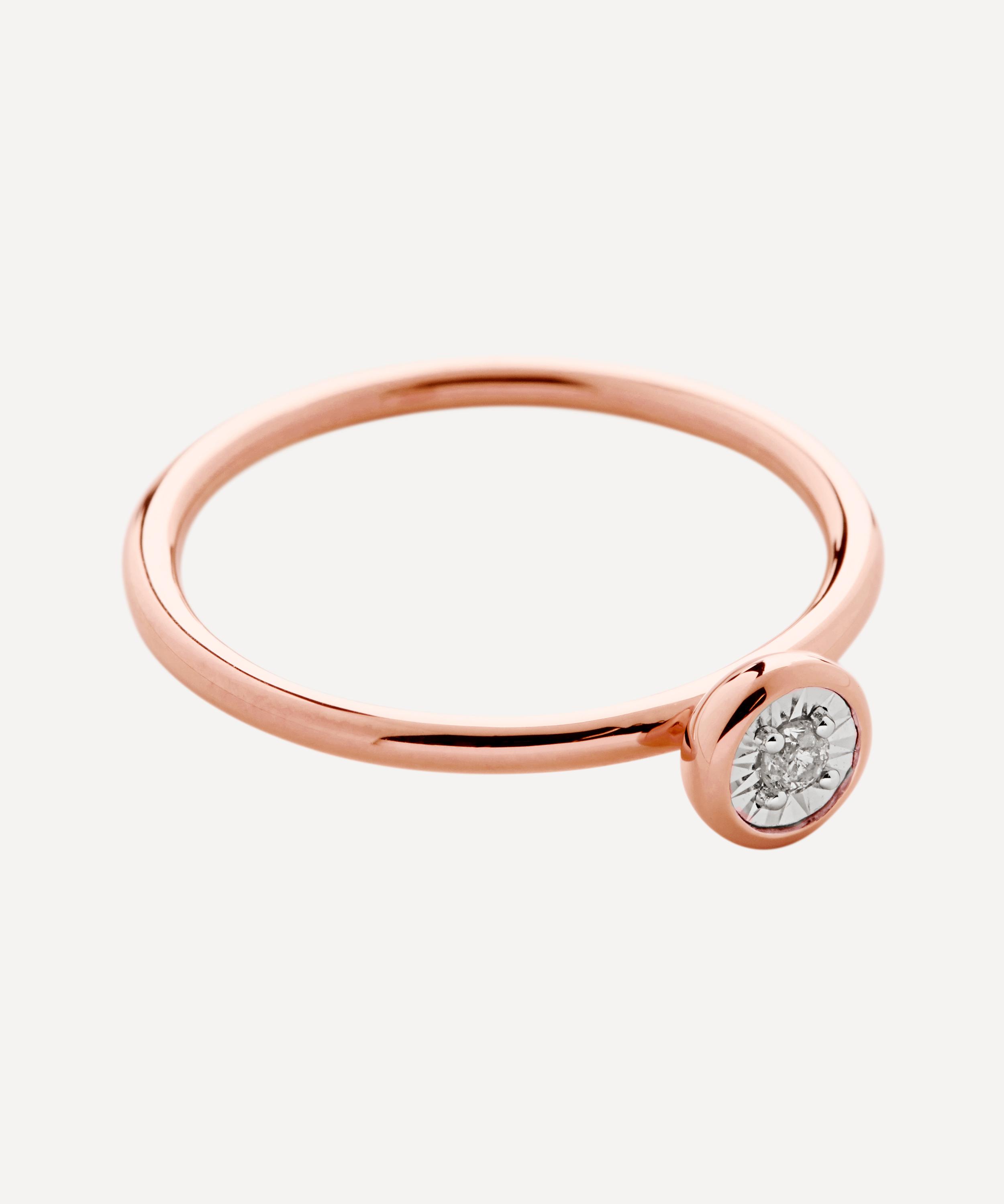 Crafted from recycled sterling silver plated in 18 carat rose gold vermeil, this diamond solitaire ring is part of Monica Vinader's Diamond Essentials collection.