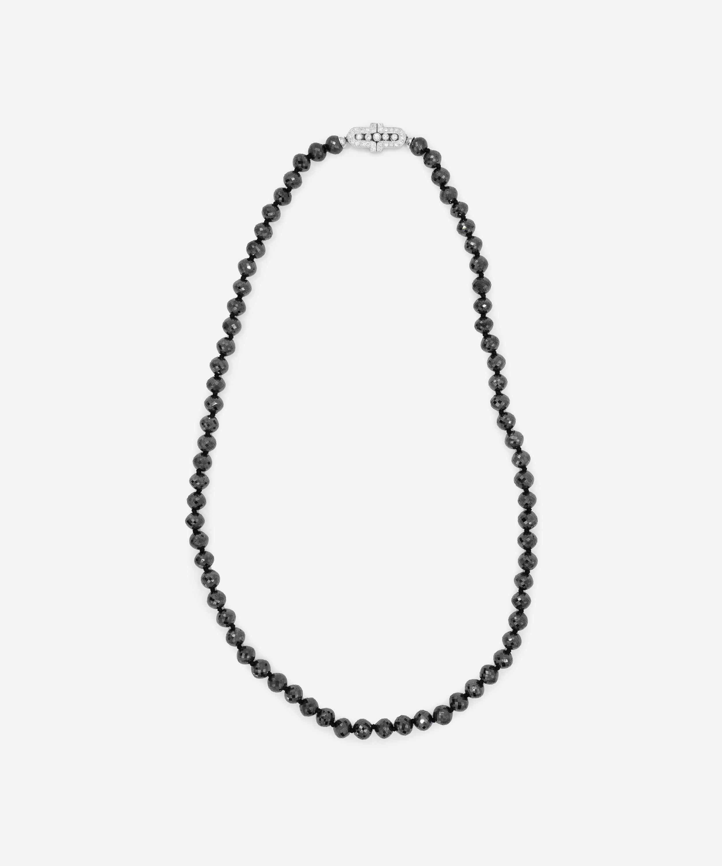 18ct White Gold Black Diamond Bead Necklace