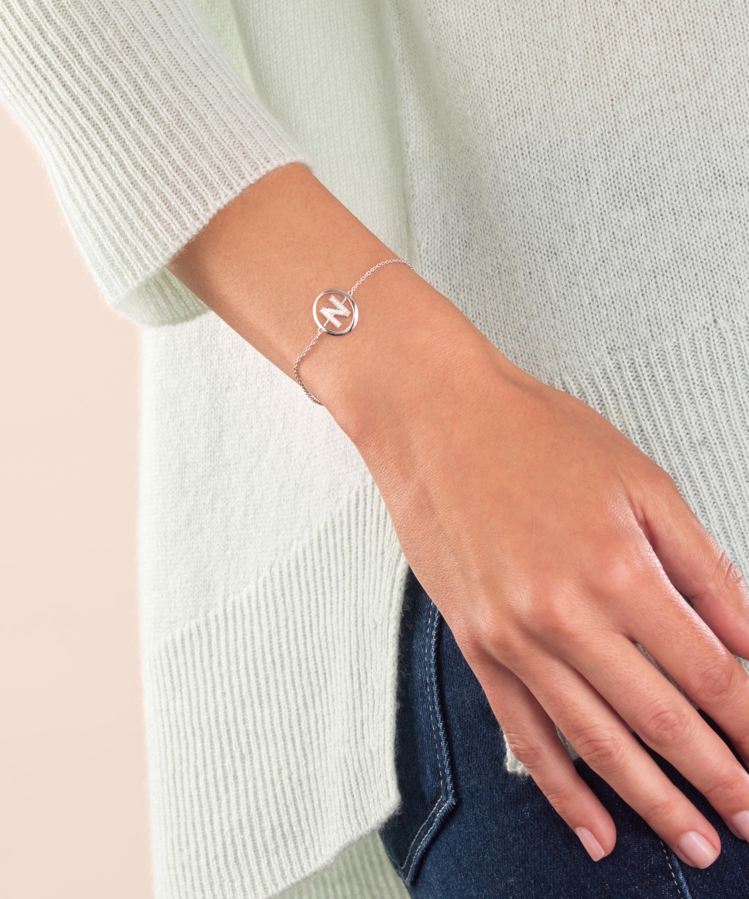 18ct White Gold Diamond Initial N Bracelet