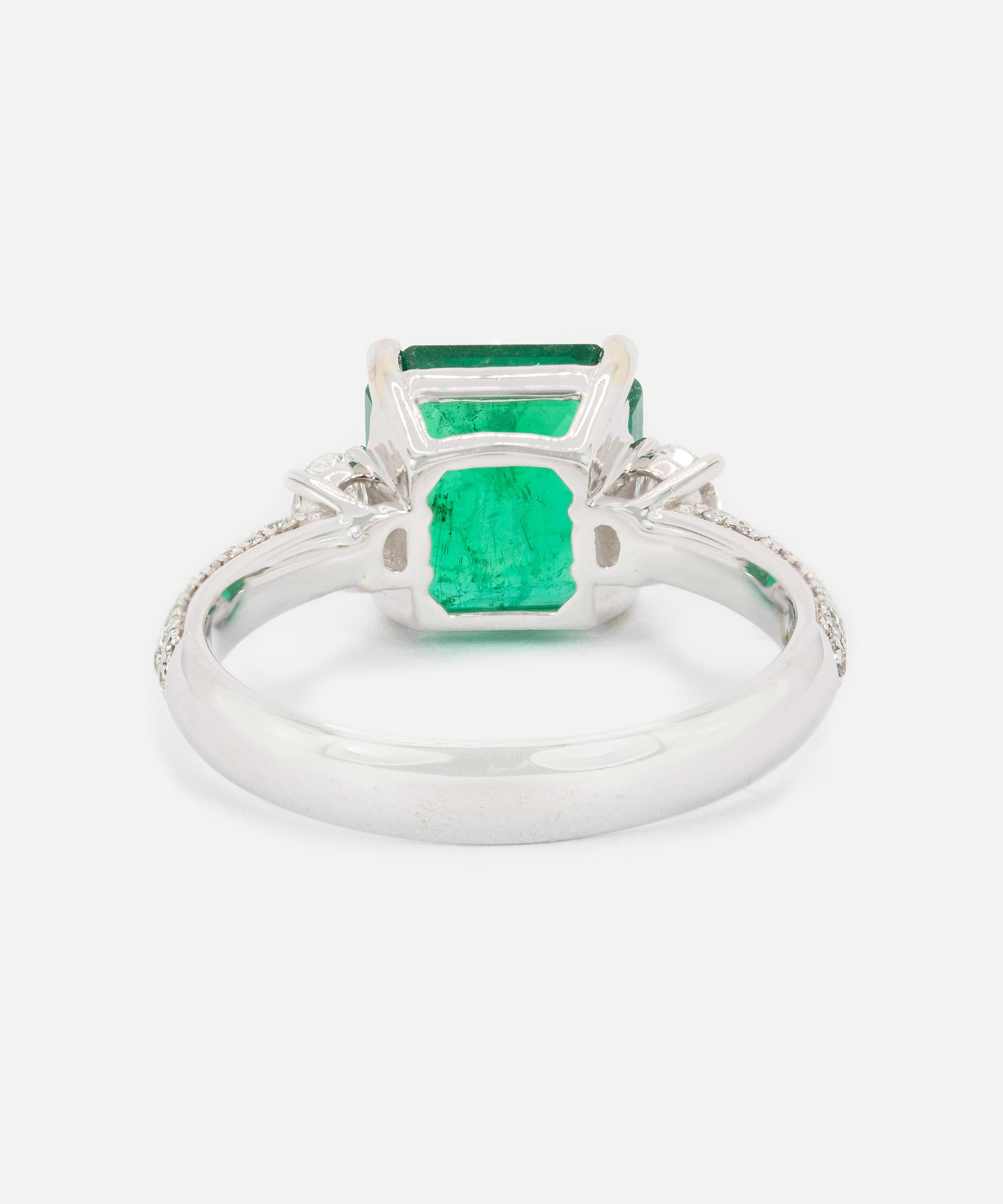 Stamped ‘750’ 18ct White Gold; Estimated 3.12ct Emerald; Estimated 0.58ct Diamond