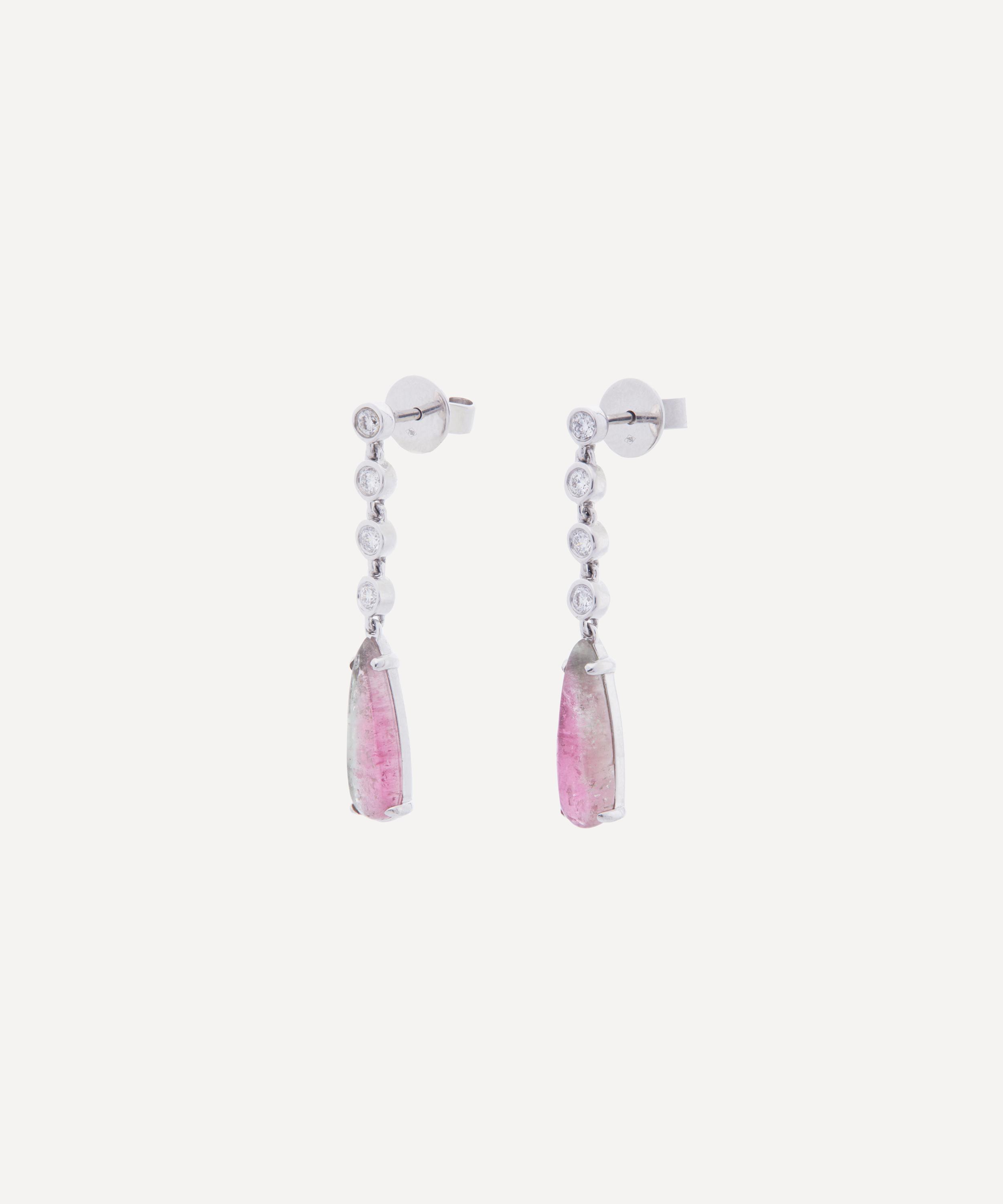 Kojis 18ct White Gold Watermelon Tourmaline and Diamond Drop Earrings