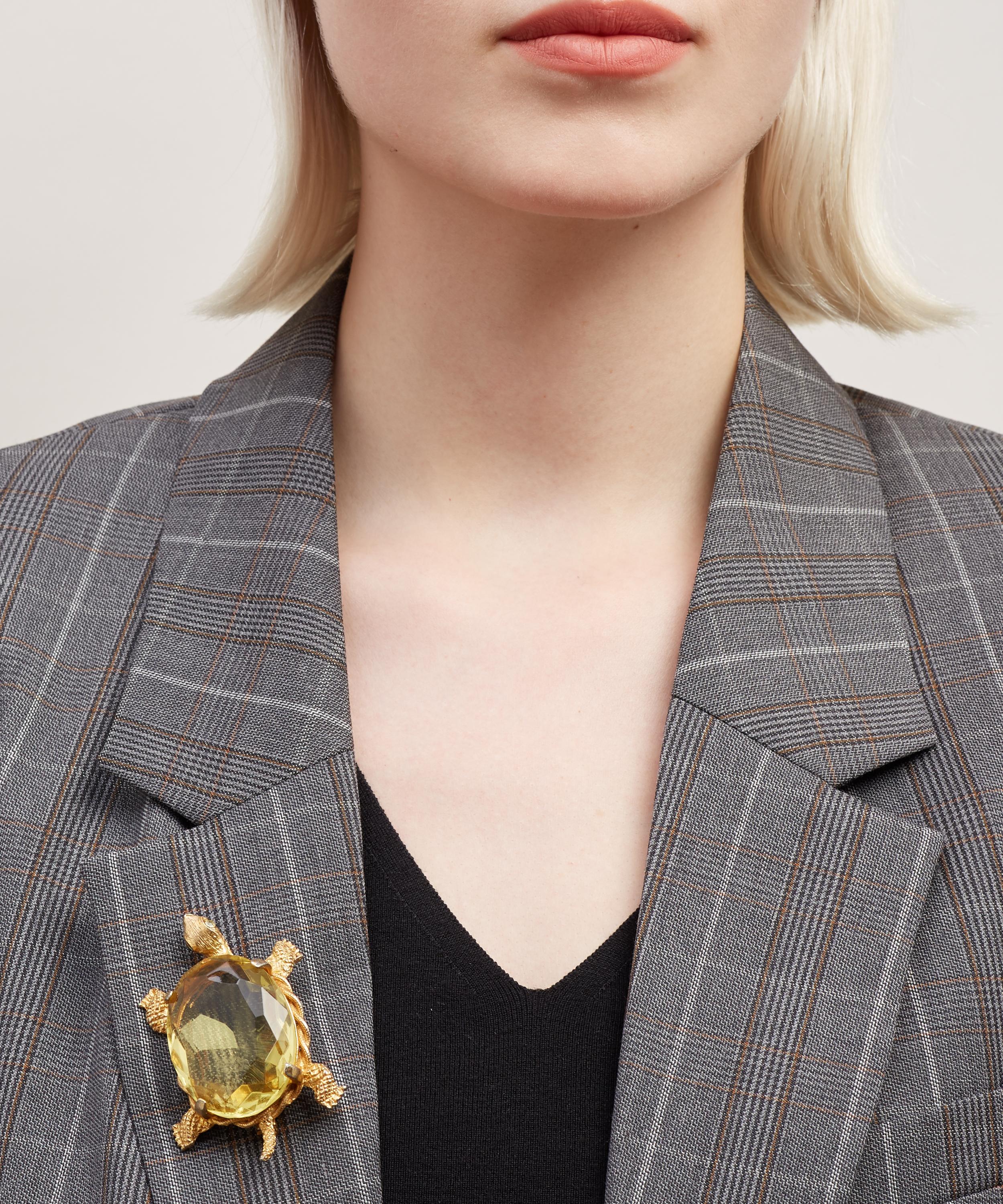 This Jeanne turtle brooch is a playfully designed piece hand-sourced by jewellery experts at Designer Vintage.