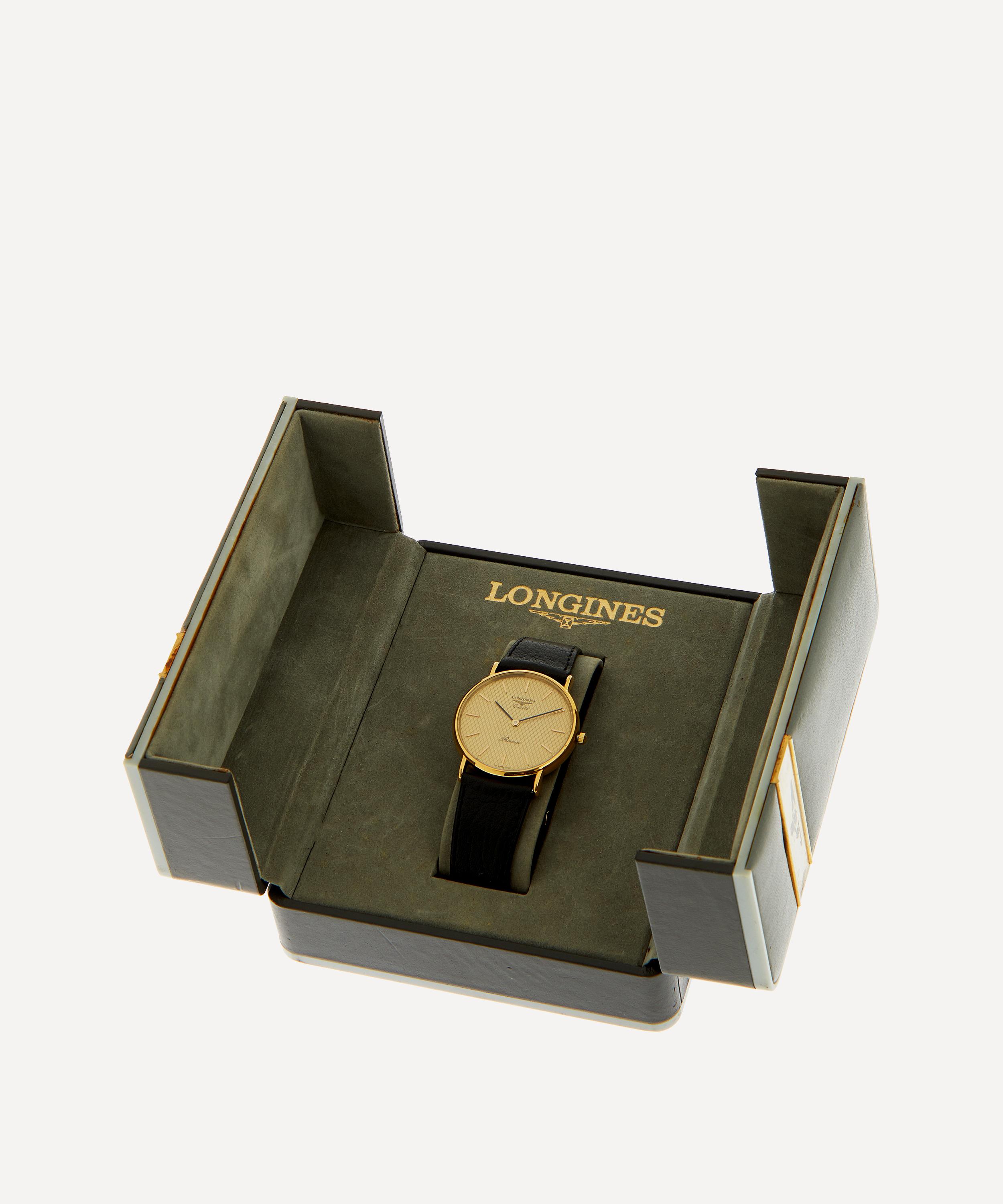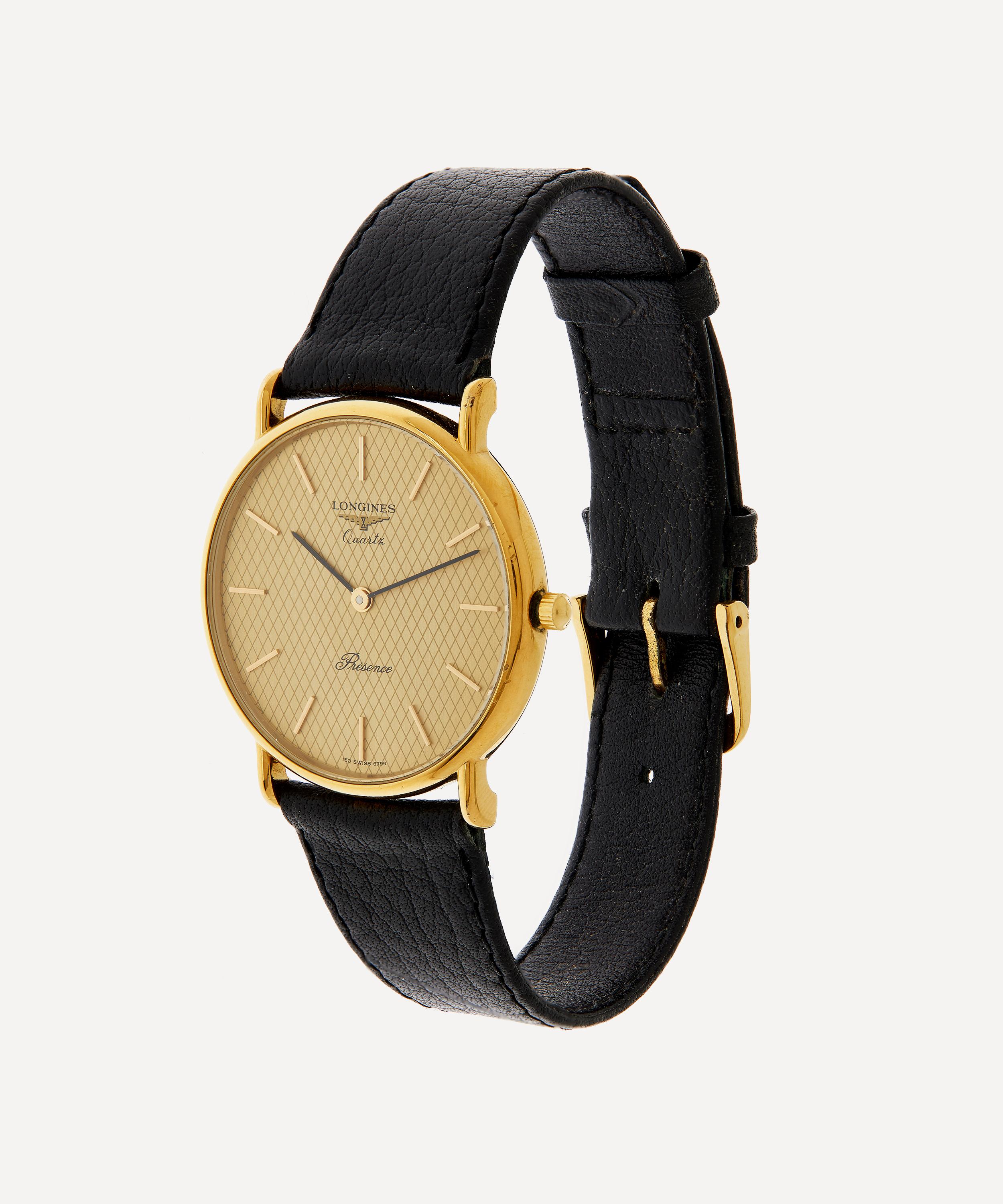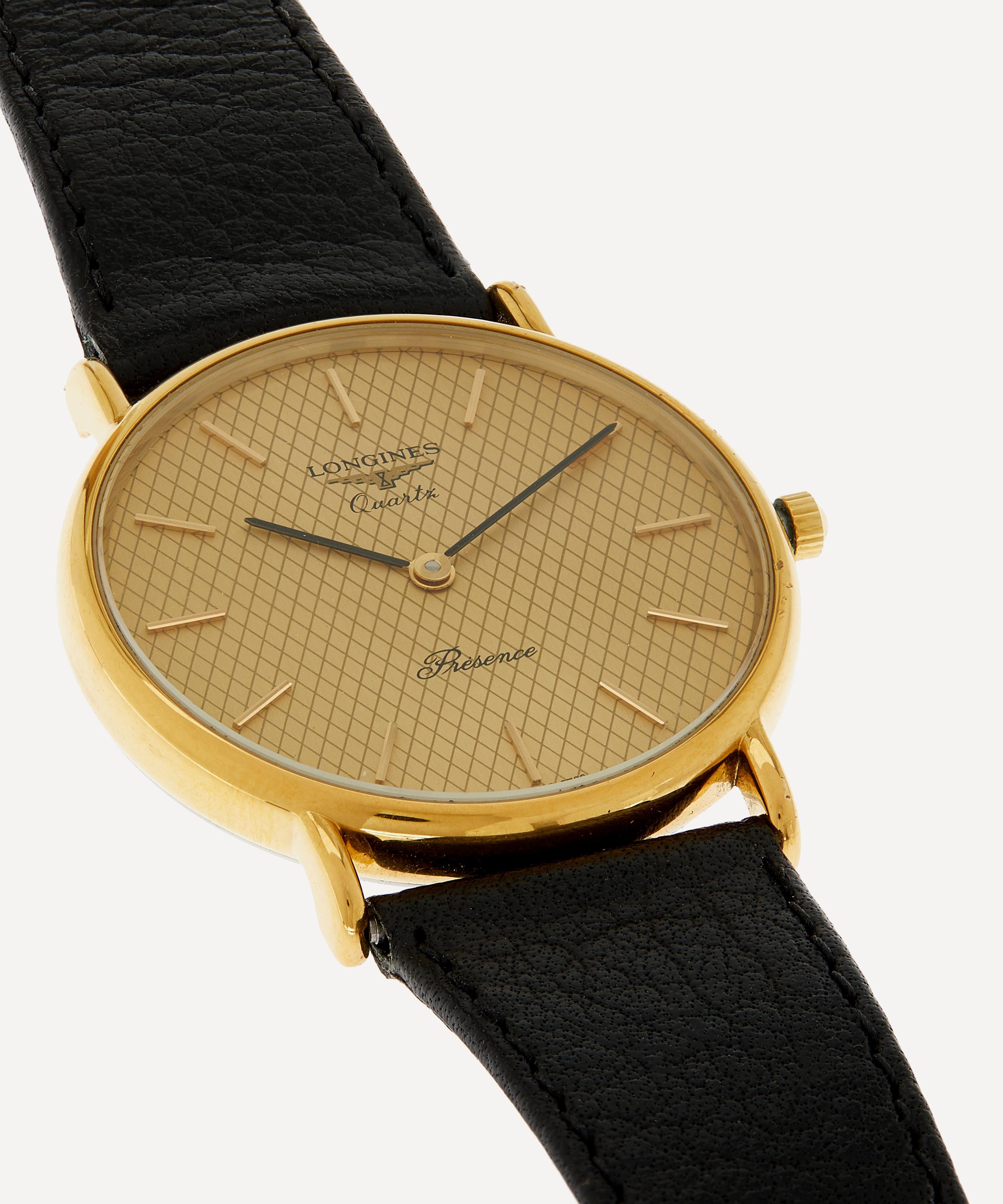 Dating back to the late 1980s, this gilt Longines Présence watch is a highly collectable timepiece, hand-sourced by jewellery experts at Designer Vintage.