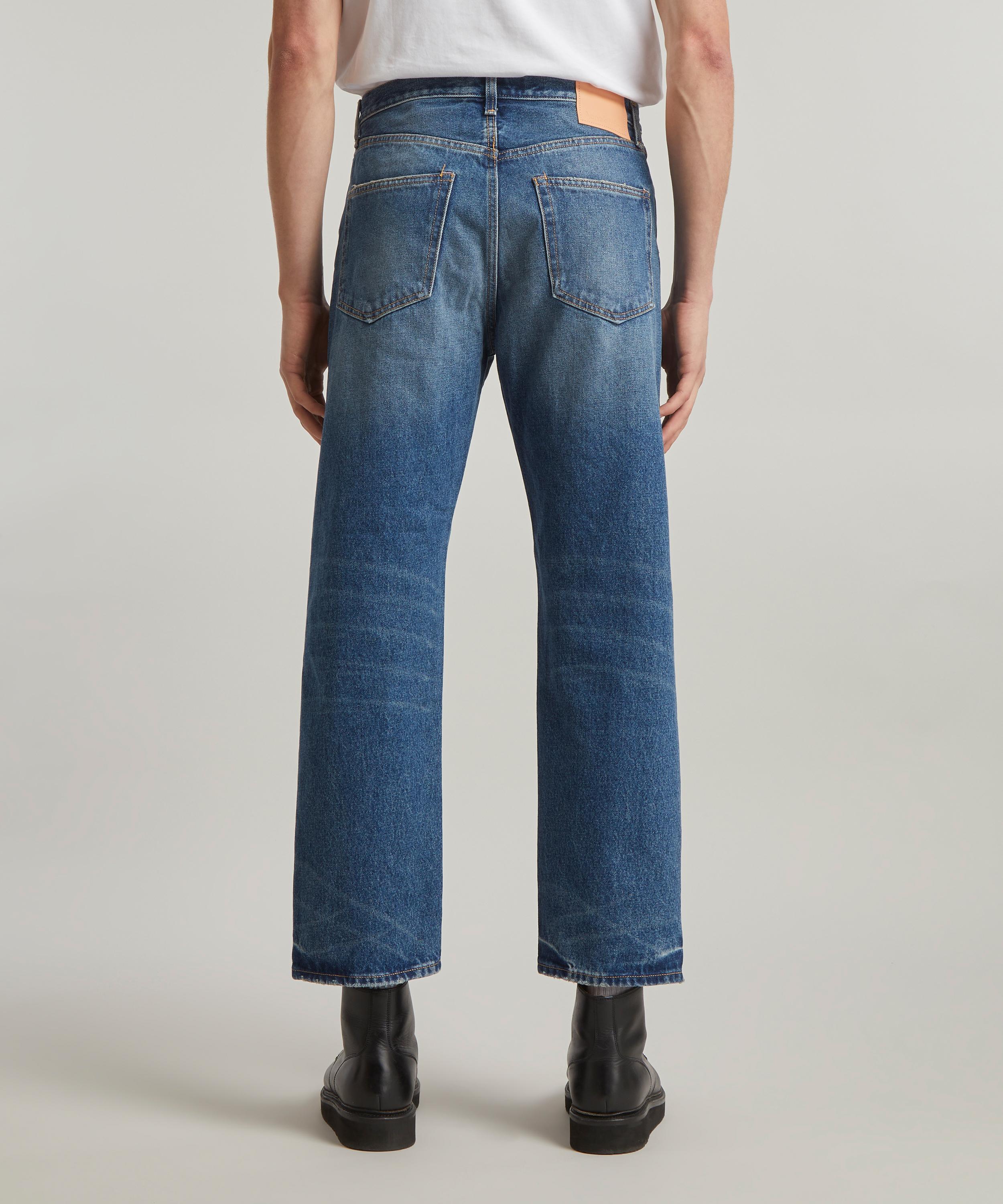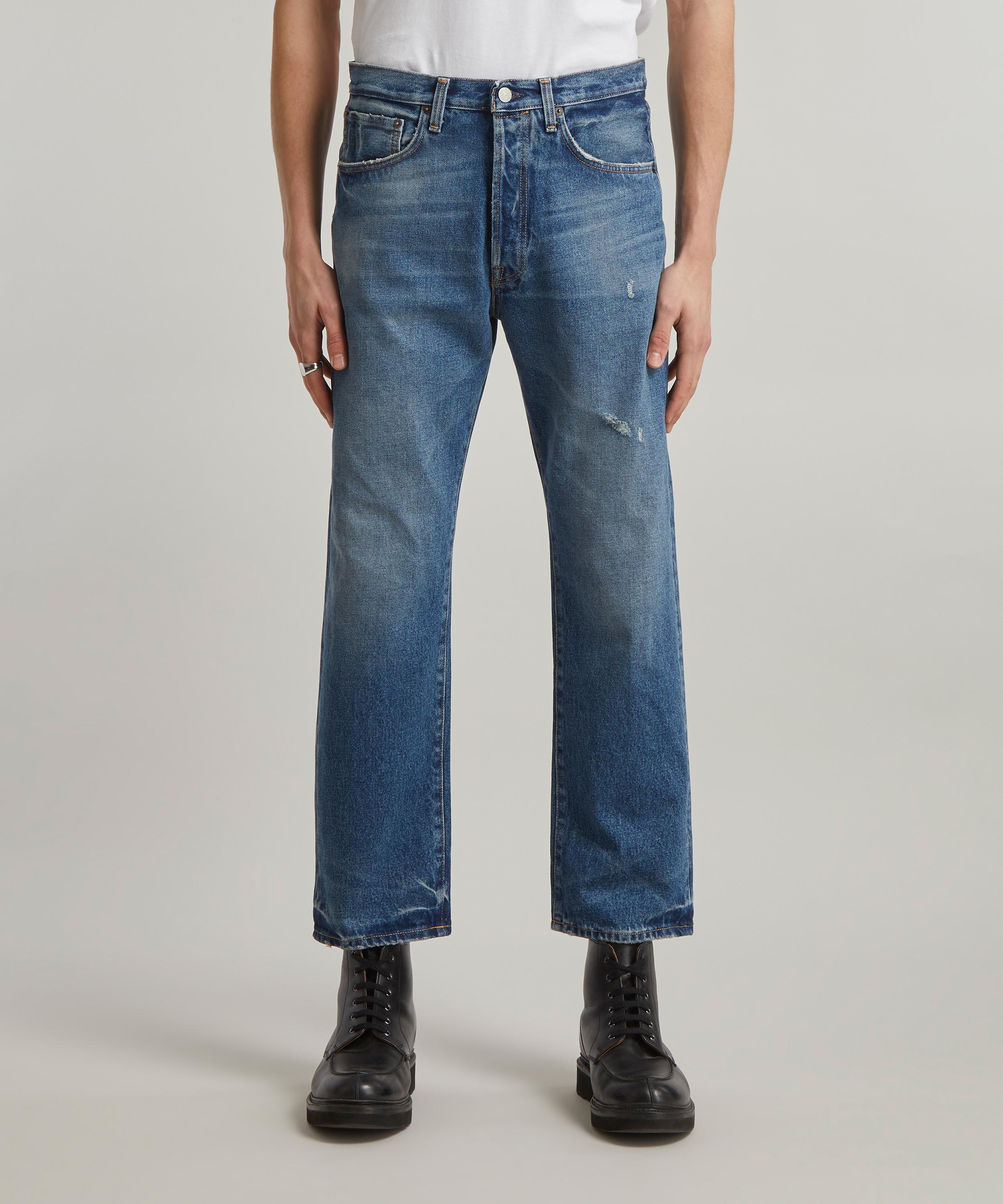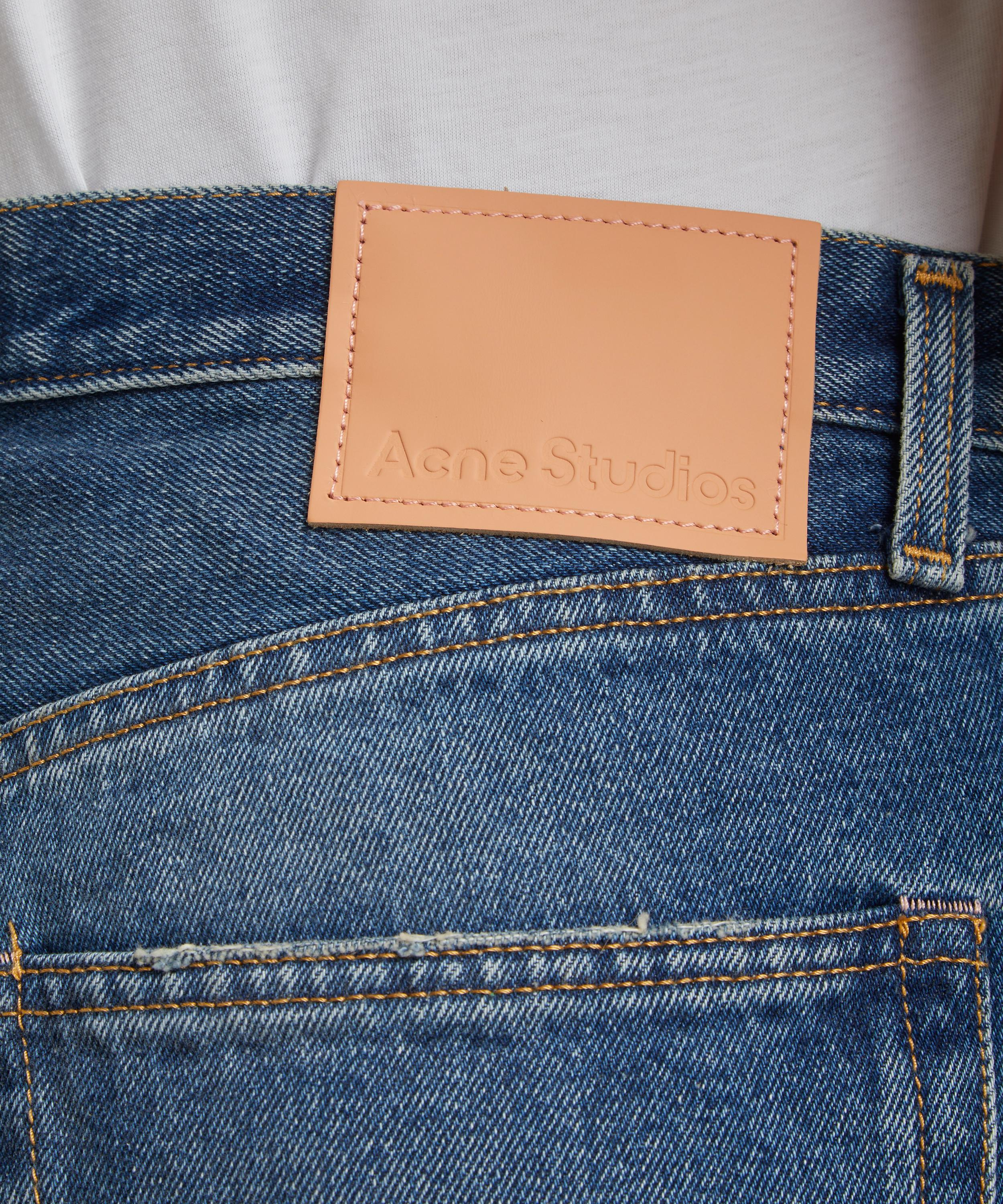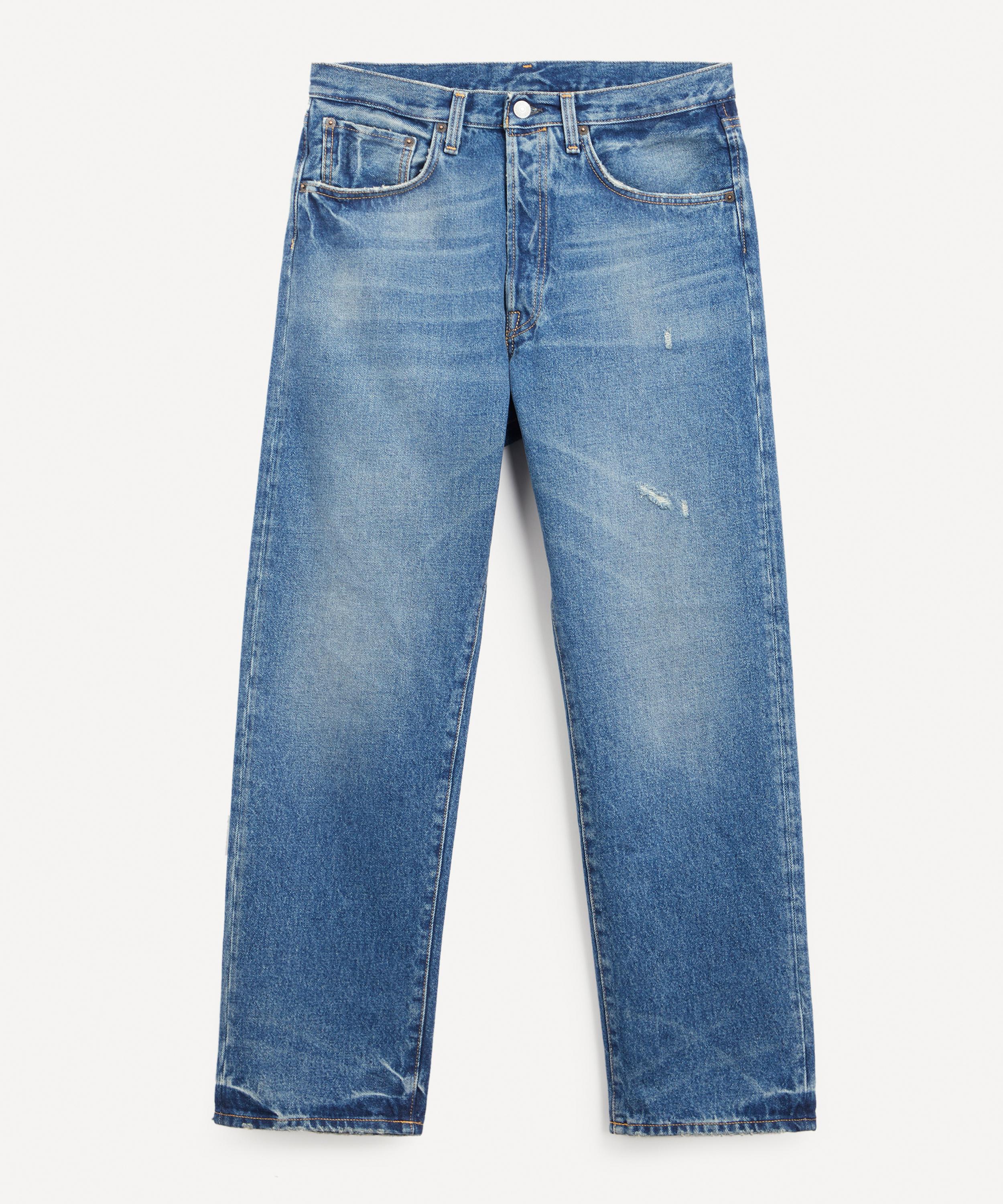 Leading the way in Scandinavian design for over twenty years, Acne Studios continues to apply its contemporary perspective to fresh concepts. Crafted from rigid cotton denim which has been washed for a lived-in, whiskered finish, these wide-straight jeans are finished with the brand's iconic leather logo patch.