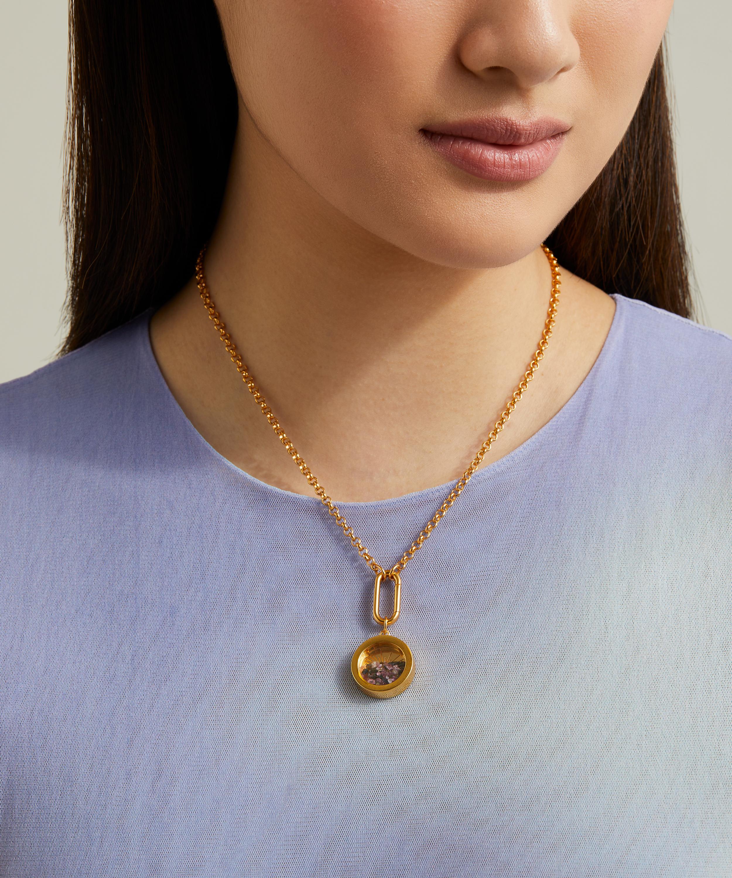 Upgrade your jewellery collection with something personal like Rachel Jackson’s birthstone pendant necklace. Crafted from 22ct gold-plated silver, it features a classic link chain and round amulet pendant sealed with a mix of semi-precious gems and garnet stones – symbolic for anyone born in January. Beautifully styled solo and layered with other chains, this is an heirloom piece you will treasure forever.