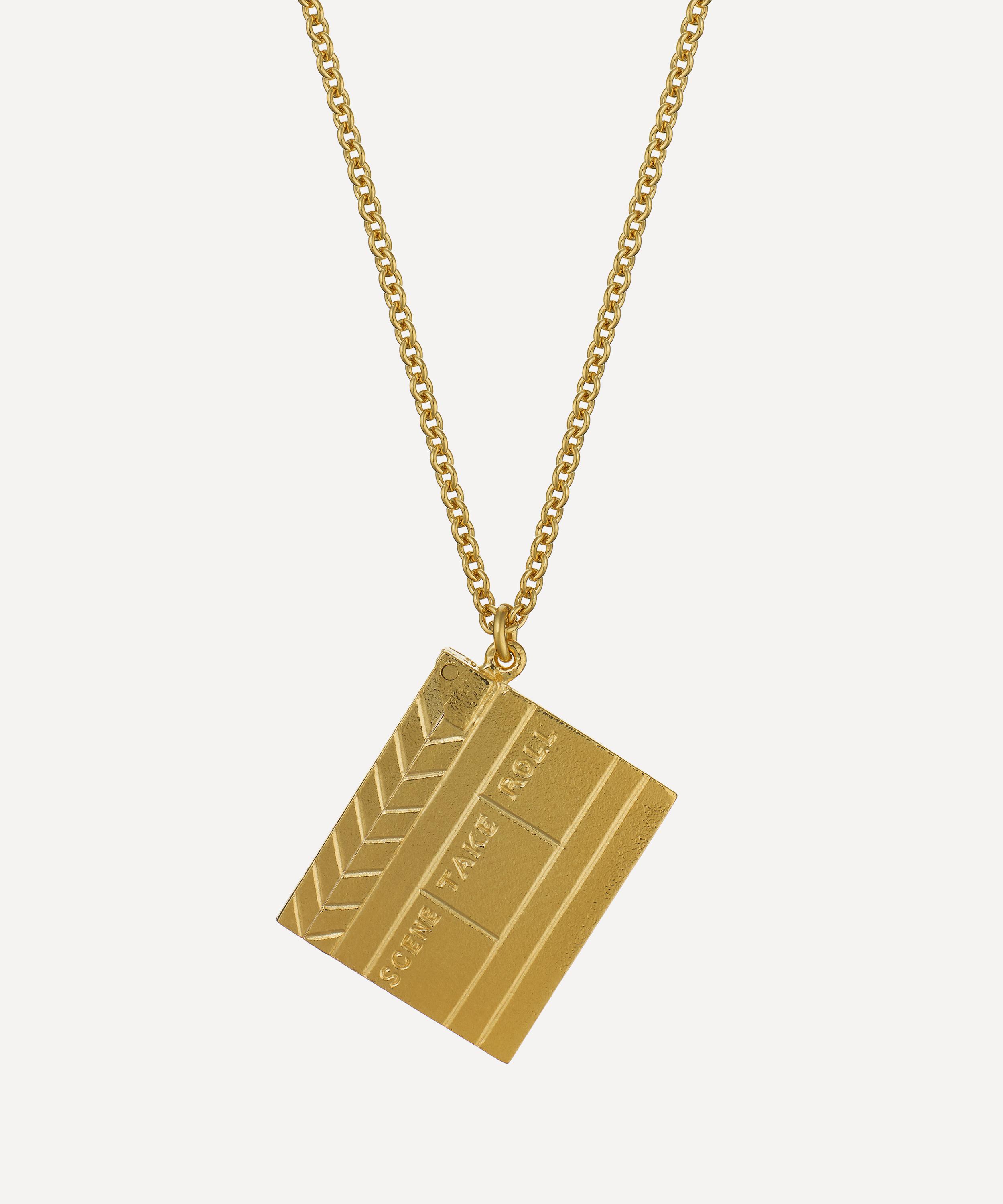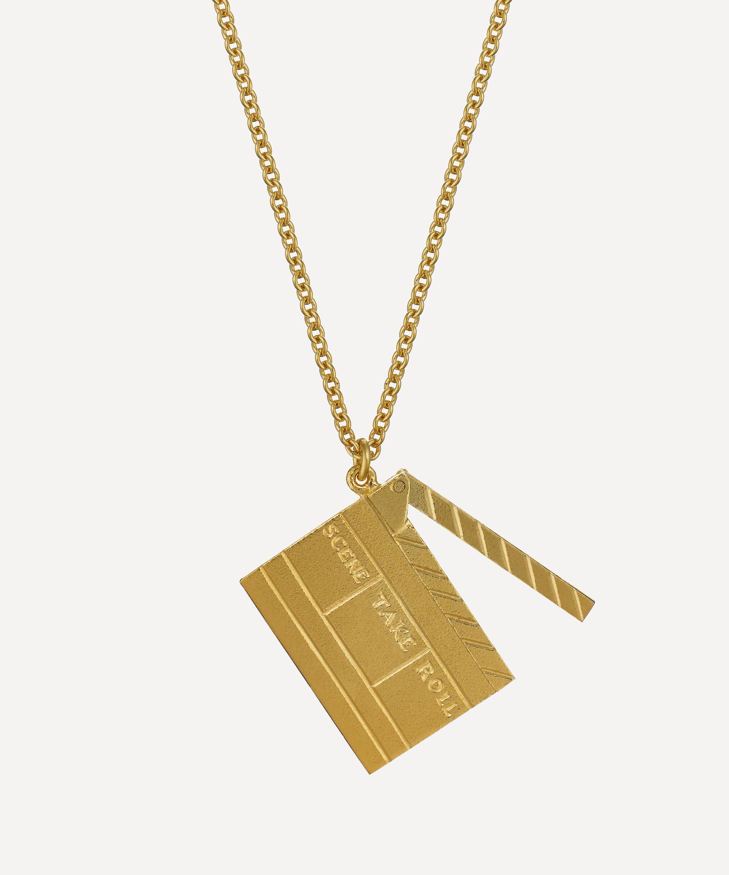 Full of character and sweet symbolism, this pendant necklace from Alex Monroe will have you stand out from the crowd. A homage to the magic of the movies, this necklace features a clapperboard pendant, perfect for the movie buff in your life. Complete with a trace chain, it makes for a beautiful addition to any accessory rotation, perfect for anyone looking for something unique to express their personality.