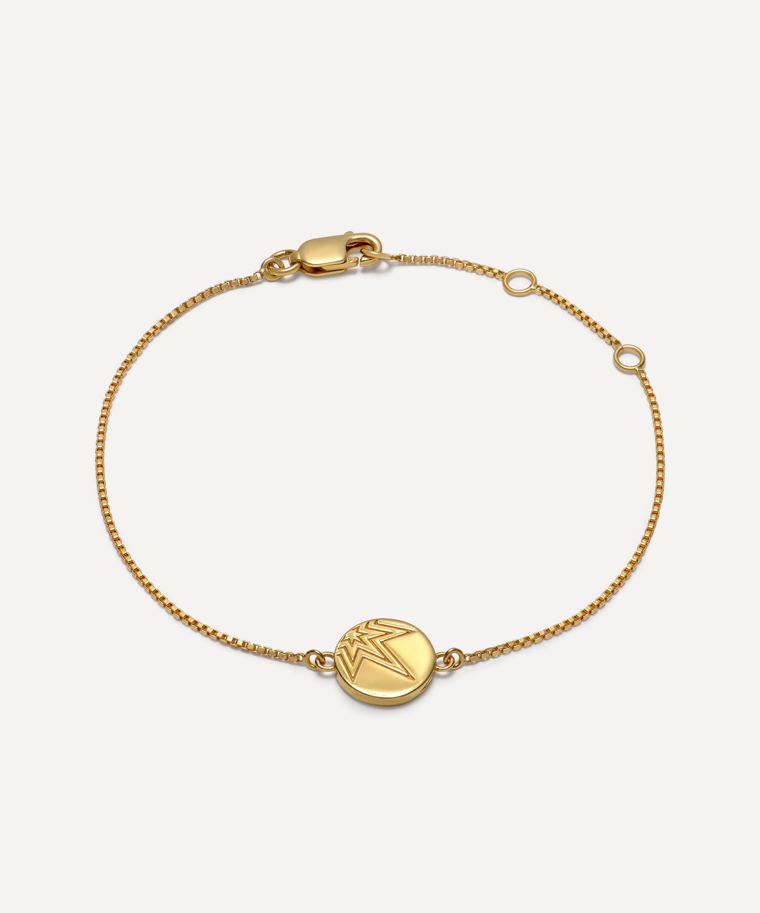 Boasting a light-hearted addition to your collection, the Mini Happy Face charm bracelet from Rachel Jackson instantly brings an element of fun to your edit. Crafted from 22ct gold-plated silver, this bracelet features a fine chain and a happy face charm adorned with two cubic zirconia-set eyes. Try layering yours with other delicately playful pieces for a contemporary approach.