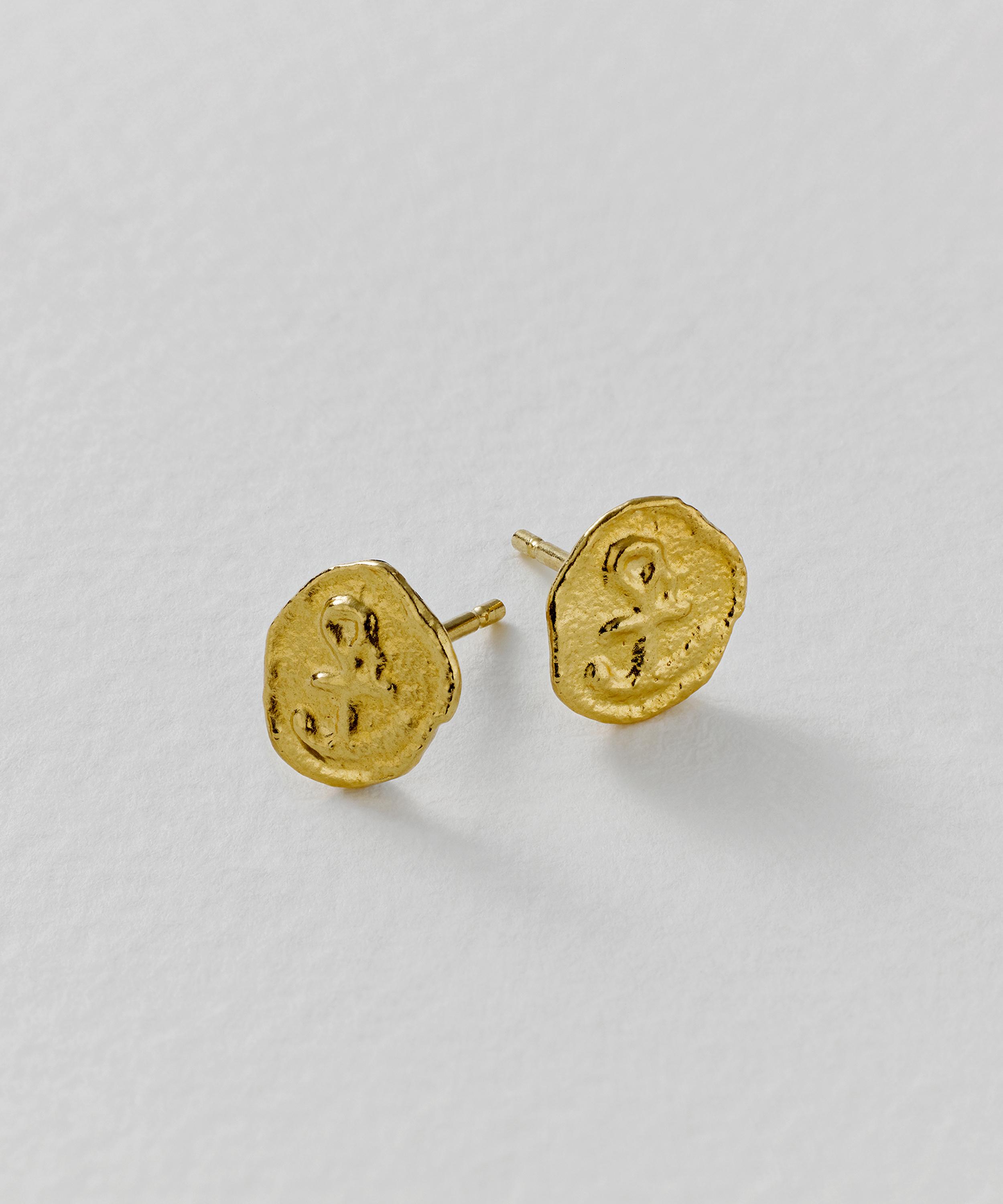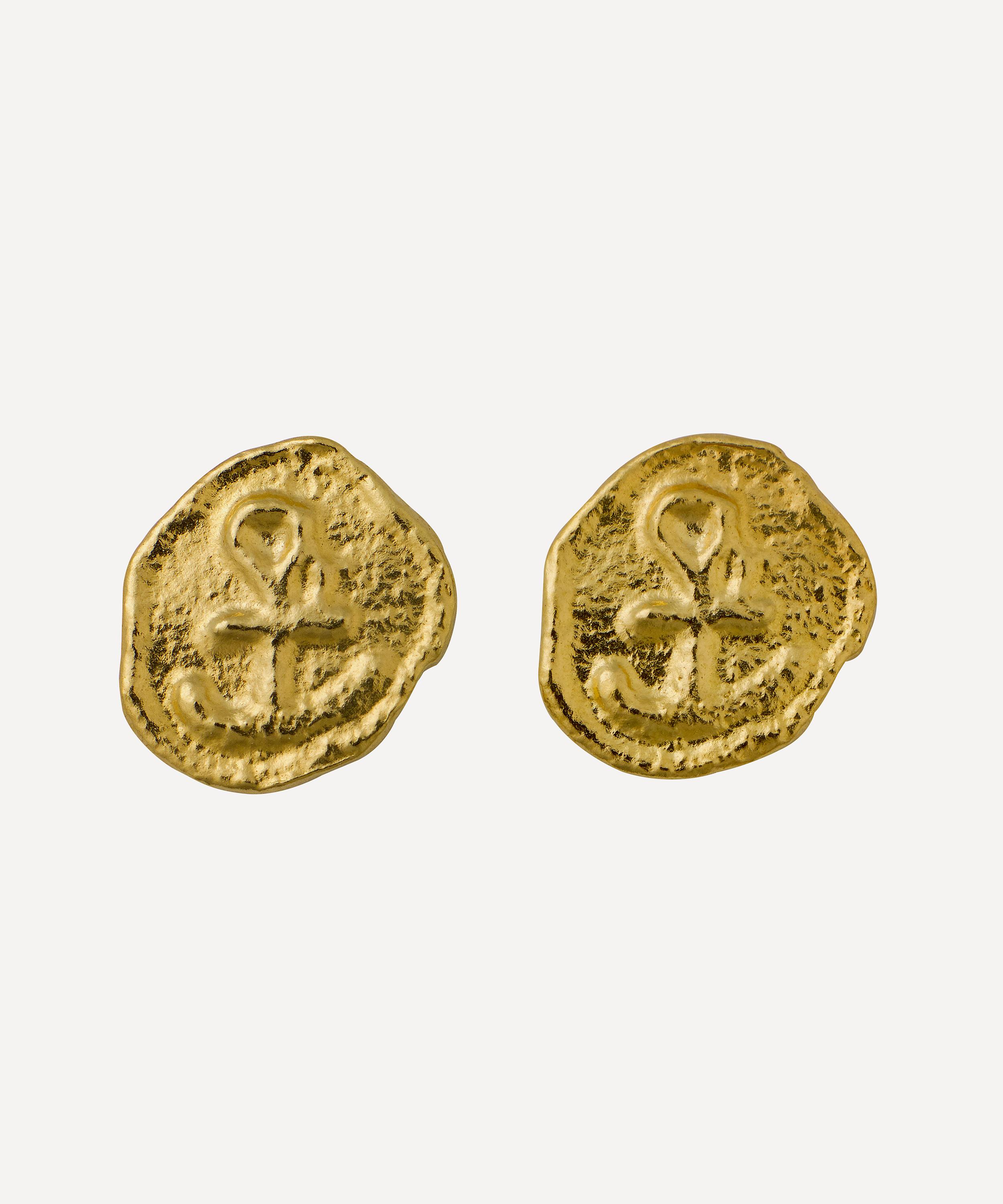 Inspired by nature and the waterways of Great Britain, these Mudlarked Anchor Token Stud Earrings from Alex Monroe beautifully reflect the designer’s use of charming motifs. Handcrafted in London from 22ct gold-plated sterling silver, each earring bears an intricate imprinted texture reminiscent of anchors, evoking tales from bygone eras. Wear them solo or mix and match with other jewellery from the brand's collections.