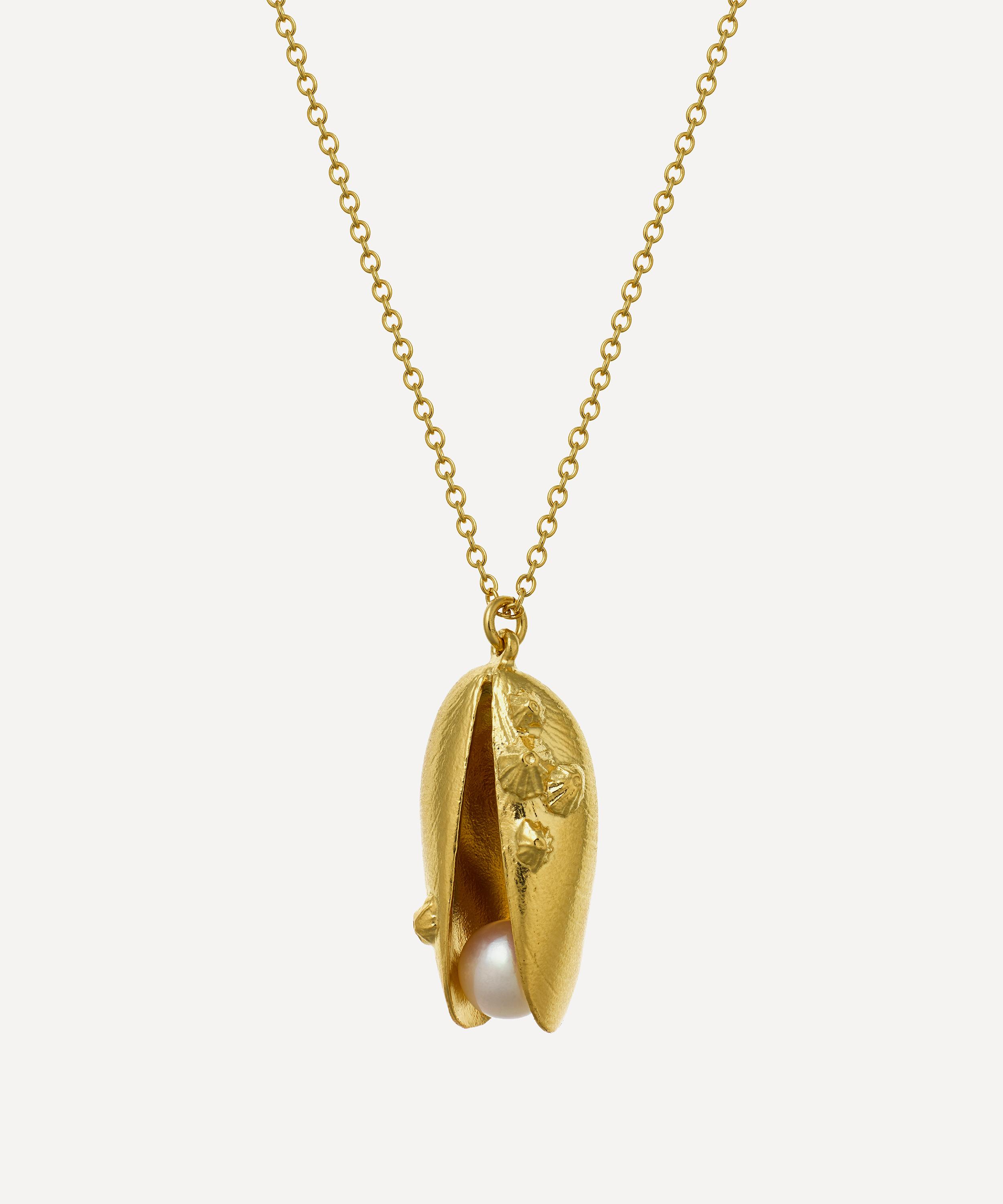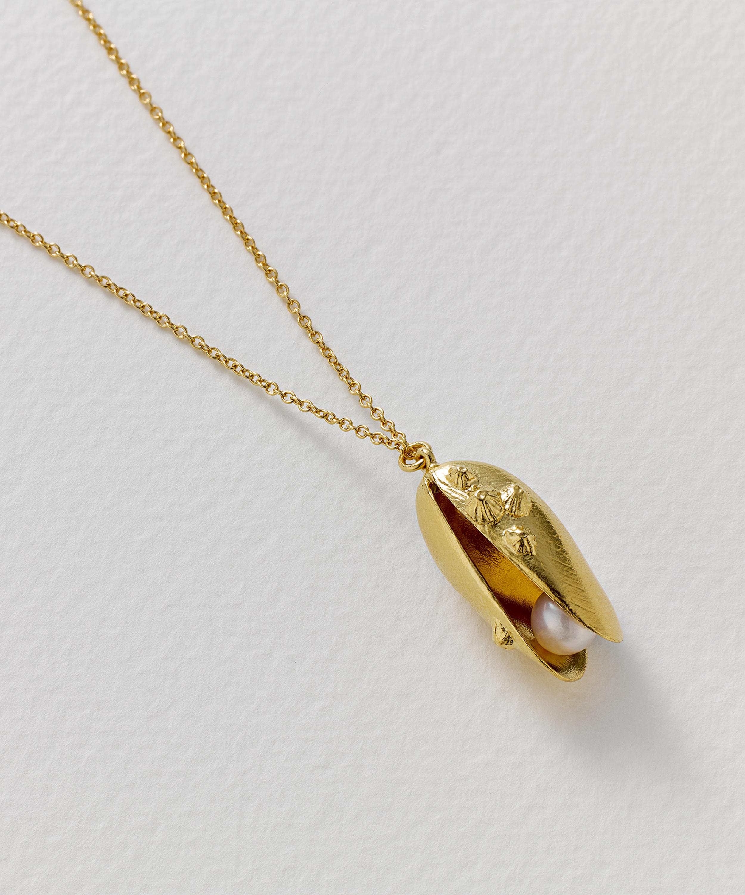 Inspired by nature and the waterways of Great Britain, the Mussel & Pearl Necklace from Alex Monroe perfectly captures the designer’s use of charming motifs. Handcrafted in London from 22ct gold-plated sterling silver, an open mussel shell houses a freshwater pearl that moves subtly with the wearer. Suspended from a fine trace chain, it can be styled solo or paired with other jewellery from the brand's collections.