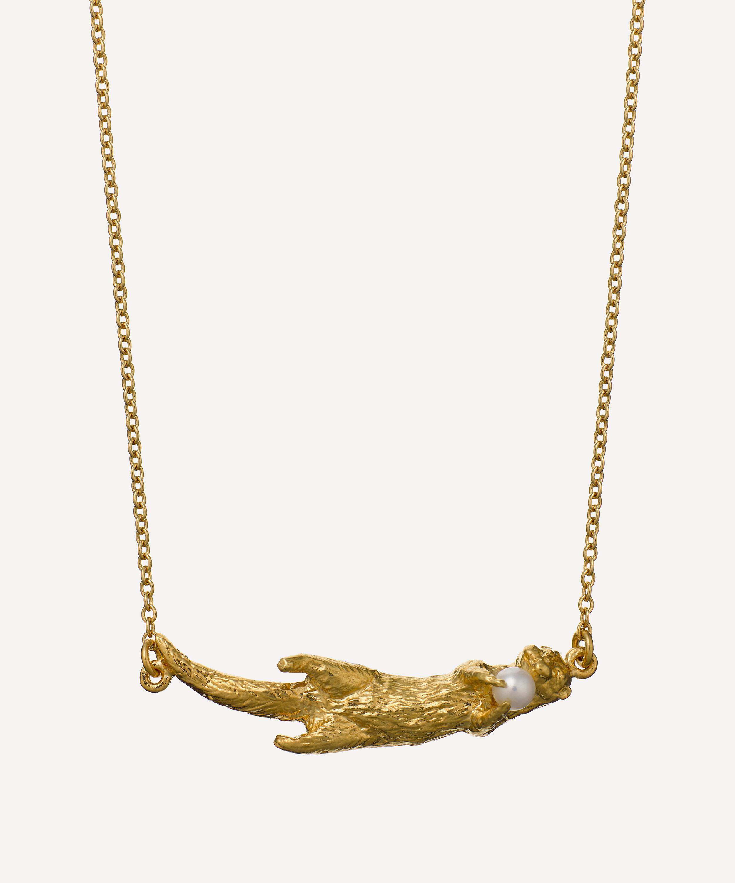 22ct Gold-Plated Otter & Pearl Inline Necklace