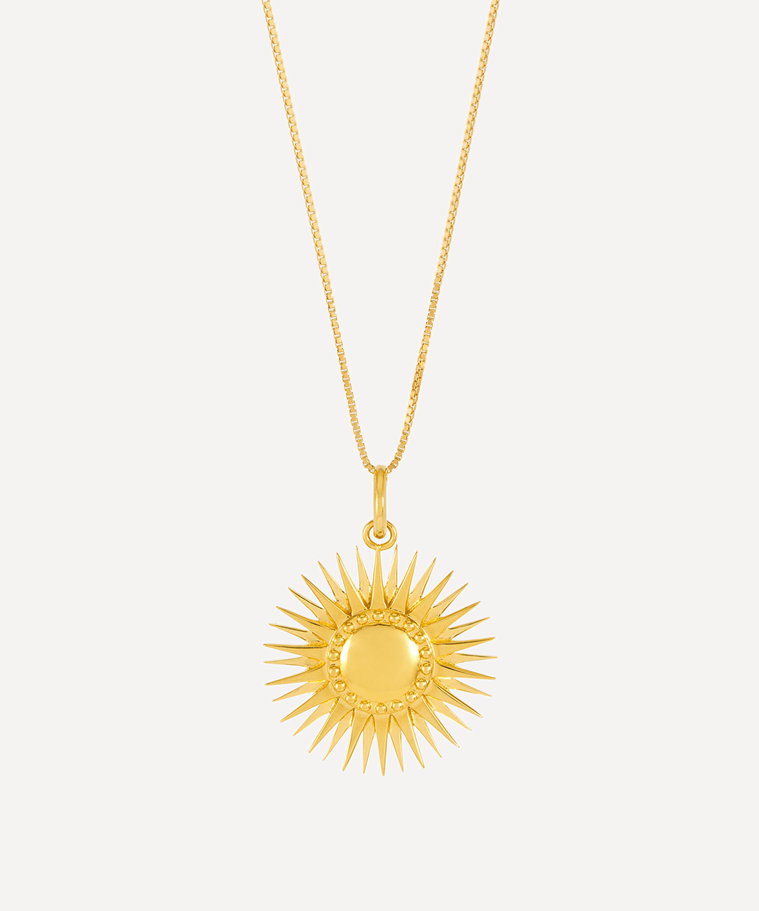 Rachel Jackson introduces the Spiky Rising Sun pendant necklace, a beautiful everyday talisman to add to your collection. Crafted from 22ct gold-plated silver, it features a classic rolo chain and sun-shaped pendant, accented with spiky art deco-inspired sun bursts. Wear it solo or as part of a stack.