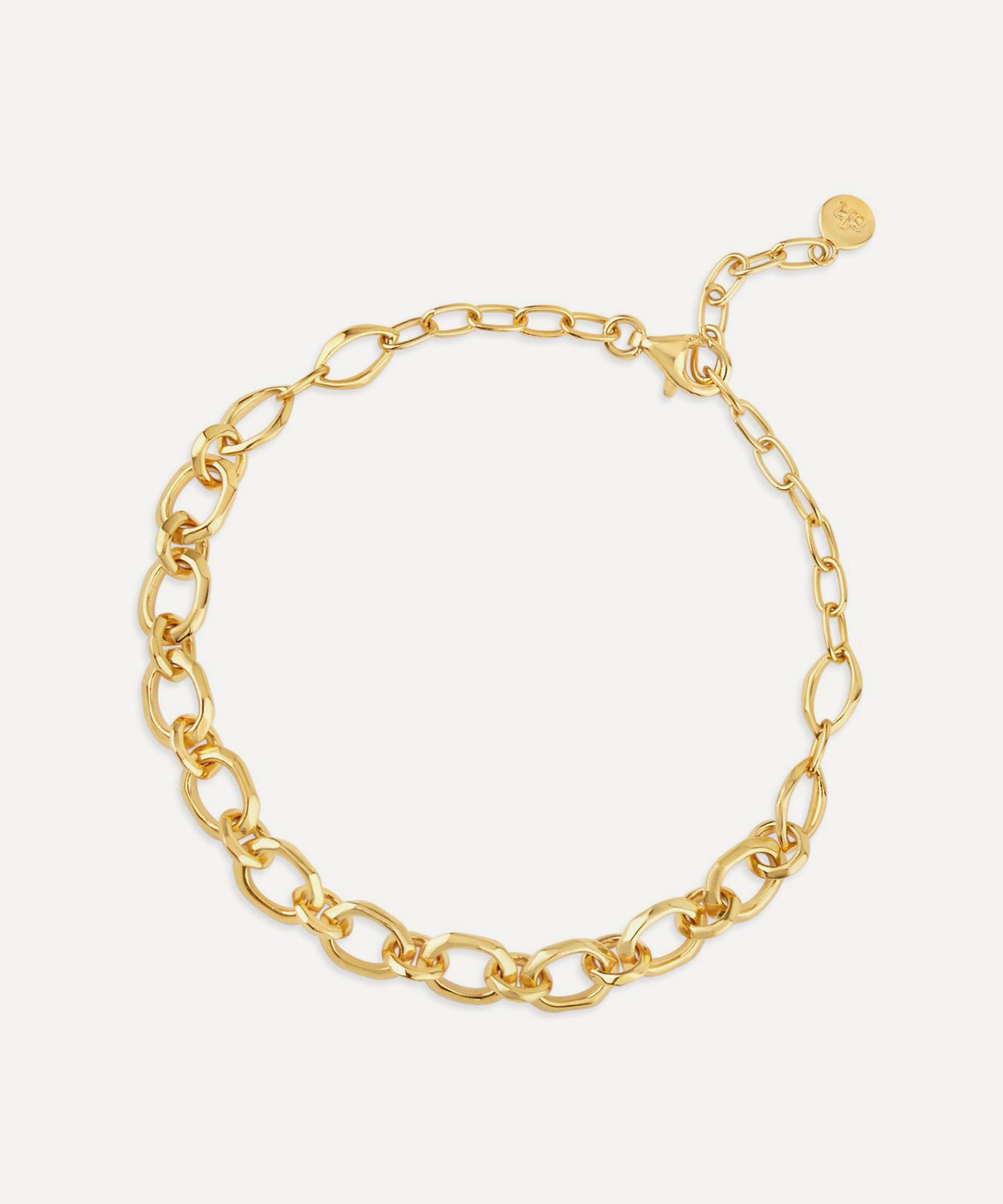 Inspired by Thalassa, goddess of the sea, this bracelet from Dinny Hall celebrates the mystical depths of the sea – a collection of pieces expertly crafted to appear worn away by the passing tides. Crafted from 22ct gold-plated silver, it features a paperclip chain adorned with faceted oval links, hand-carved from wax. Wear it solo, or stack it with other bracelets for a trend-led finish.