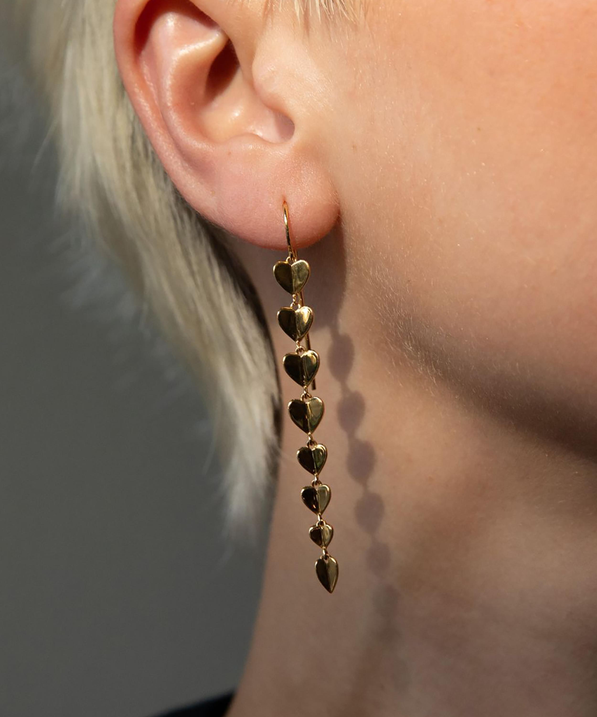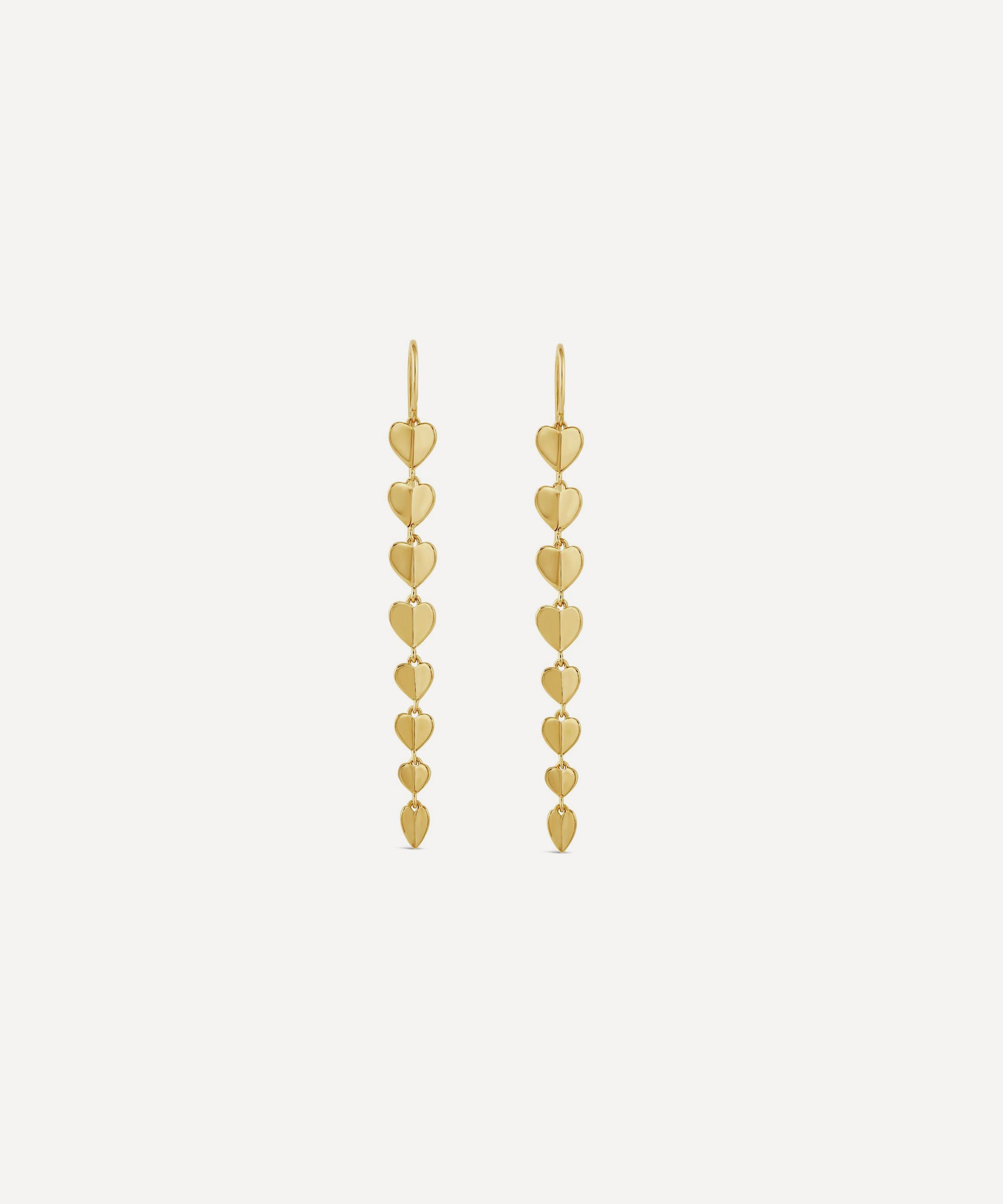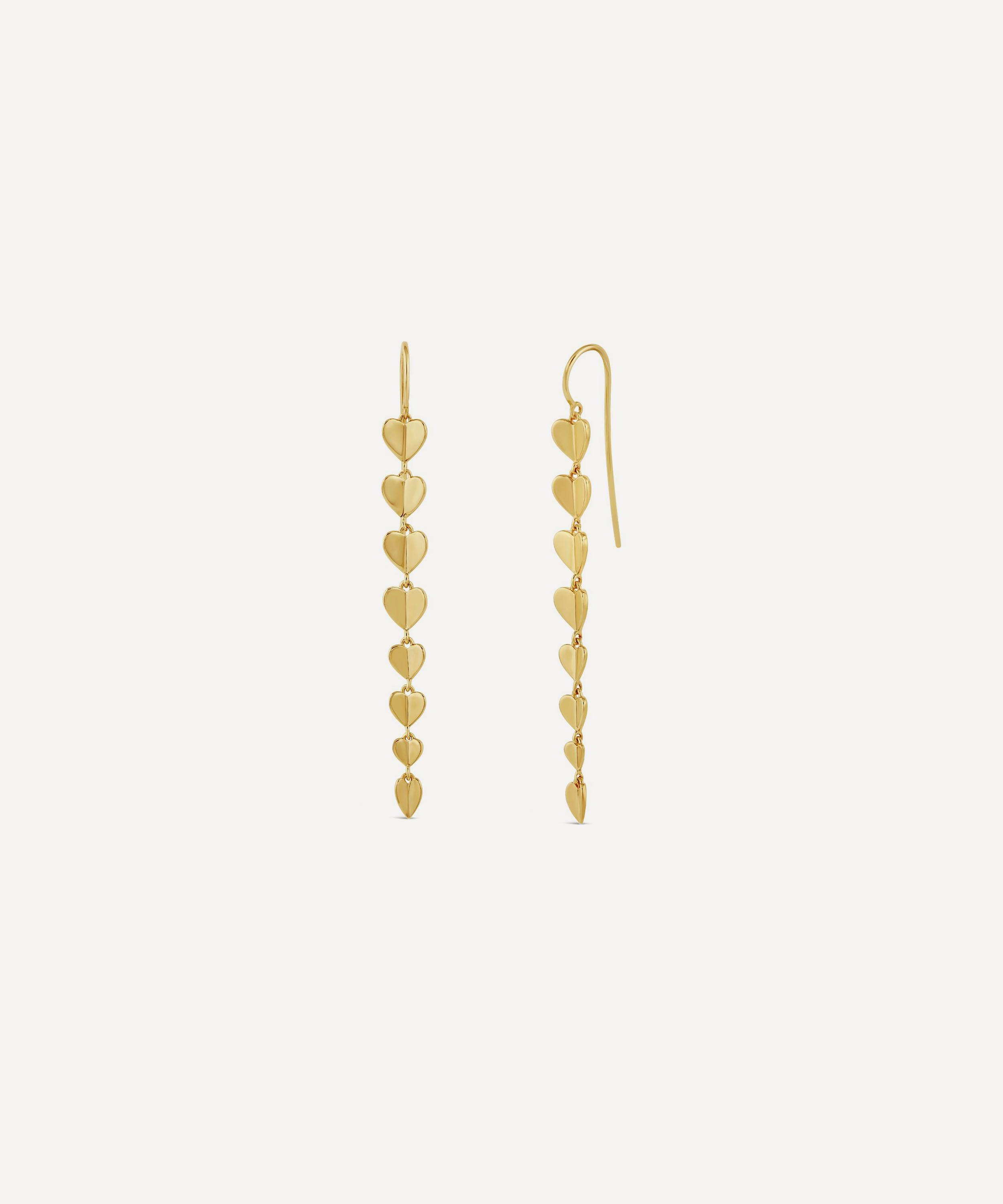 Crafted from sterling silver plated in 22ct gold vermeil, this pair combines sophisticated luxury with playful design, featuring a column-style drop set with fluttering hearts that allow the earrings to sway gracefully. Made to be treasured and cherished for generations to come, they are ideal for both casual and formal looks – try pairing them with other pieces from the collection for a coordinated finish.