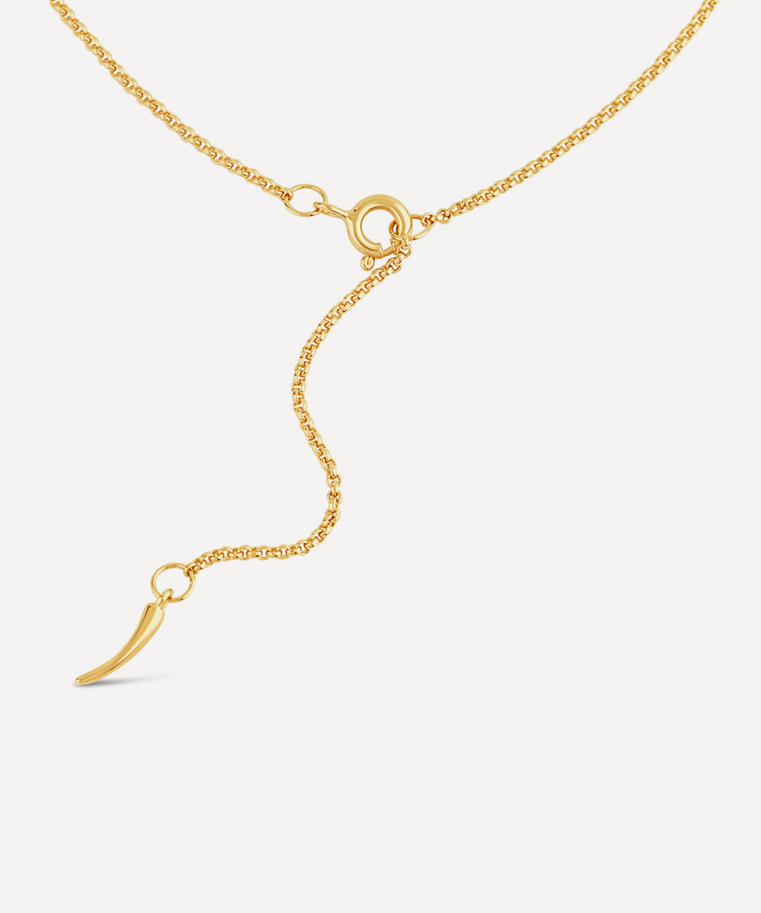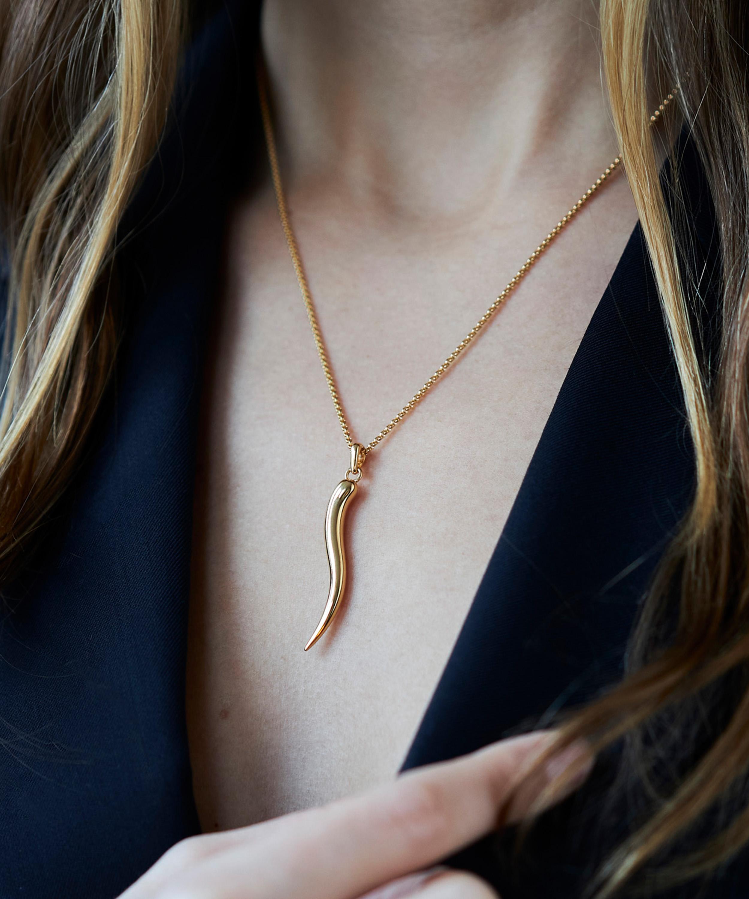 Empower your self-expression and unique style with Dinny Hall’s emblematic Toro Horn pendant necklace. Crafted from sterling silver plated in 22ct gold vermeil, this exceptional piece of jewellery features an elegant horn pendant – inspired by the Italian cornicello horn - suspended from a timeless rolo chain. A symbol of protection and good fortune, it’s perfect for gifting. Style it on its own, pair with matching pieces from the collection or layer with another gold necklace, chains and talismans to add depth and dimension to your look.