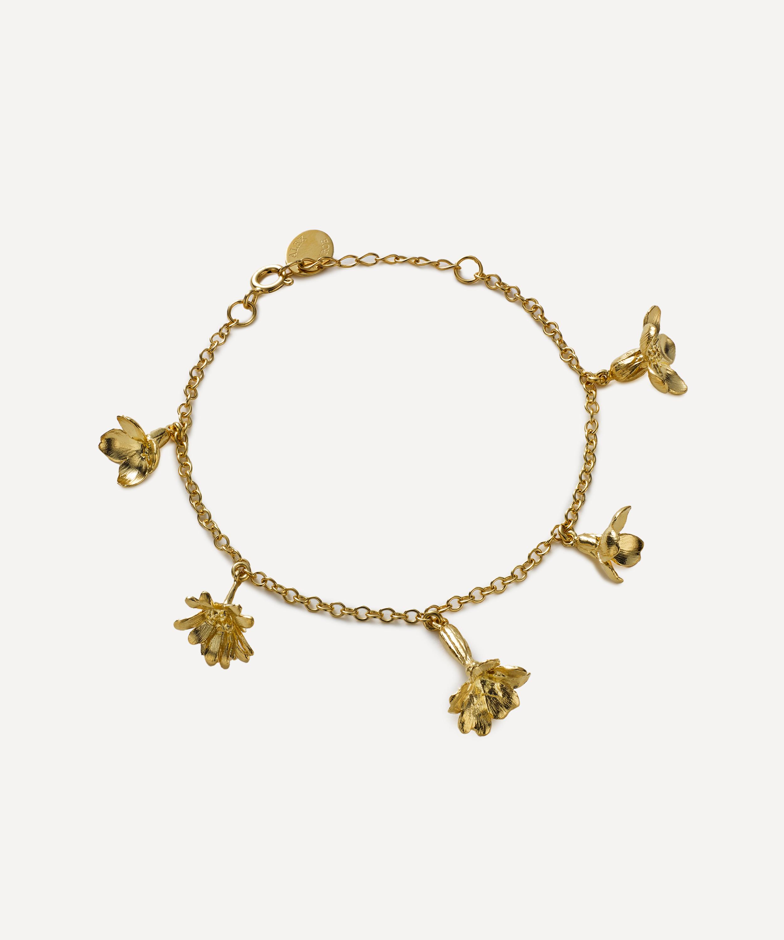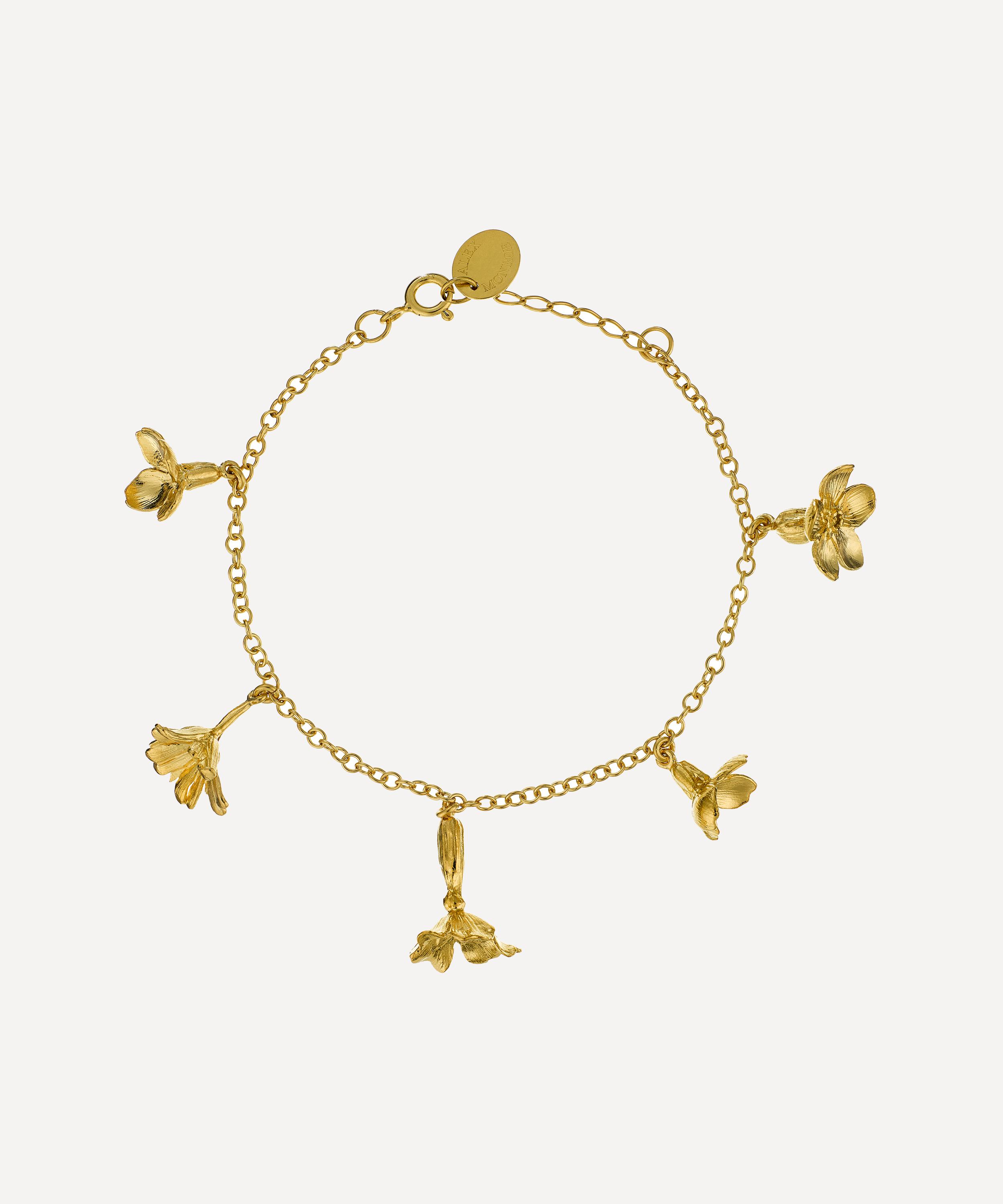This charm bracelet from Alex Monroe perfectly captures the designer’s unwavering appreciation for natural motifs. Handcrafted from 22ct gold-plated silver in the brand's London studio, it features a fine link chain adorned with a medley of wildflower charms. Pair it with other accompanying pieces from the brand for a wearable representation of the elegance and delicacy of the natural world.