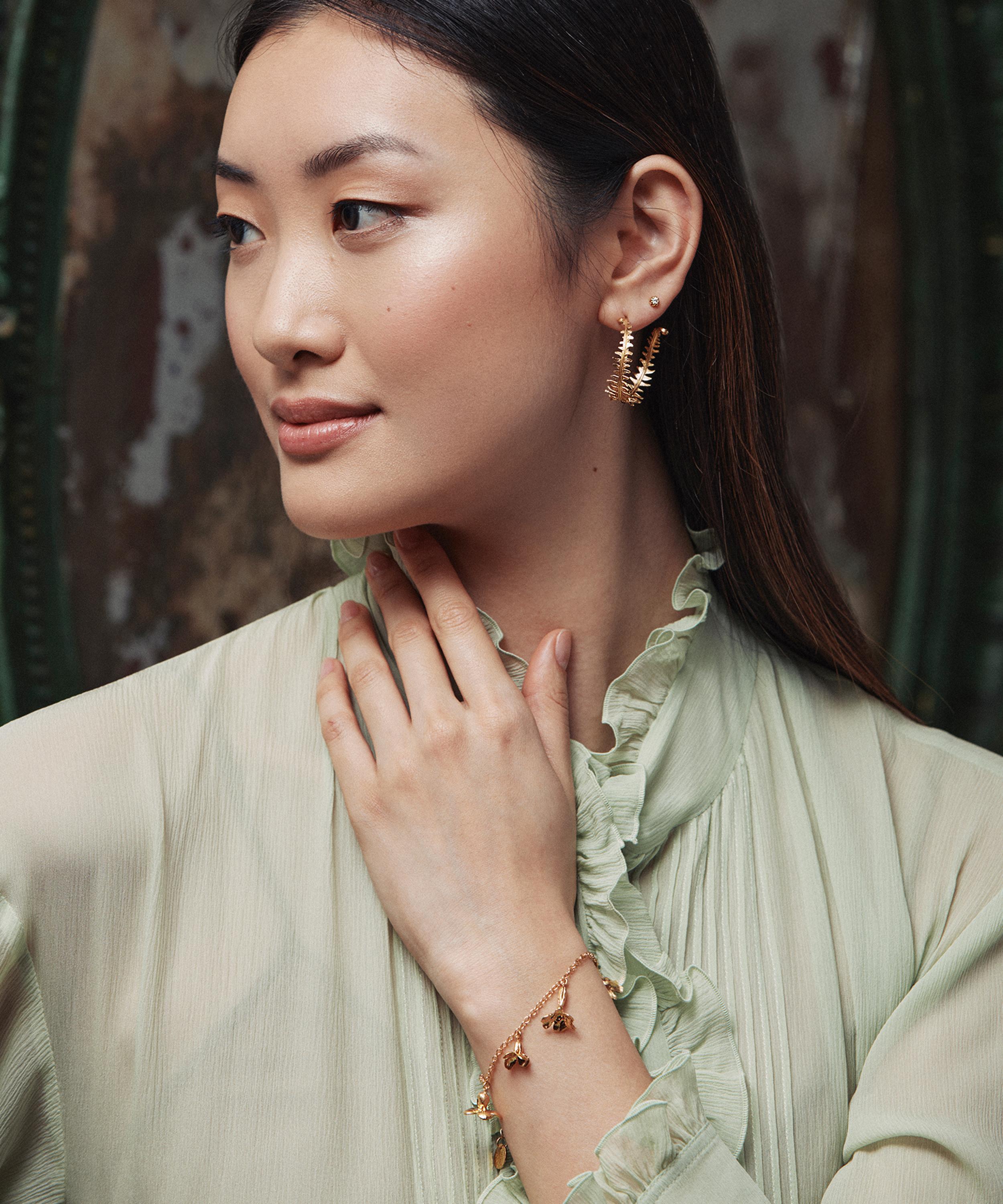 Alex Monroe’s jewellery is known for its wonderfully natural touch – its feather necklace looks like it was plucked out of the wind and sealed with gold – but the English designer and his studio bring something else to their craft too: imagination. It’s what makes their rose earrings so quietly different to others, and what gives their now-iconic bumble motif its hints of movement. And it’s why we’ve been one of Alex’s longest-standing partners.