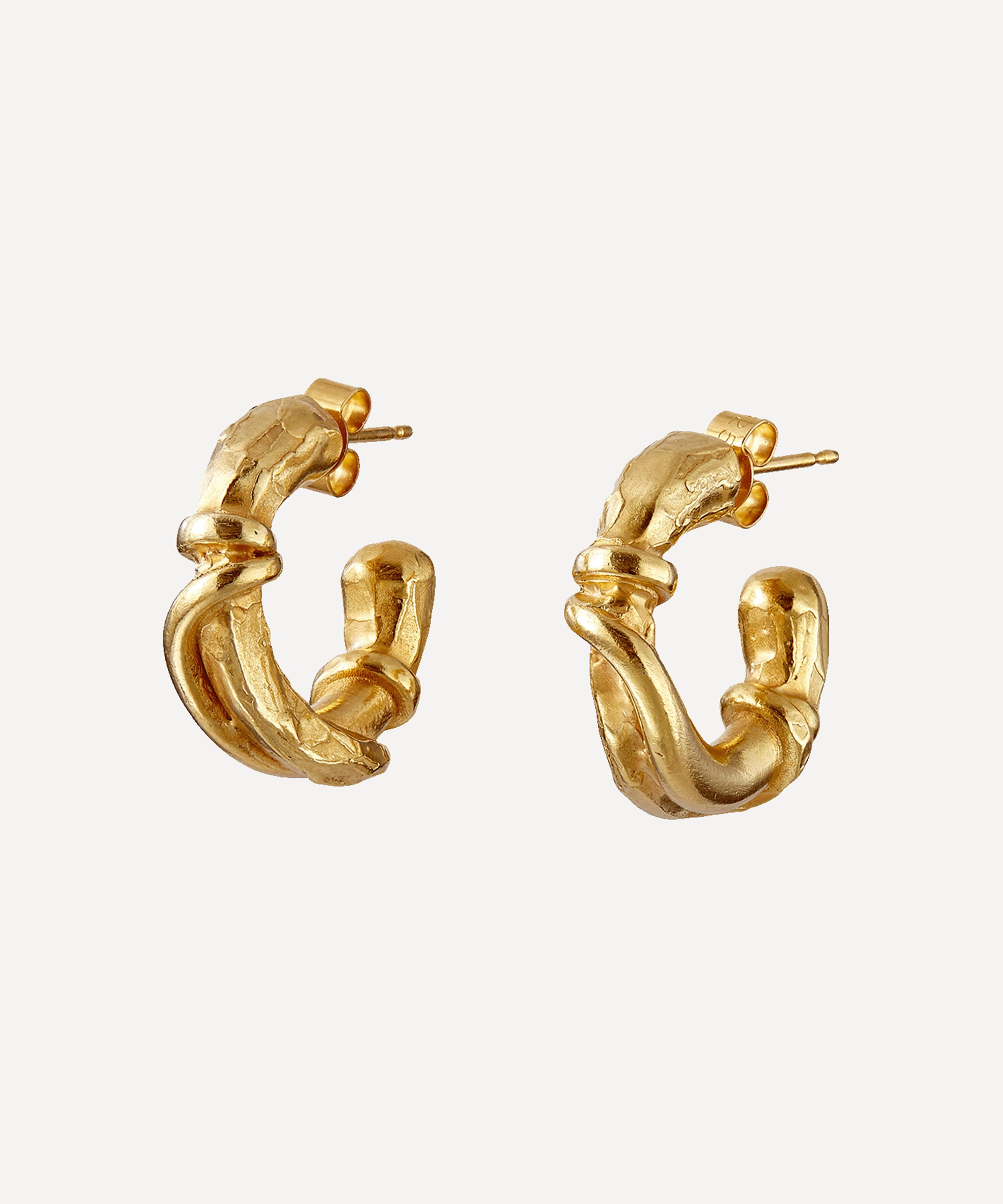 The Cat’s Cradle hoop earrings a signature design from Alighieri - the London-based jewellery brand named after the renowned Italian poet, Dante. Handcrafted from 24ct gold-plated bronze, each earring features a half hoop in the beautifully organic, molten texture the brand is known for. This modern heirloom is an ultra-wearable statement piece that can be passed from generation to generation.