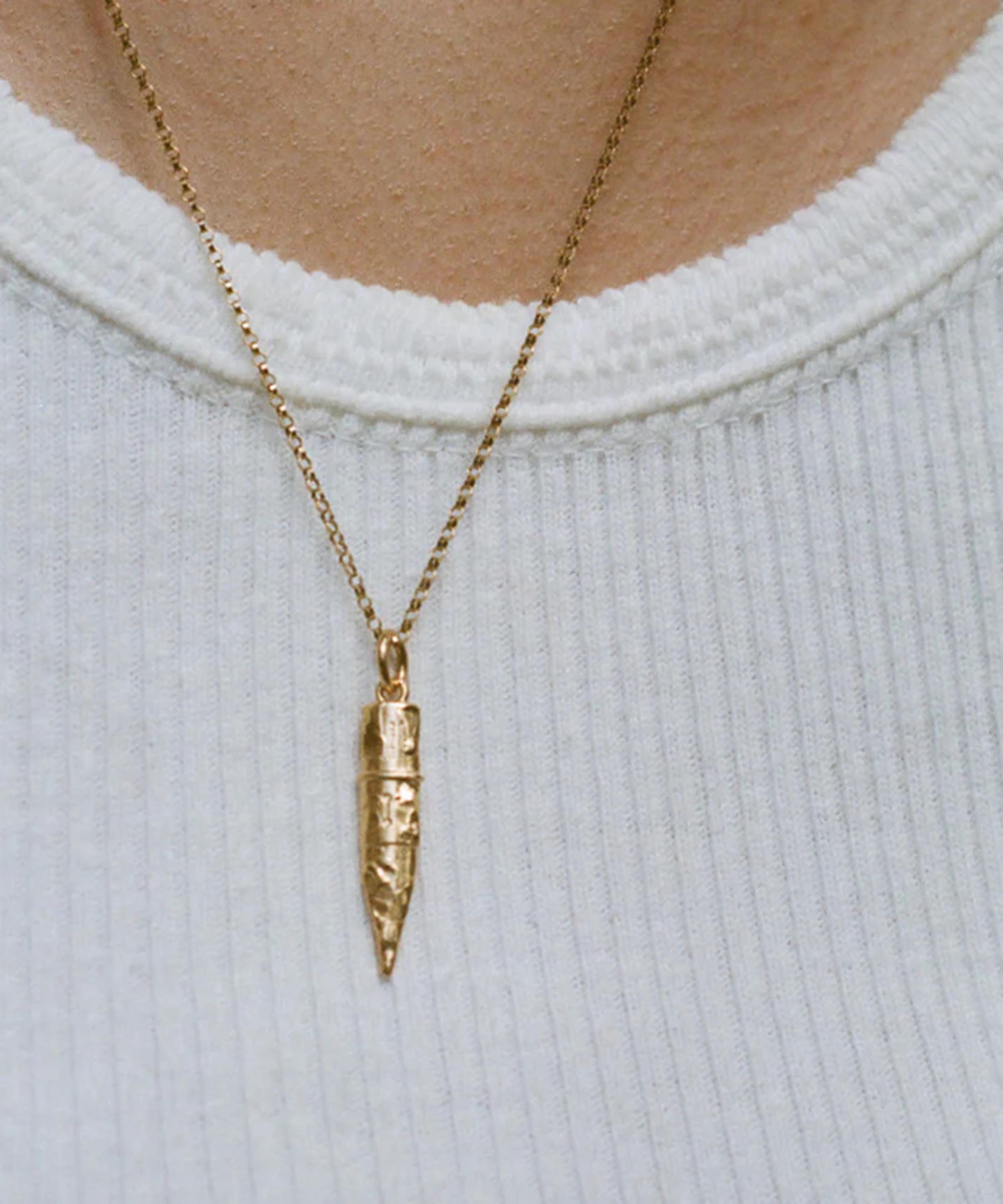 The Mini Annotator pendant necklace is a signature design from Alighieri - the London-based jewellery brand named after the renowned Italian poet, Dante. Handcrafted from 24ct gold-plated bronze, it features a polished rolo chain and a molten pencil pendant – celebrating the magic of escapism in books and stories. This modern heirloom is an ultra-wearable statement piece that can be passed from generation to generation.