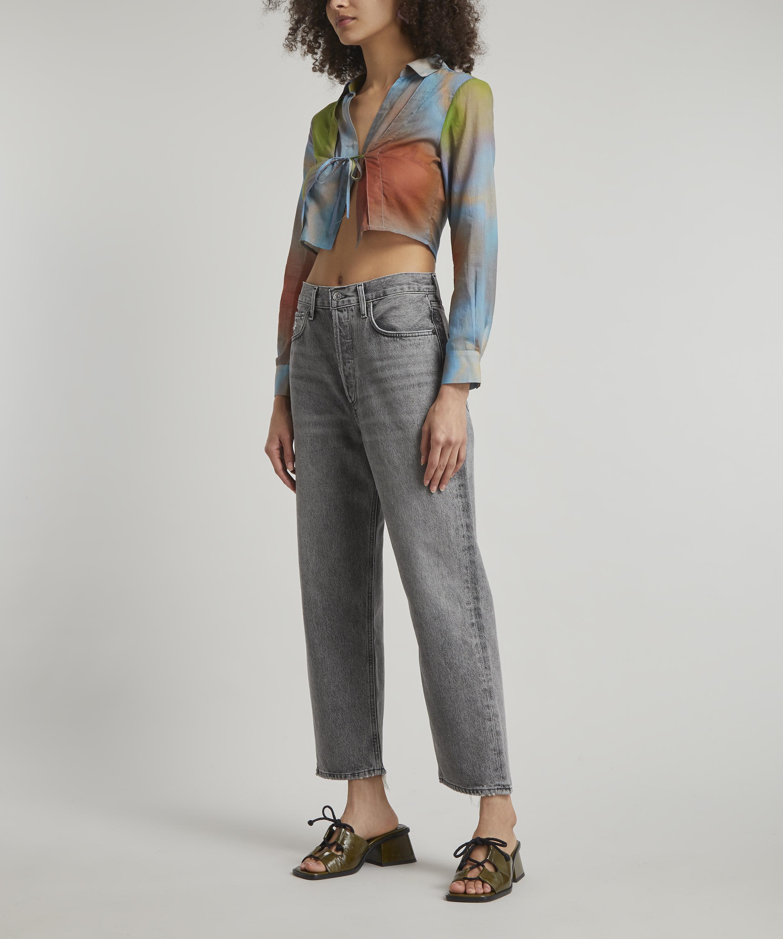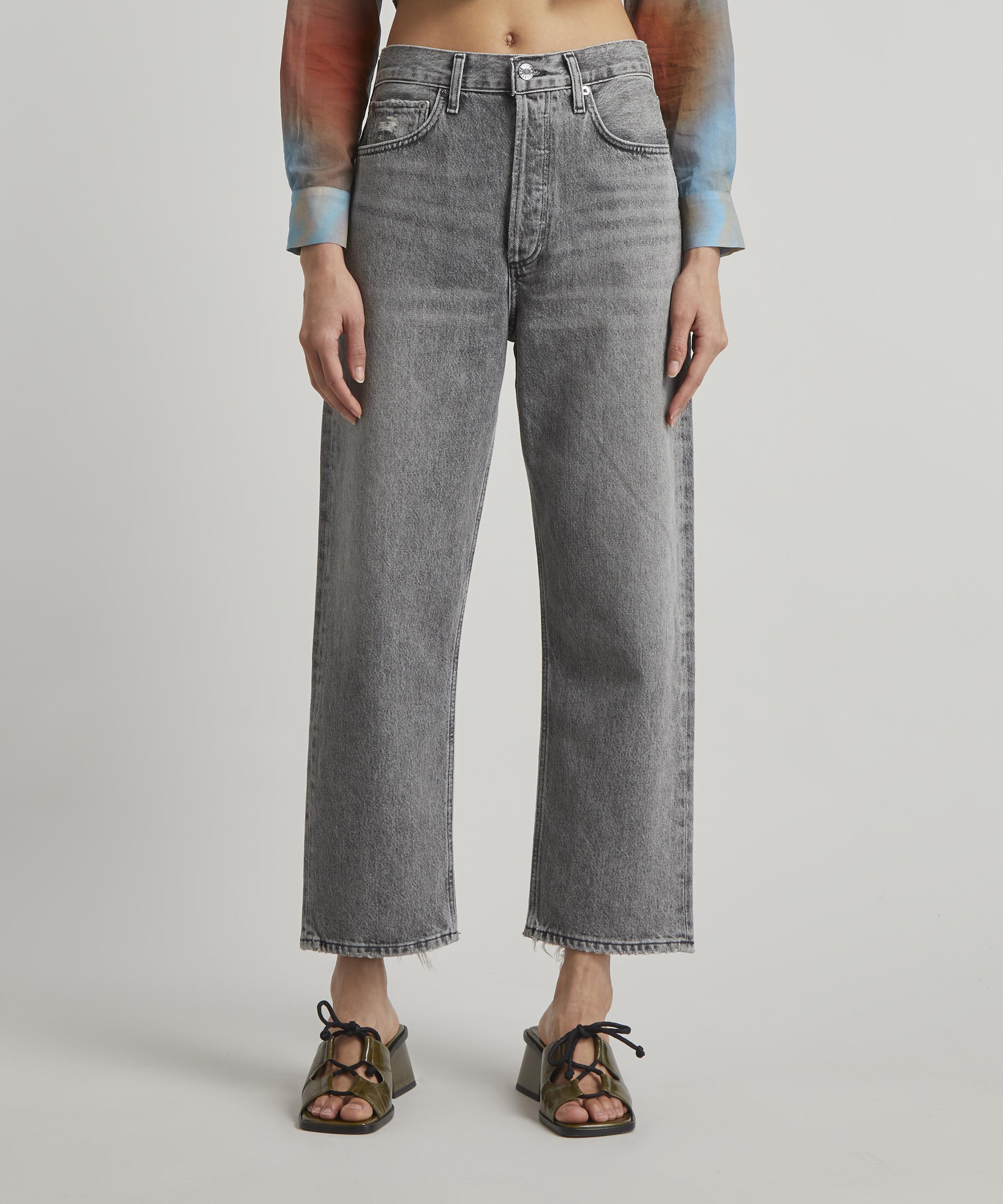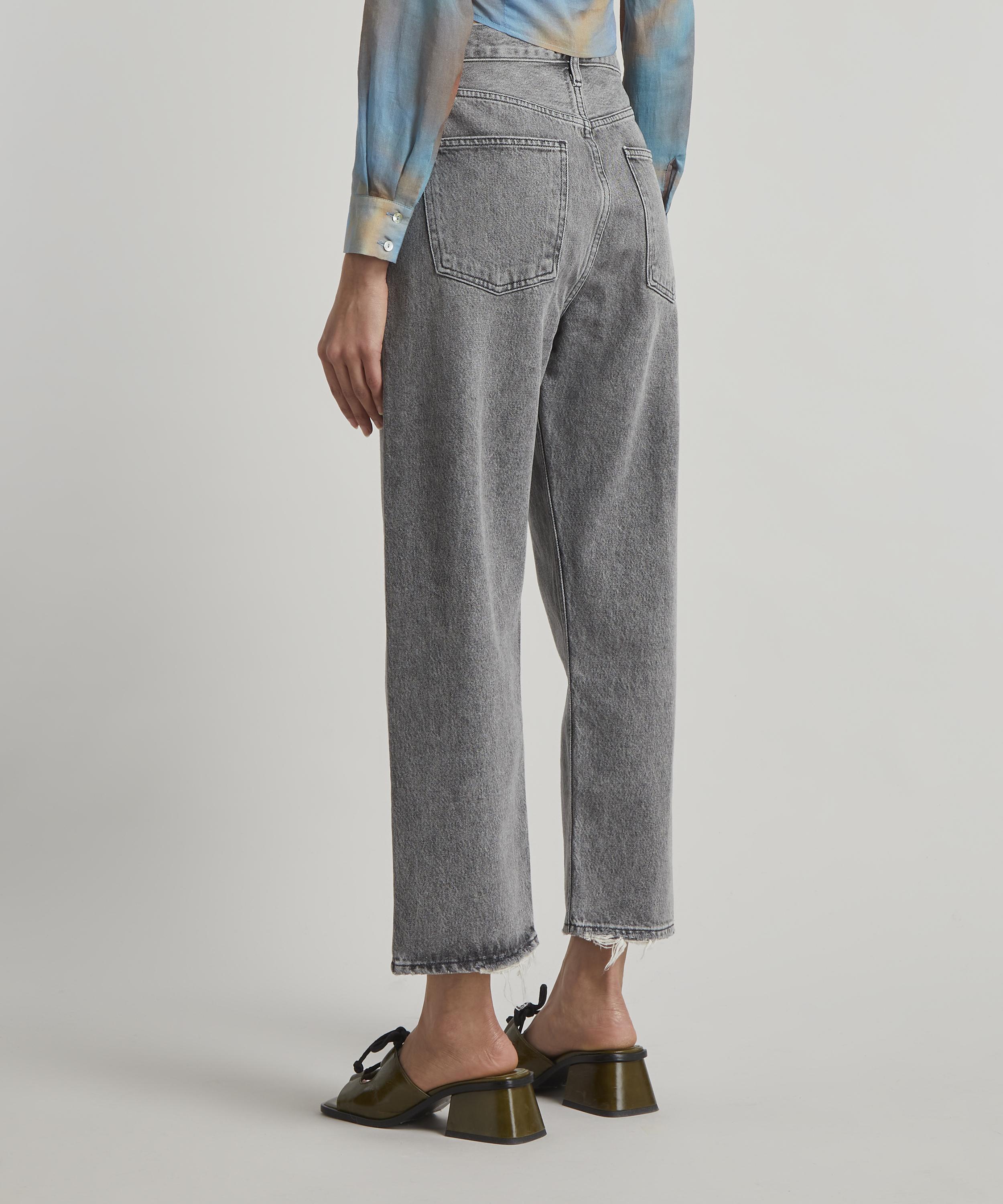 Combining an irreverent attitude with meticulous eye for detail, AGOLDE references decades past for stylish denim that complements the modern wardrobe. Cut from grey-washed organic cotton denim, these vintage-inspired mid-rise jeans are designed to sit relaxed at the waist with a loose, straight leg complete with cropped ankles and distressed hem detail. Complete with five pockets, belt loops and a zip-fly, their simple shape and colour make them a versatile addition to your denim collection.