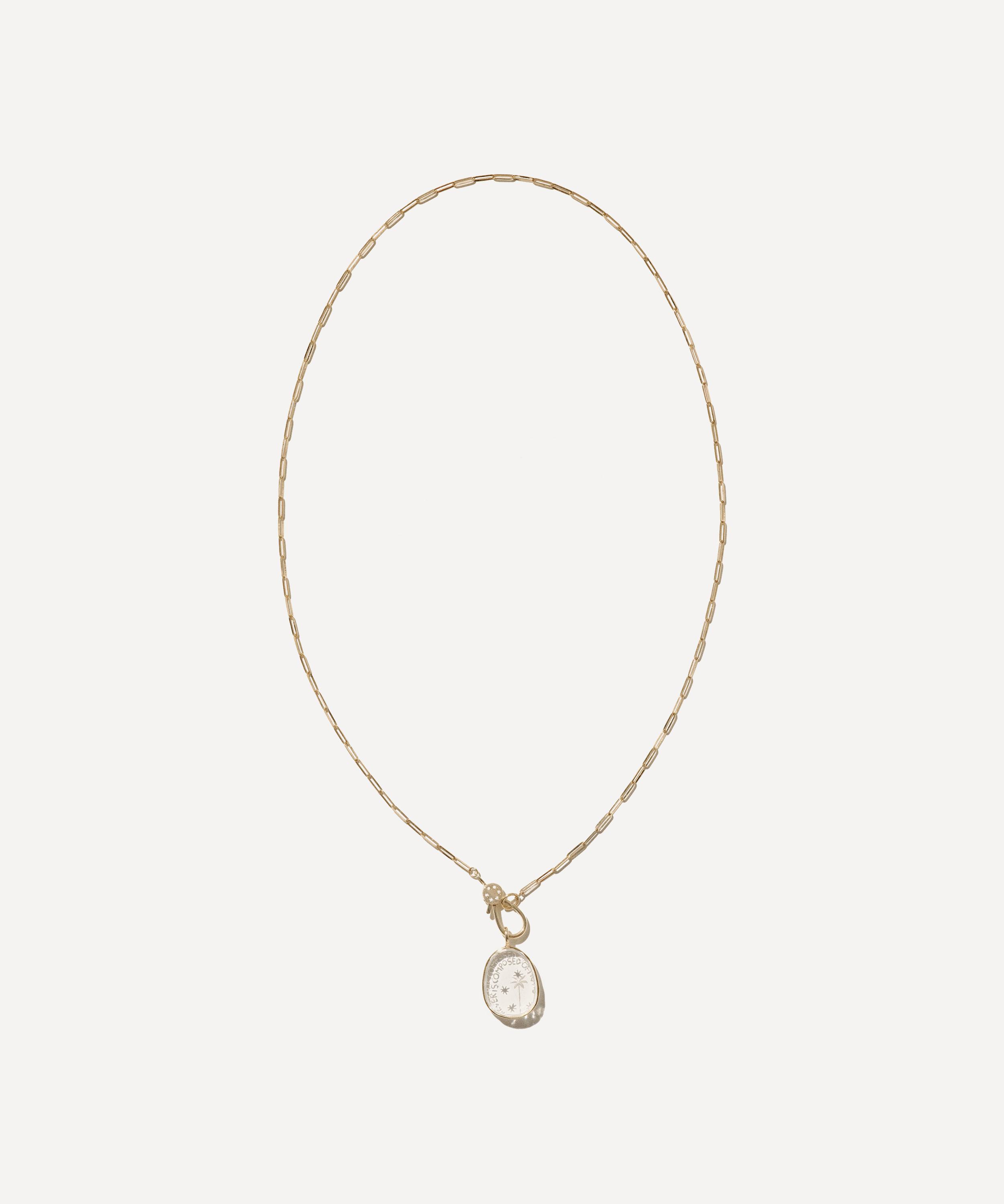Refine your jewellery collection and infuse any outfit with the subtle elegance emanating from Pascale Monvoisin’s Alba N°2 pendant necklace. Crafted from 9ct gold, it features a classic paperclip chain and rock crystal medallion pendant, intricately hand-engraved, bearing the lettering ‘ Forever is composed of nows’. Wear this precious talisman alone for statement appeal or stack yours with other gold necklaces from the designer's extensive collections.