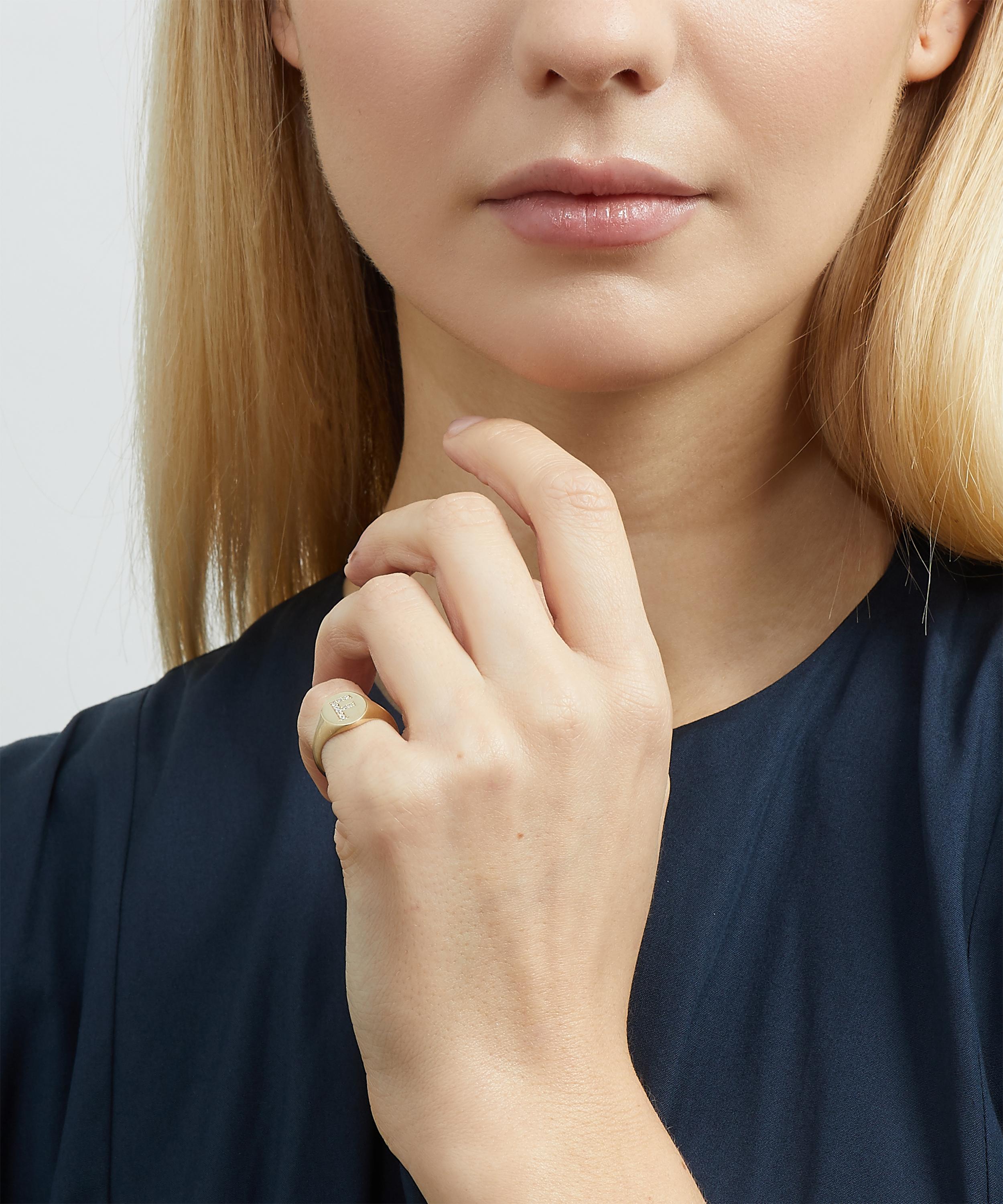 The Liberty signet ring is hand crafted in Italy from 9 carat gold and set with lab-grown diamonds – inspired by our heritage, with a glittering nod to vintage jewellery forms.