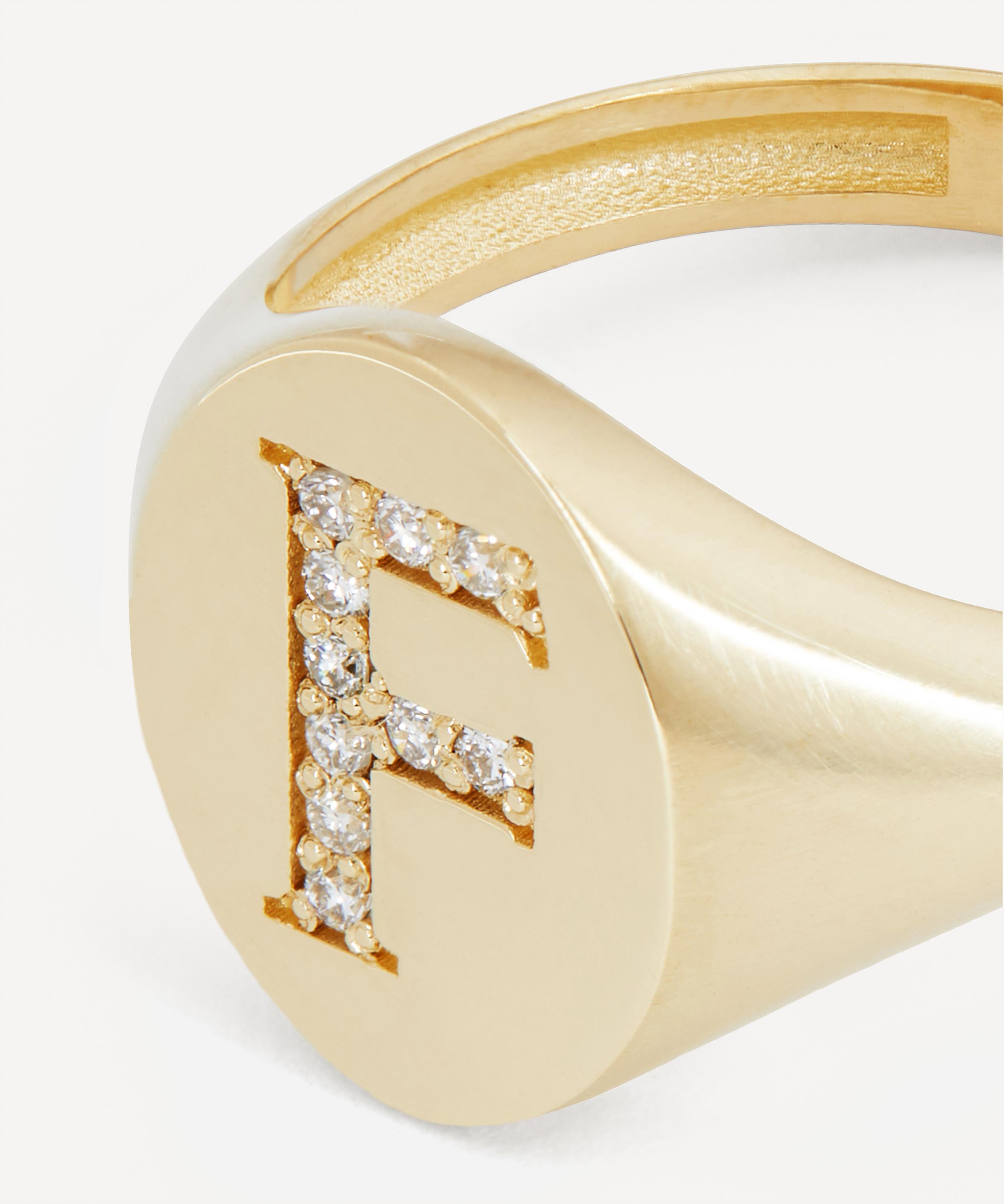 9ct Gold and Diamond Initial Liberty Signet Ring - F