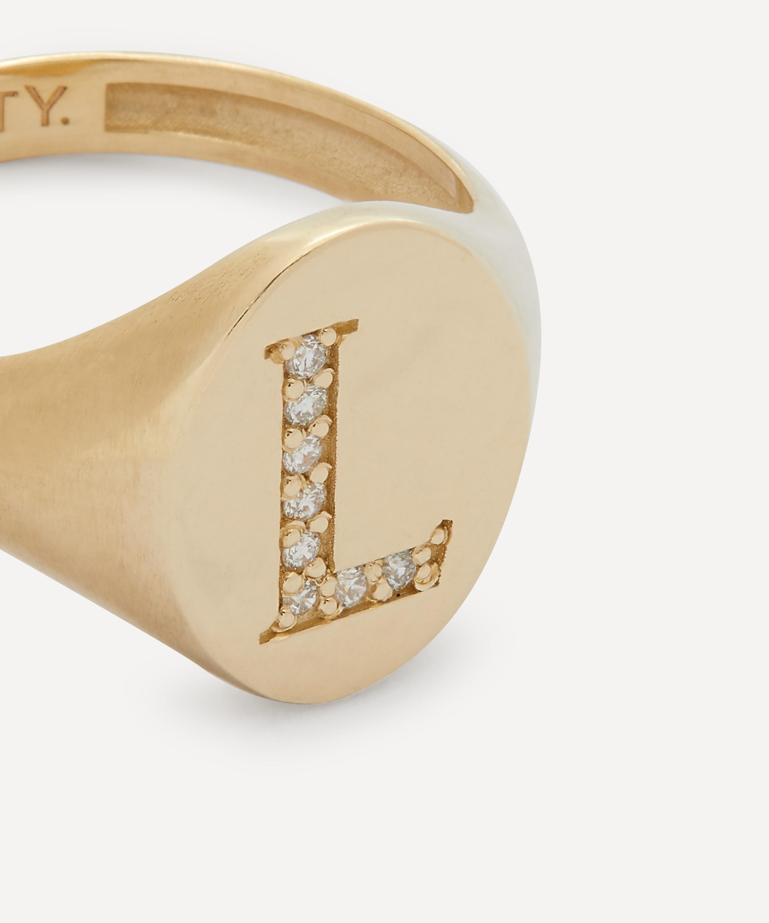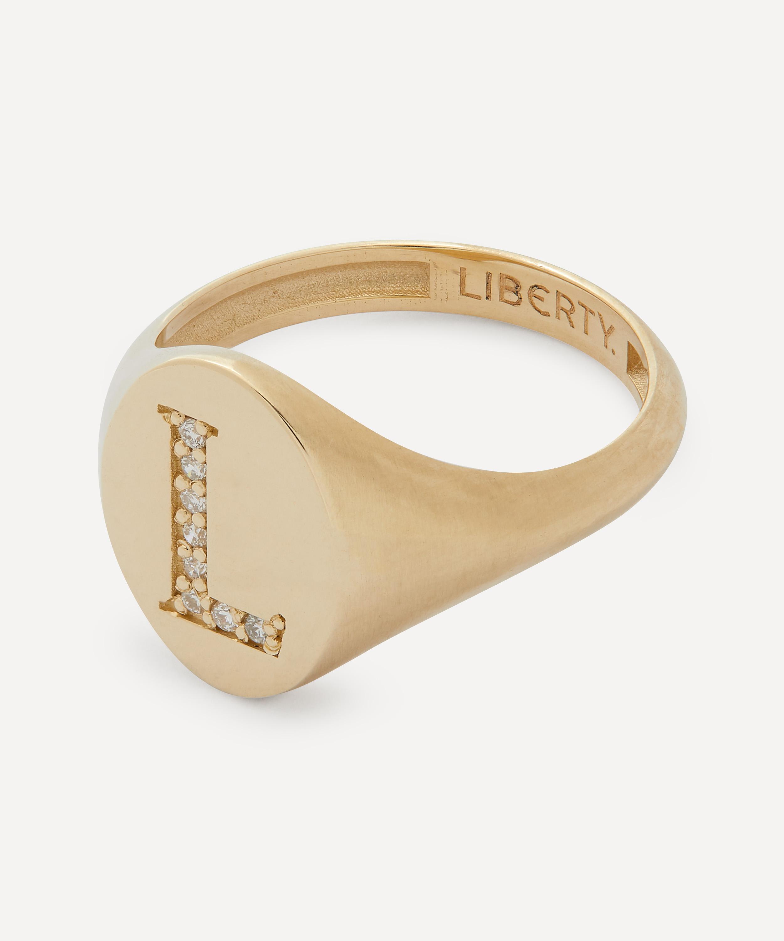 Liberty 9ct Gold and Diamond Initial Liberty Signet Ring - L