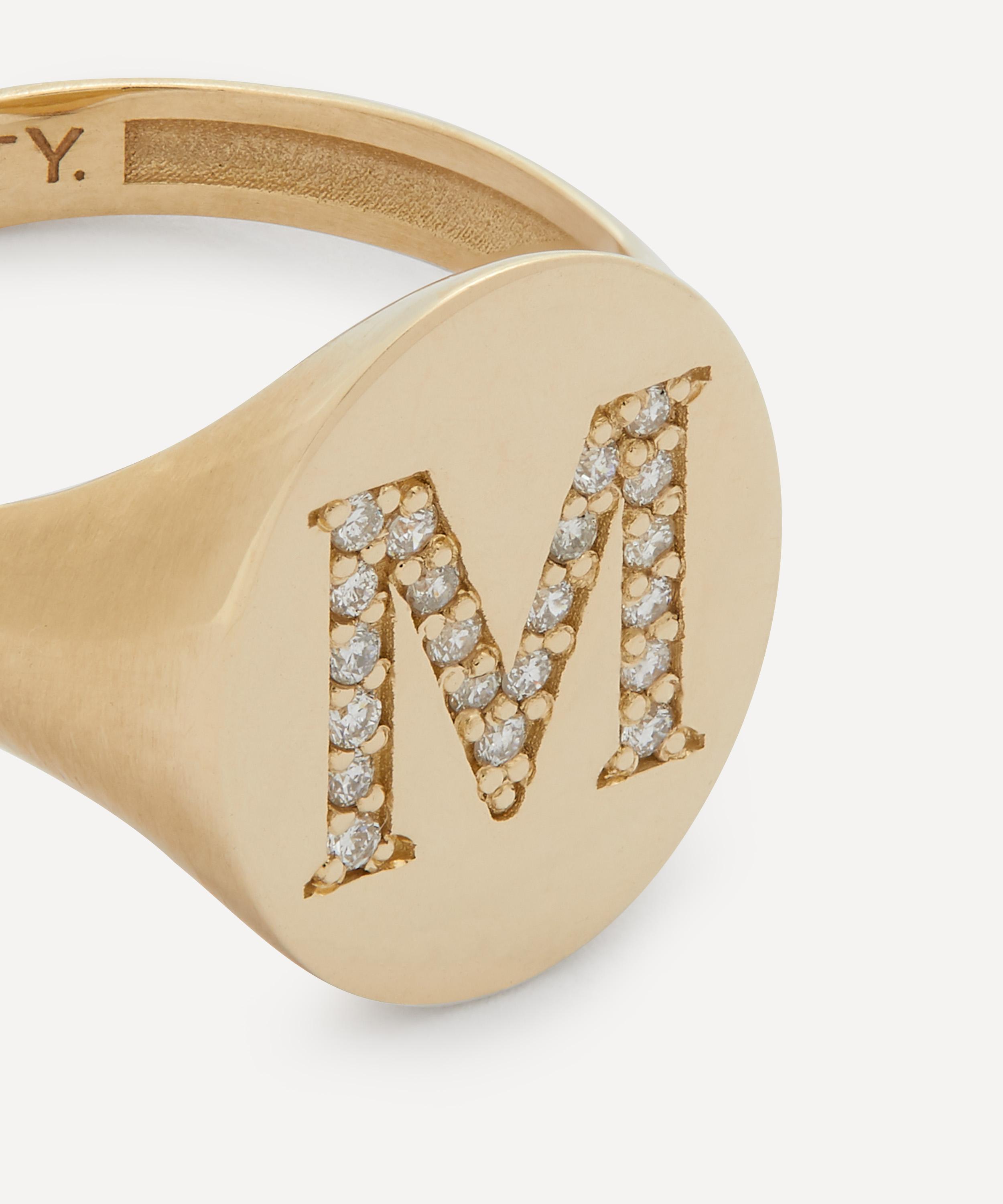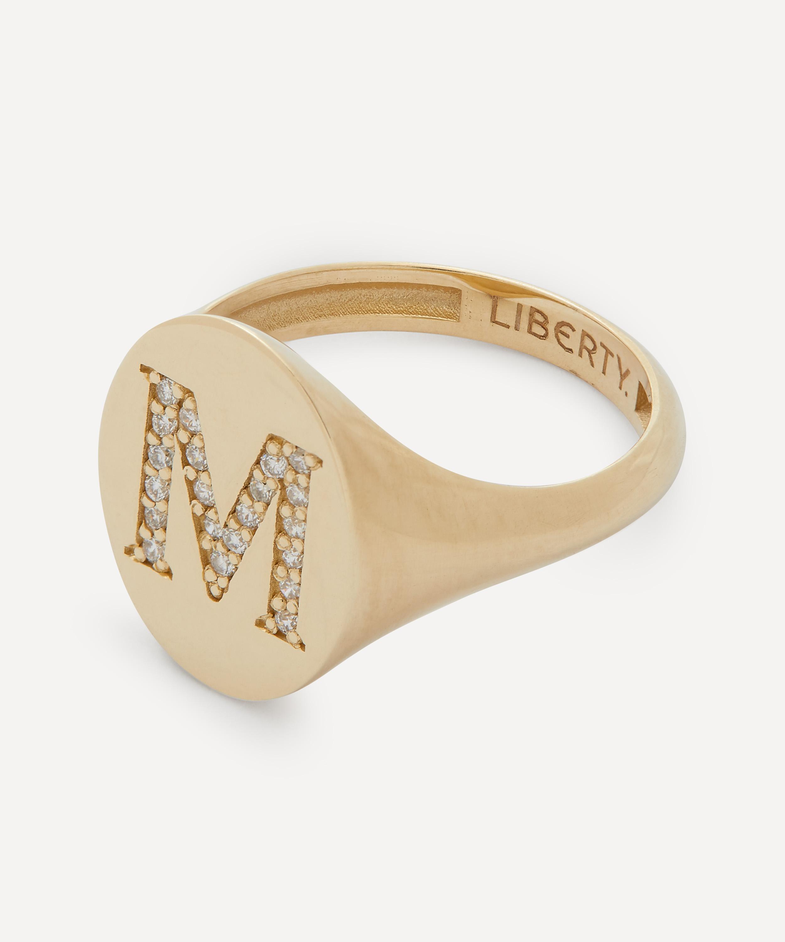 9ct Gold and Diamond Initial Liberty Signet Ring - M