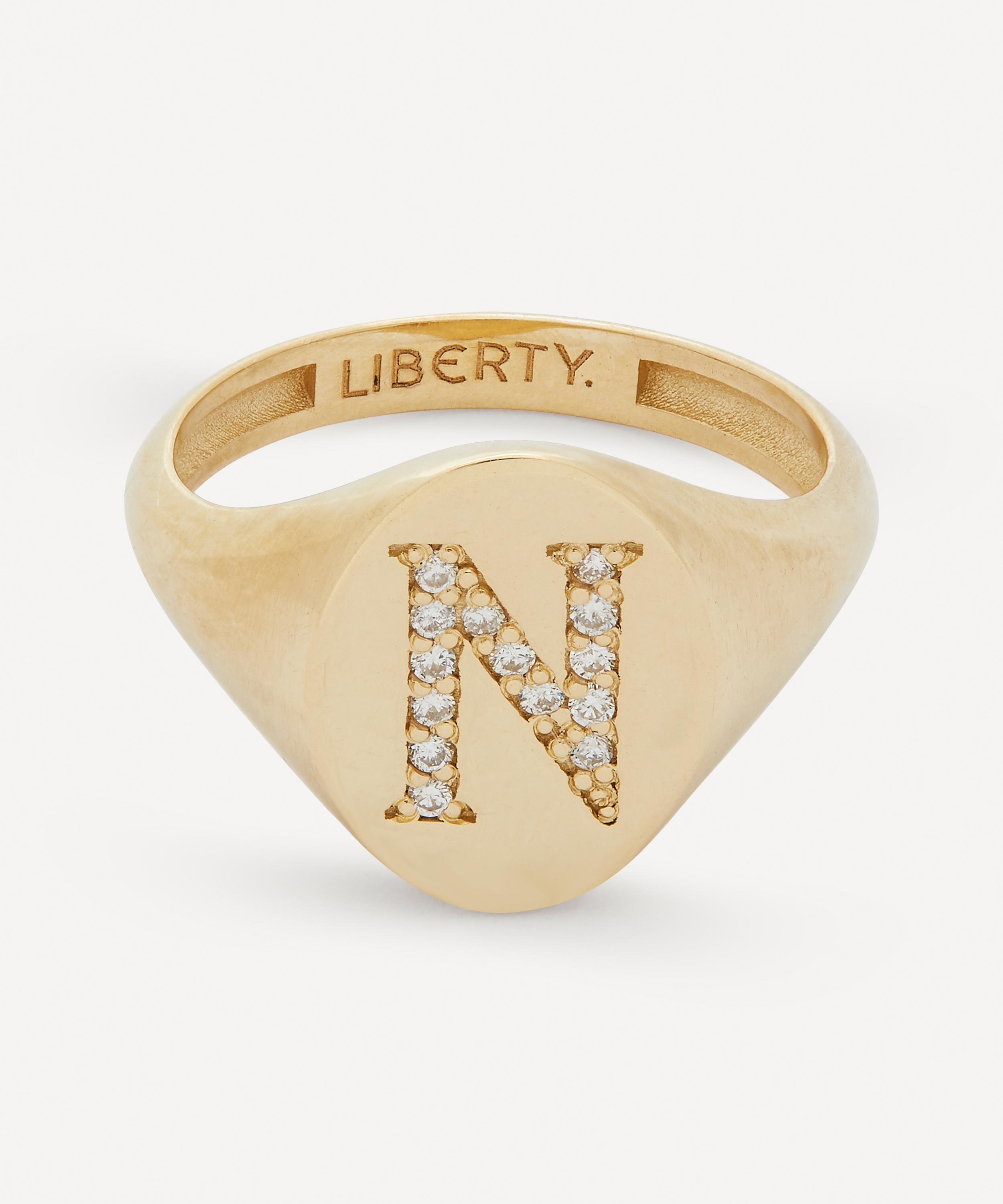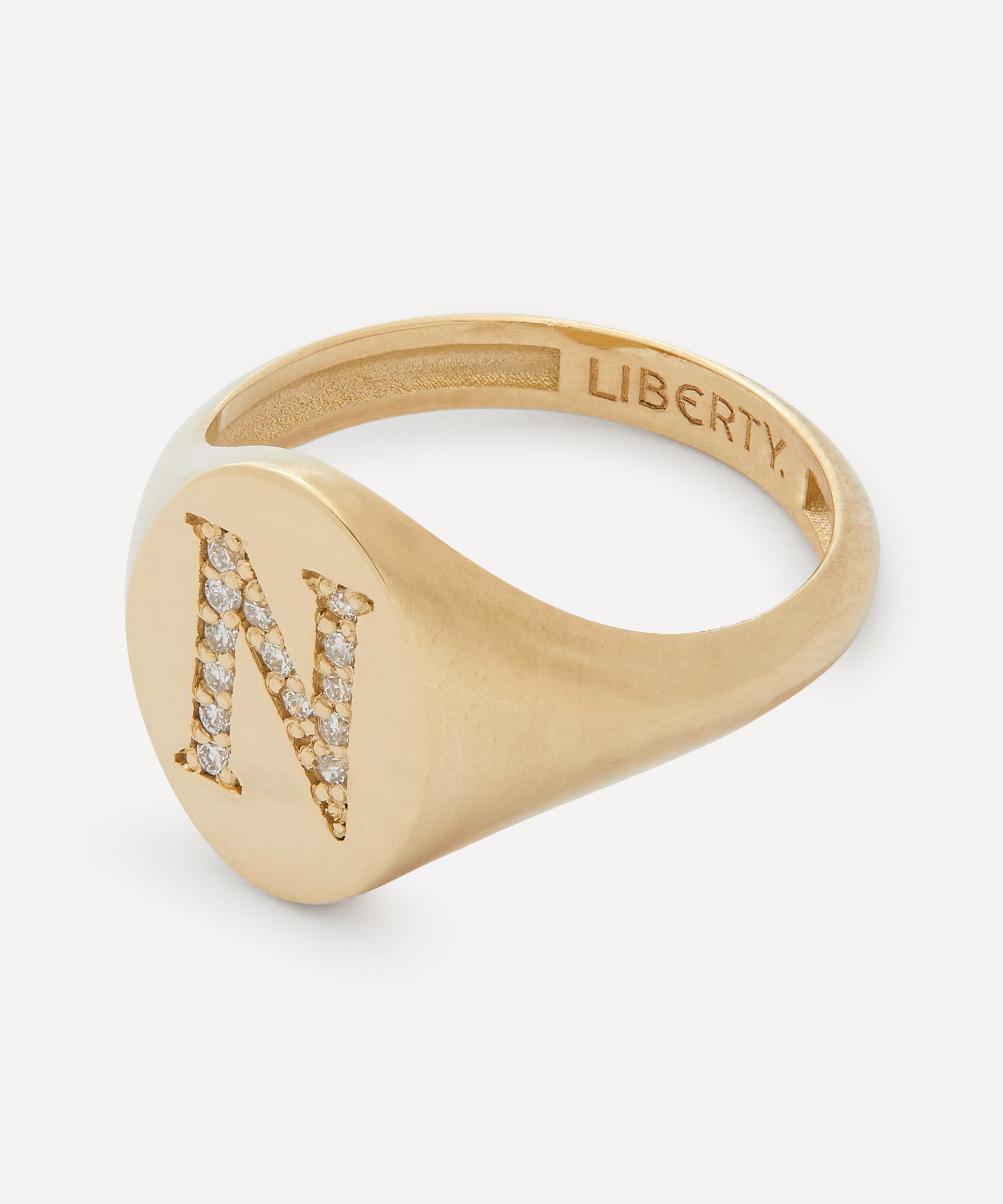 9ct Gold and Diamond Initial Liberty Signet Ring - N