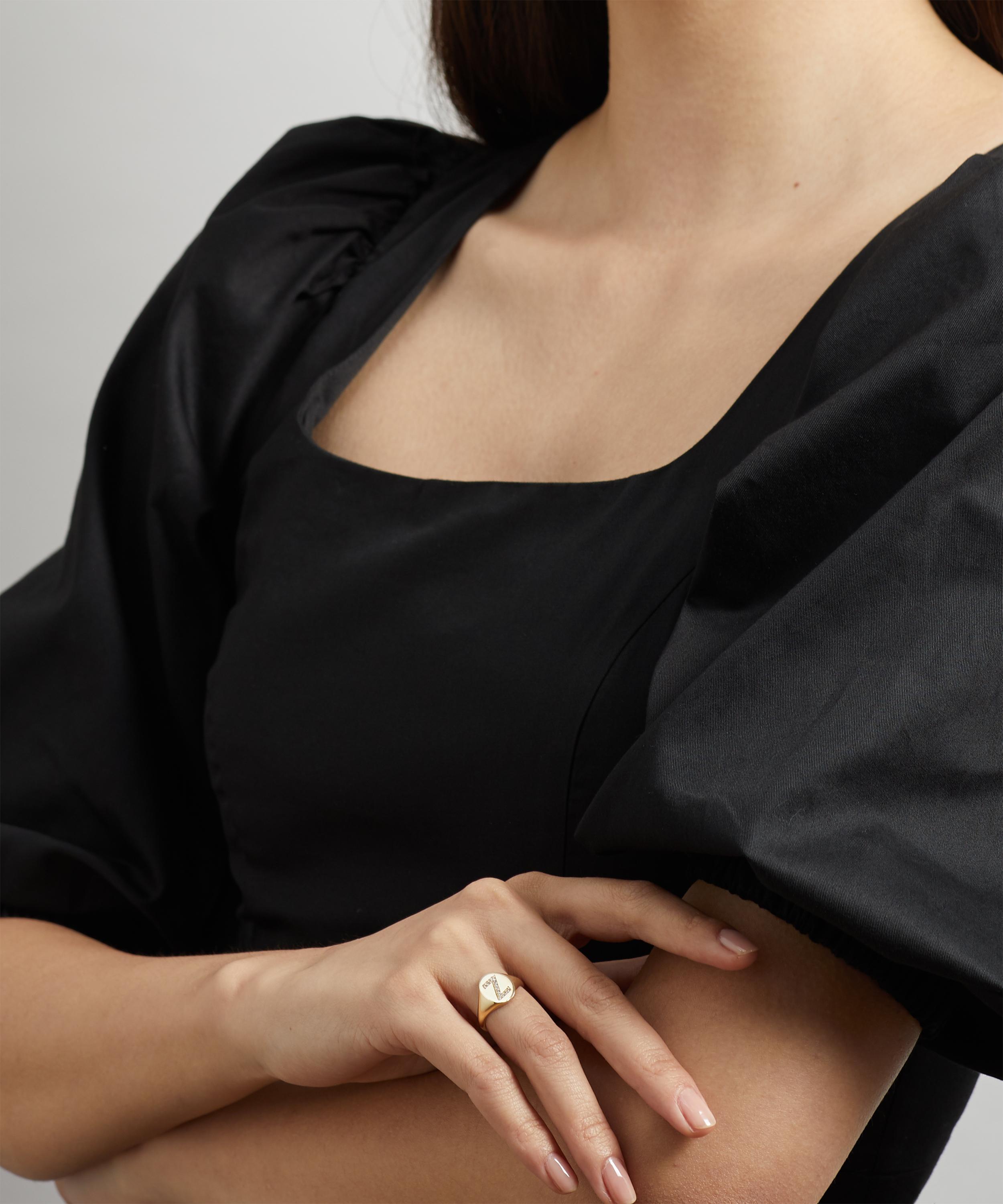 The Liberty signet ring is hand crafted in Italy from 9 carat gold and set with lab-grown diamonds – inspired by our heritage, with a glittering nod to vintage jewellery forms.