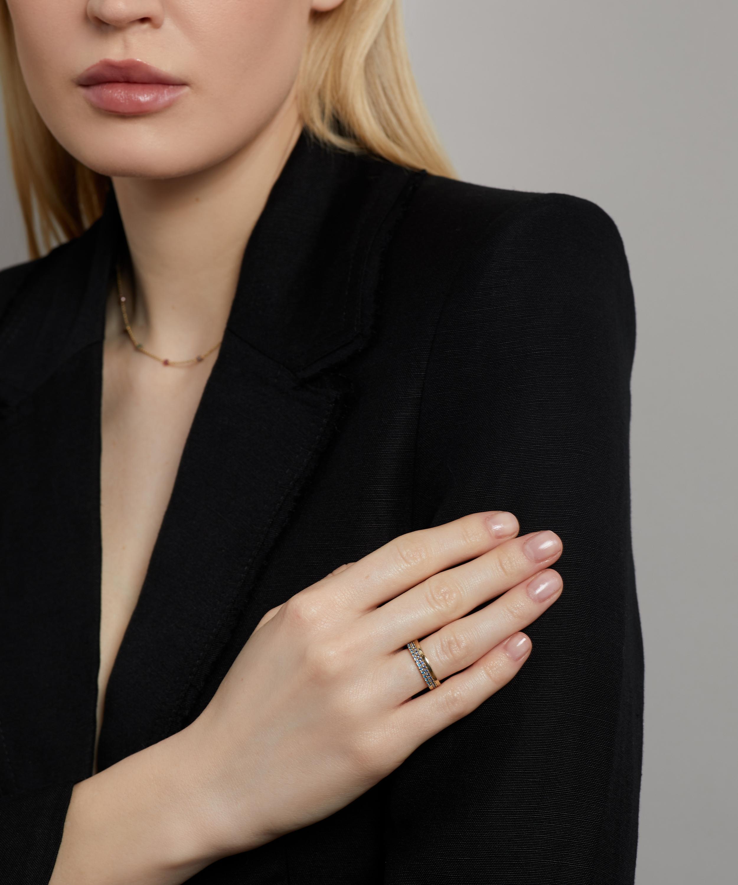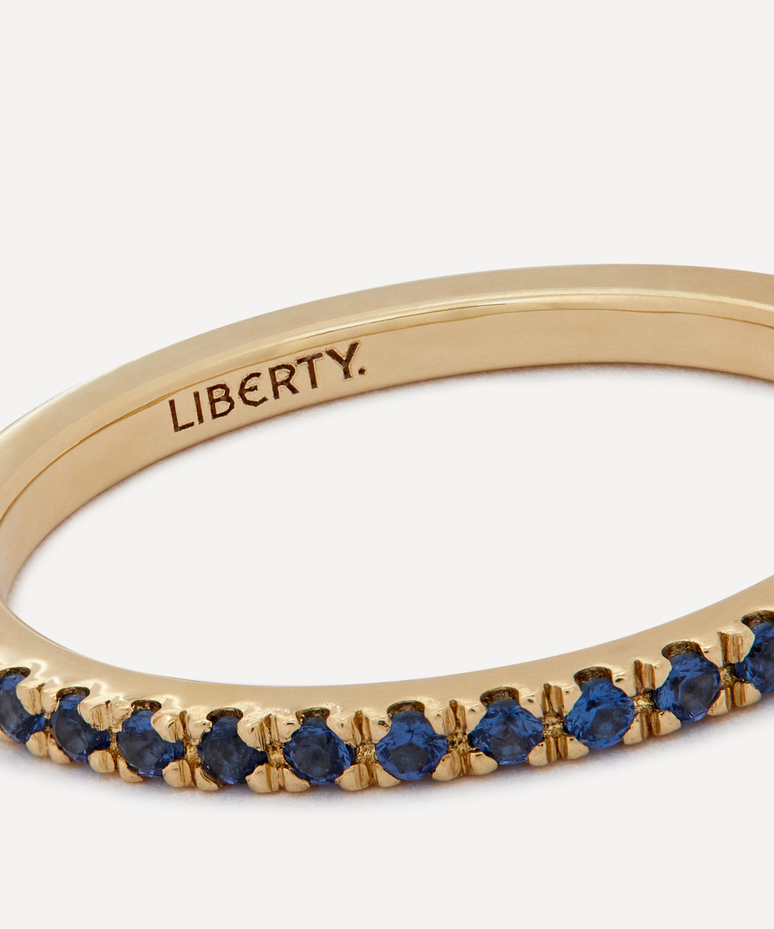 Encrusted around the band with lab-grown blue sapphire stones, this versatile ring features a high-polish finish and is engraved on the inside with our branded Liberty logo. Each ring is made in a small batch, crafted by hand in Italy – a modern heirloom that pays tribute to Liberty’s collector spirit.