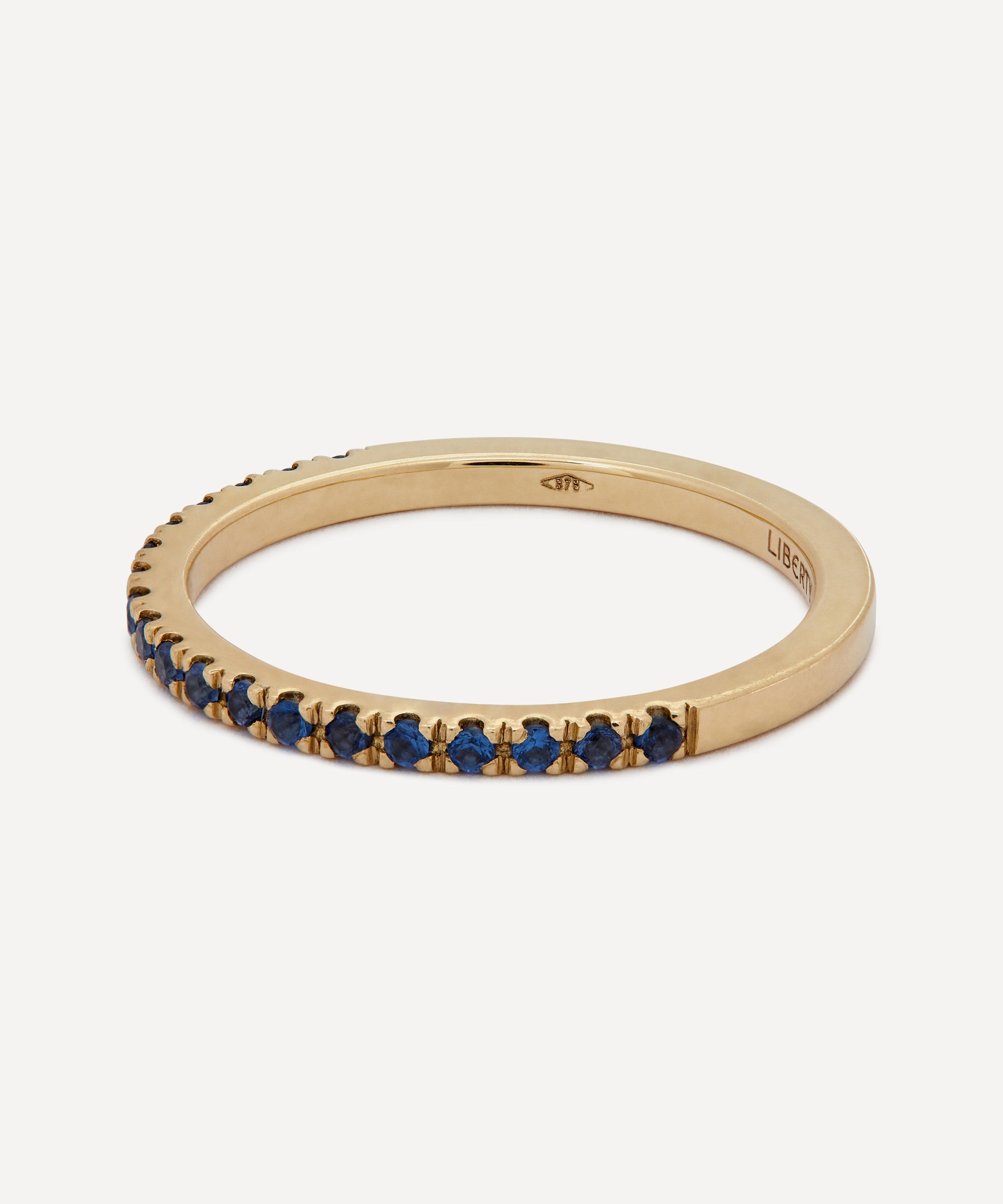 Elevate your everyday jewellery curation with the Rainbow ring from Liberty, beautifully crafted by hand in Italy from 9 carat gold and set with glittering lab-grown sapphire stones.