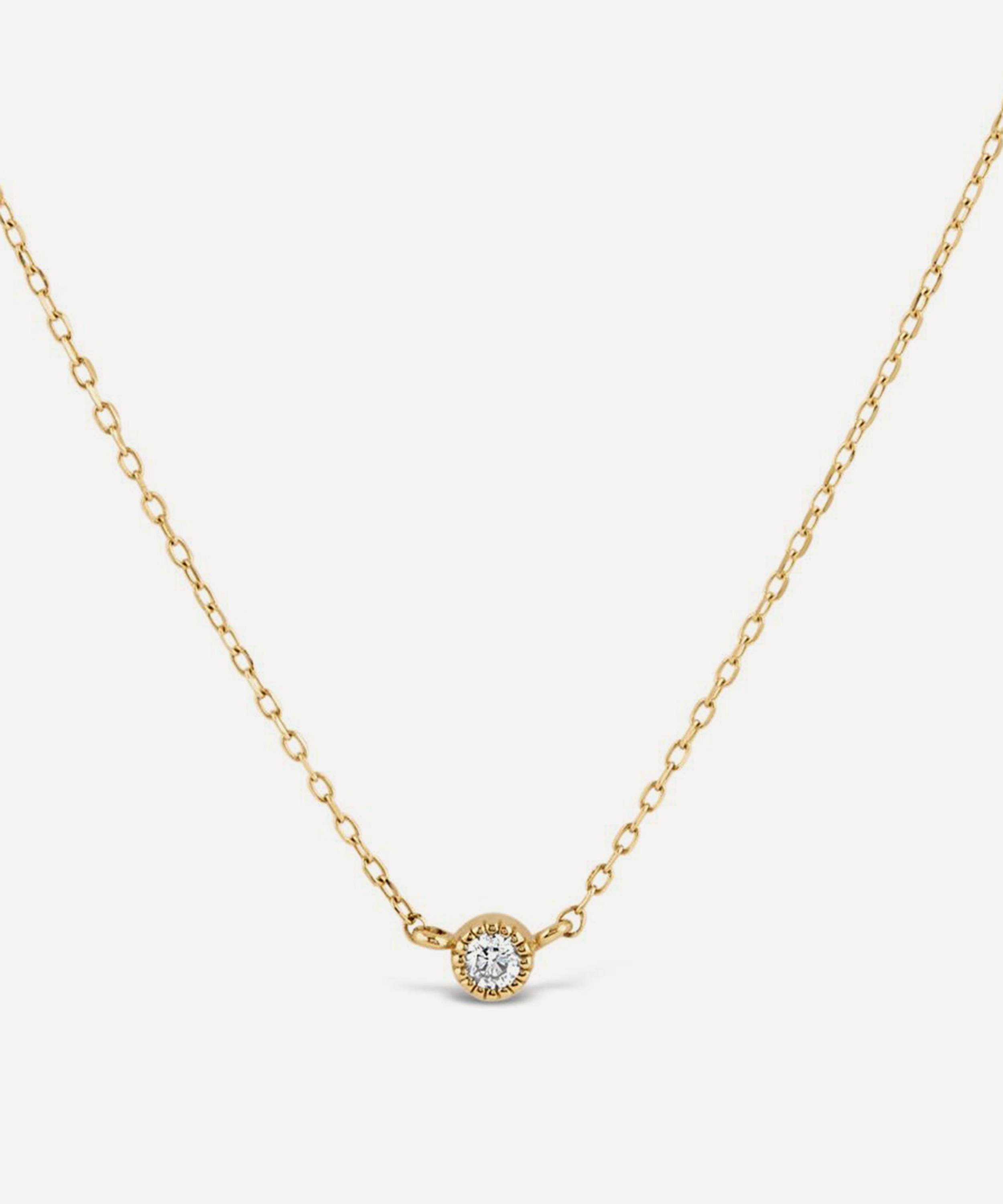 Named after the beautiful Jasmine flower, Dinny Hall presents another expertly crafted diamond necklace to add to your collection. Crafted from 9ct gold, it features a fine trace chain with an invisibly set diamond pendant, decorated with granulation around the edges. Style this piece as it is, pair with the matching stud earrings or layer with additional chains.