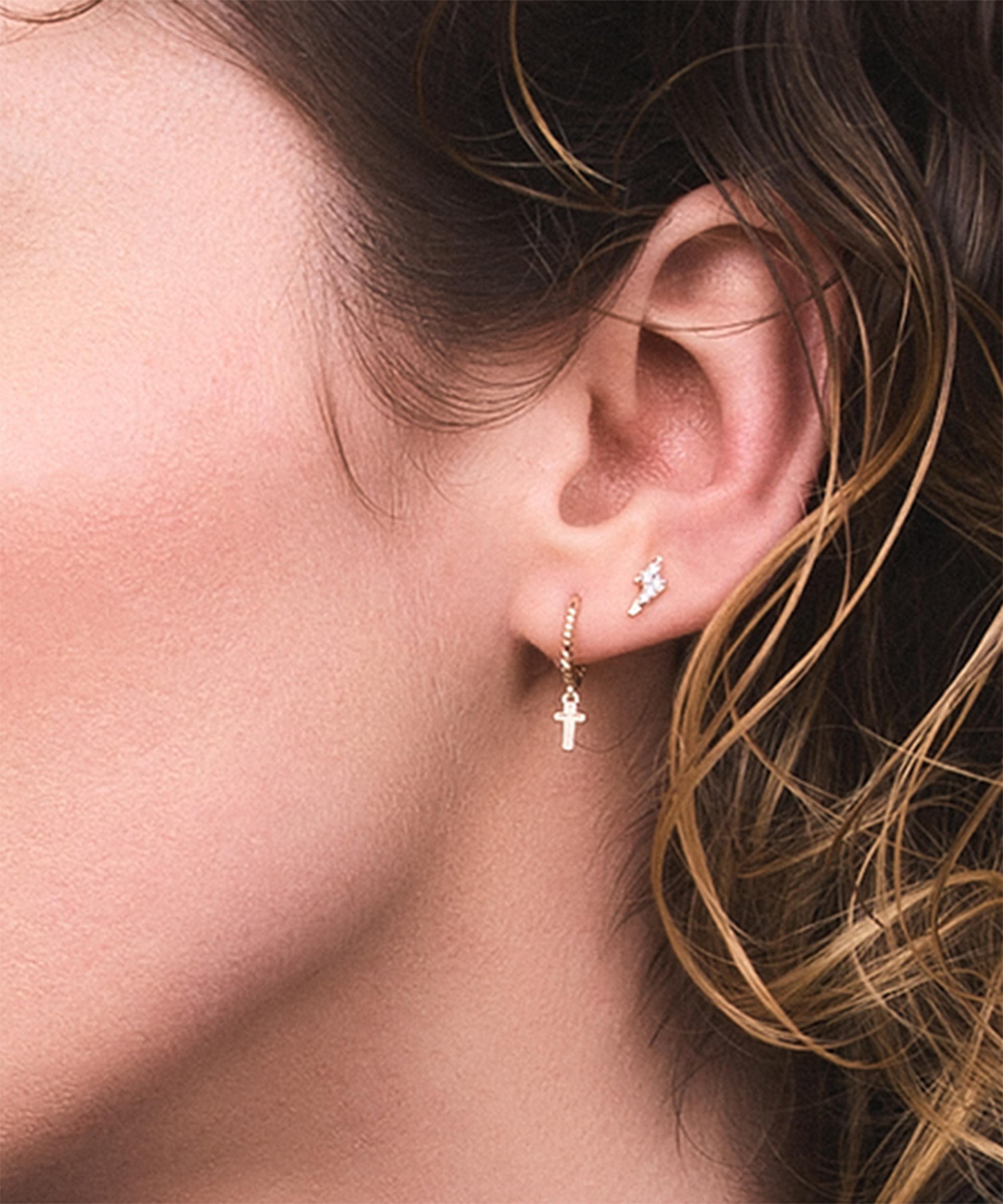 Handcrafted from solid 9ct gold, it features a diamond set lightning bolt motif, representing the divine spark of life. Designed to inspire you to harness your inner strength, stack it with additional piercings and earrings, team with coordinating styles from the collection or get two for a matching pair.