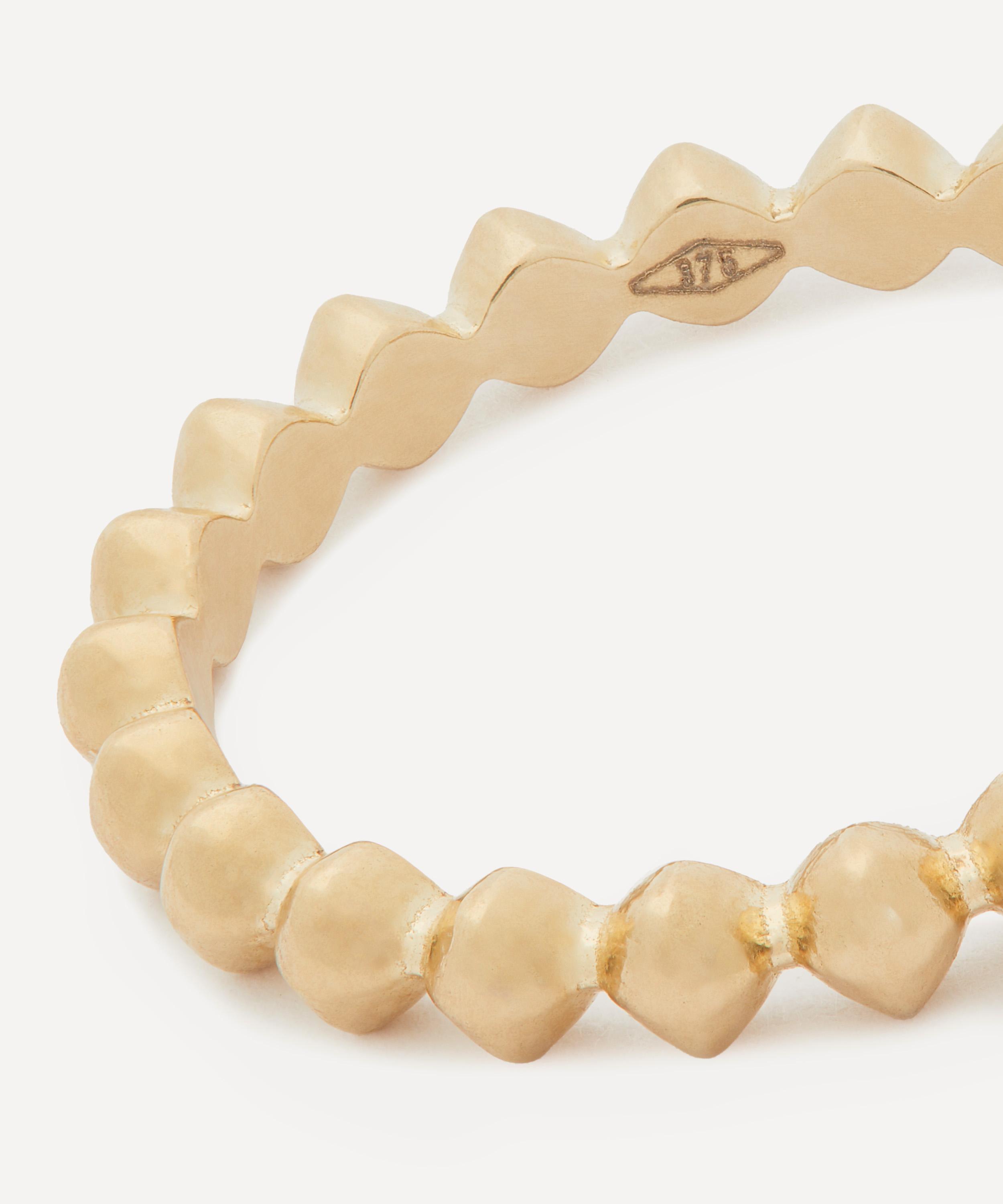 Elevate your everyday jewellery curation with the Eclipse band ring from Liberty, beautifully crafted by hand in Italy from 9 carat gold. This versatile ring features tiny rhombus shapes in a high-polished finish. Each ring is made in a small batch – a modern heirloom that pays tribute to Liberty’s collector spirit. Try wearing it with a pair of matching Eclipse studs and pendant for a fully coordinated curation.