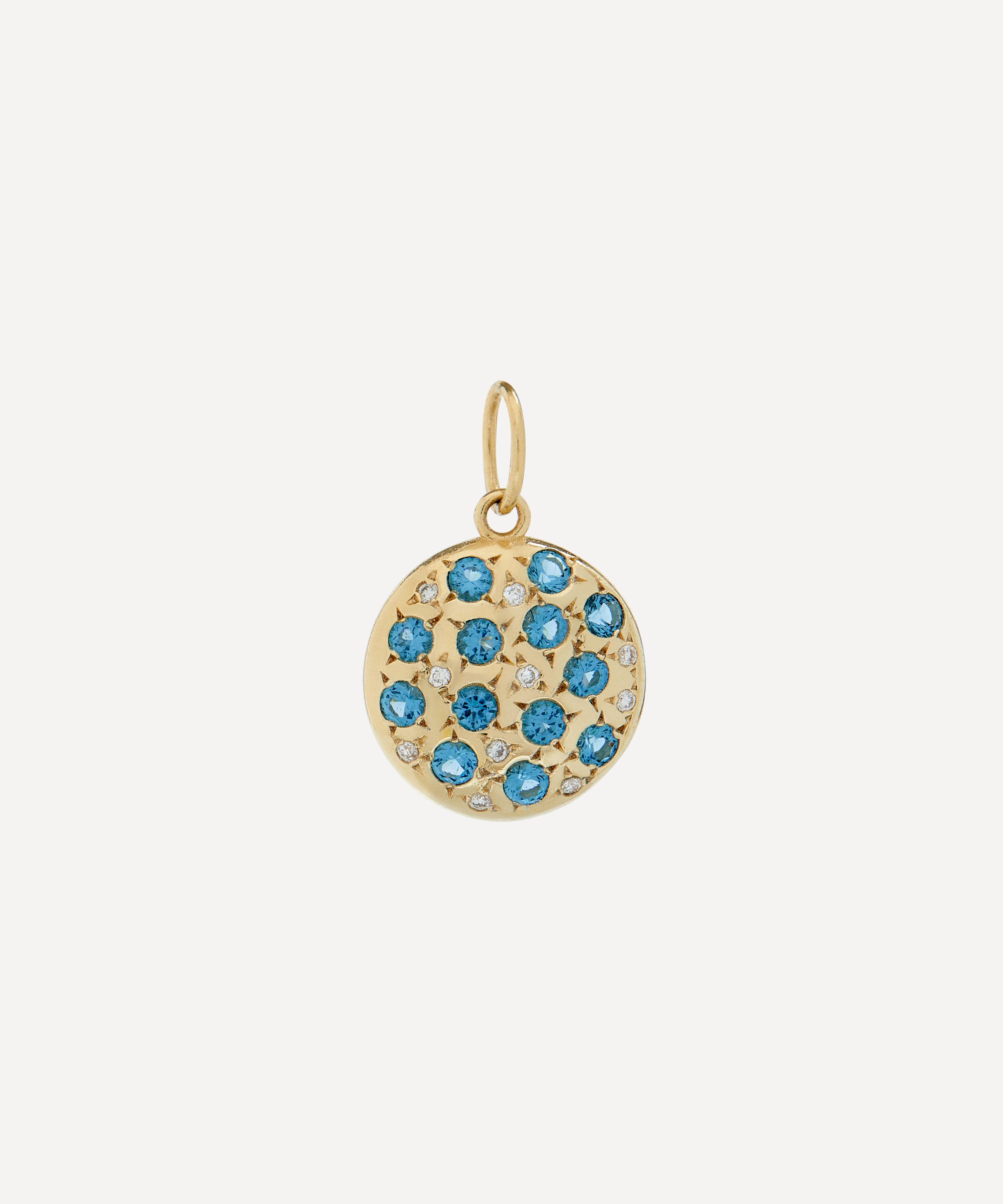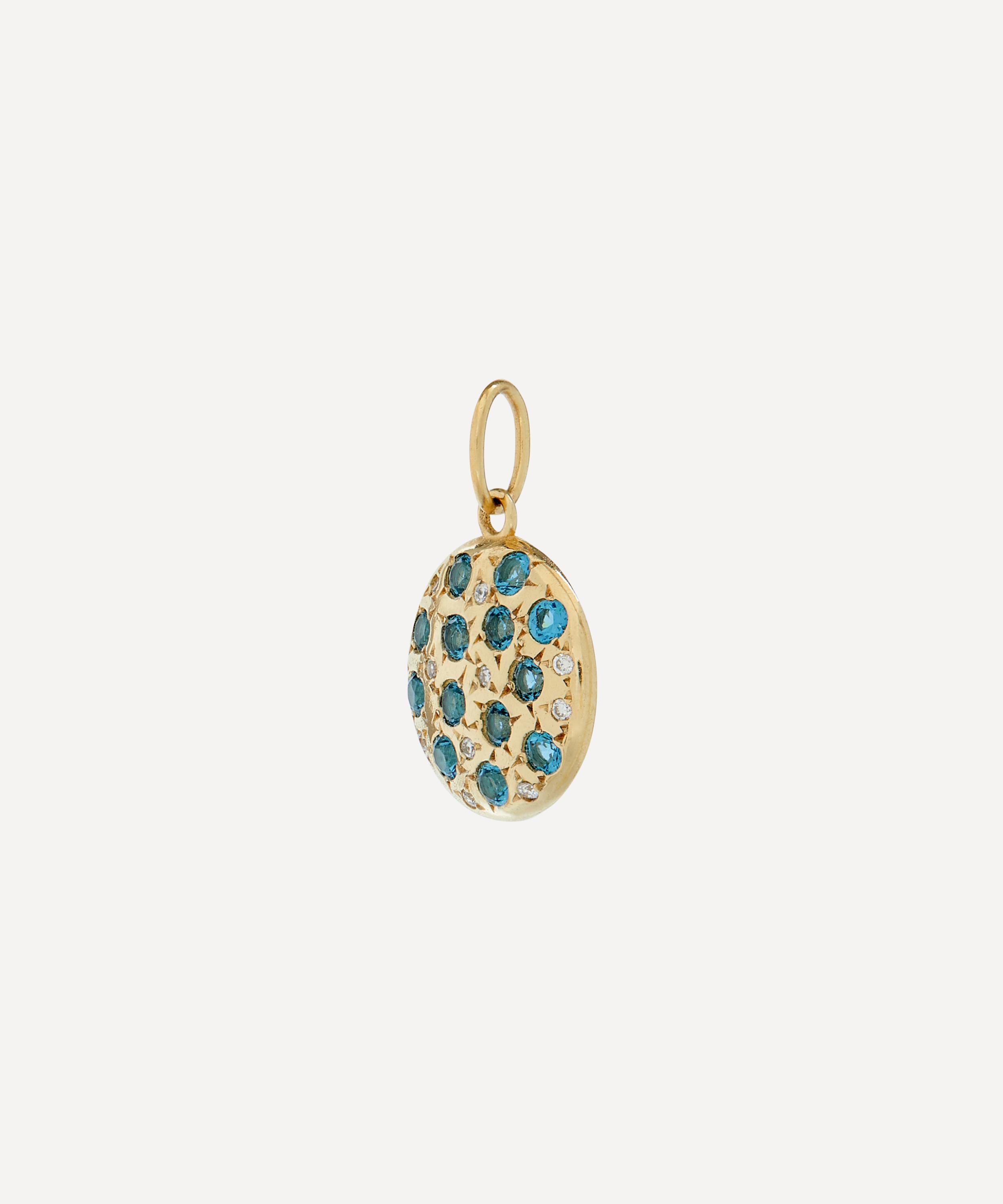 Poised to make an elegant addition to your everyday jewellery curation, this pendant combines traditional craftsmanship with modern technology for a unique finish. Encrusted with softly hued blue London topaz stones interspersed with sparkling diamonds in a decorative setting – style it on a plain Liberty chain with a pair of matching Equinox studs and ring for a fully coordinated curation.